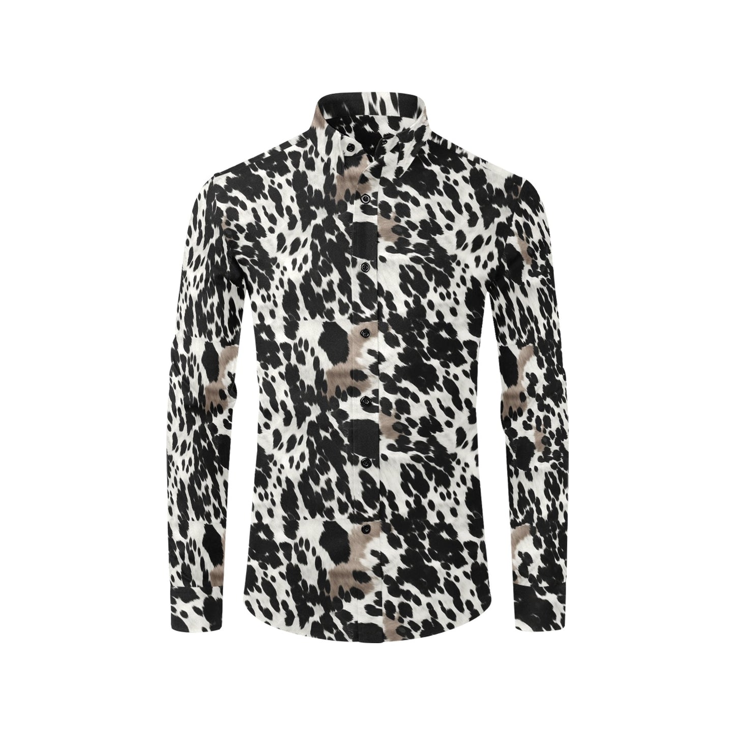 Cow Men Button Up Shirt, Black White Brown Western Long Sleeve Animals Print Grey Buttoned Collar Dress Shirt with Chest Pocket