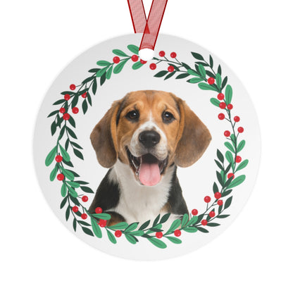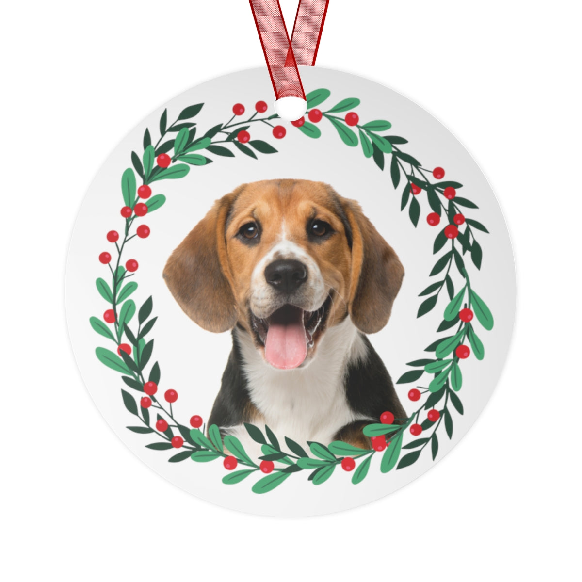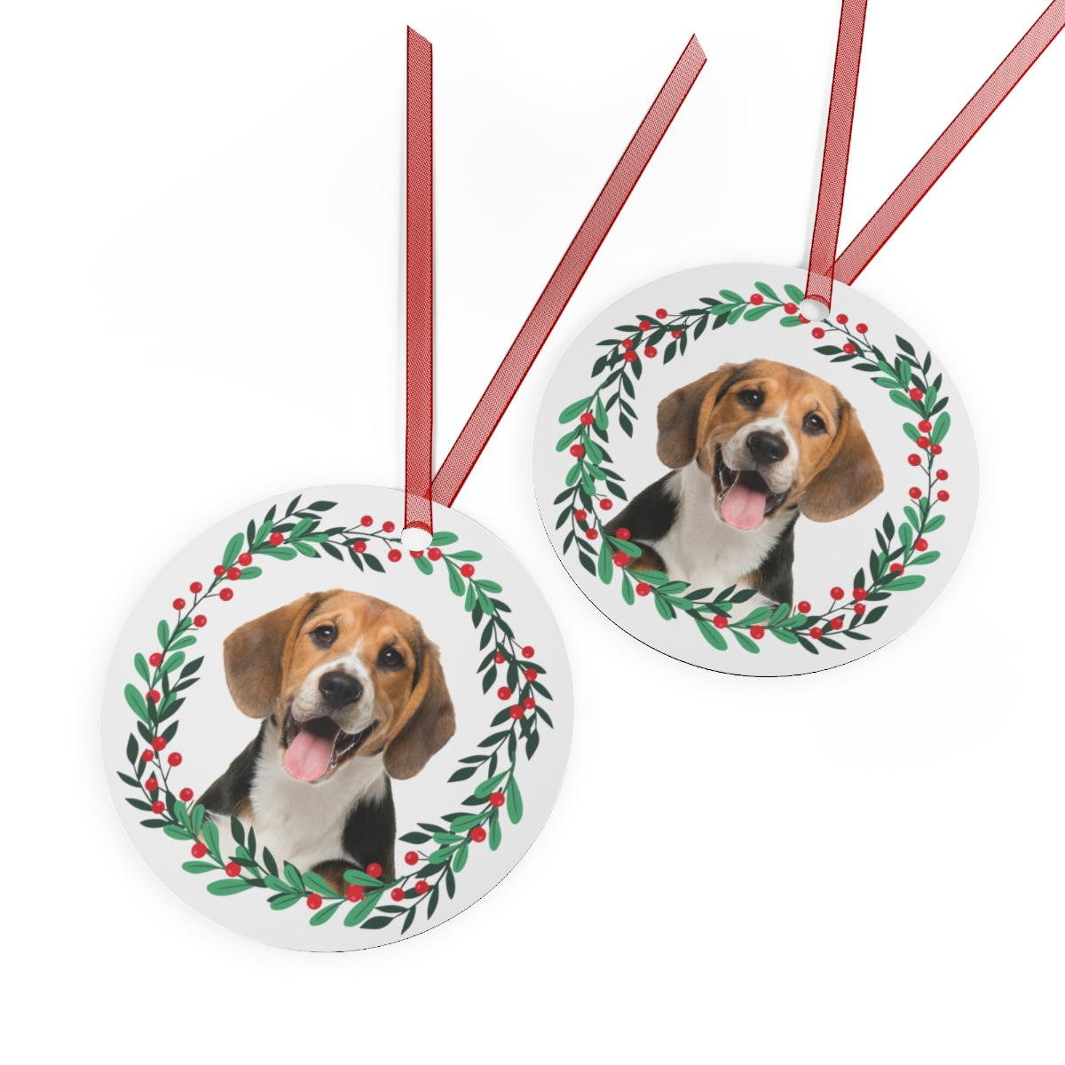 Custom Dog Metal Ornaments, Personalized Photo Pet Cat Gift for Mom Dad Christmas Wreath Holiday Decor Tree Ribbon