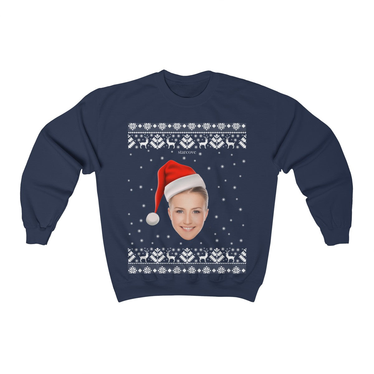 Custom Face Christmas Sweater, Funny Xmas Ugly Sweatshirt Personalized Holiday Custom Photo Dog Cat Boss Pet Matching Family Santa Hat Gift