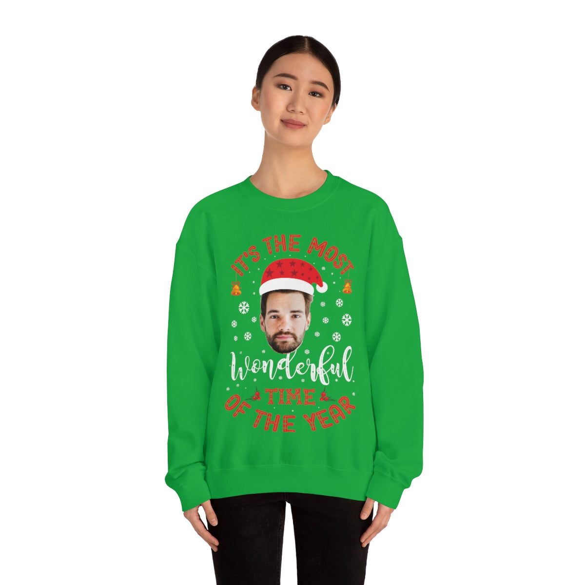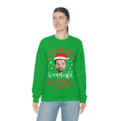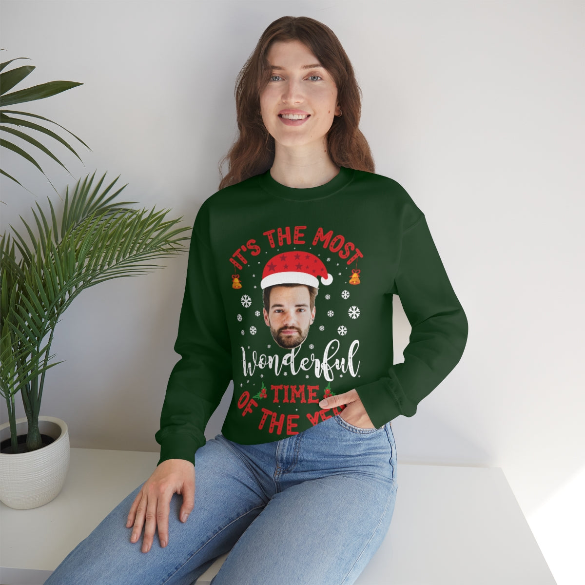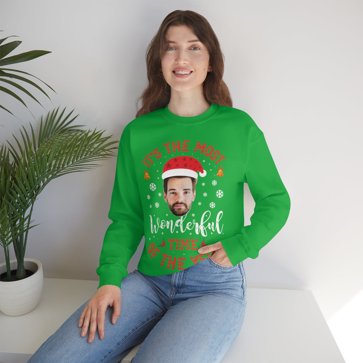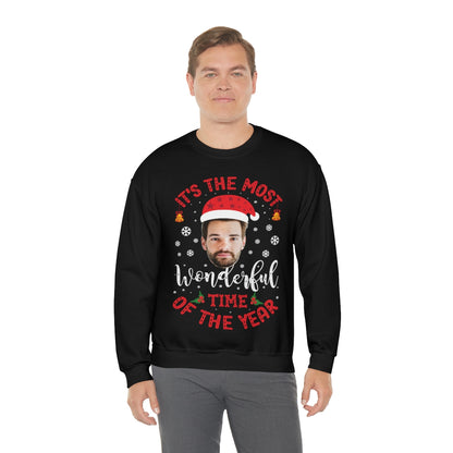Custom Face Ugly Christmas Sweater, Photo Santa Hat Most Wonderful Time Xmas Women Men Funny Party Holiday Sweatshirt