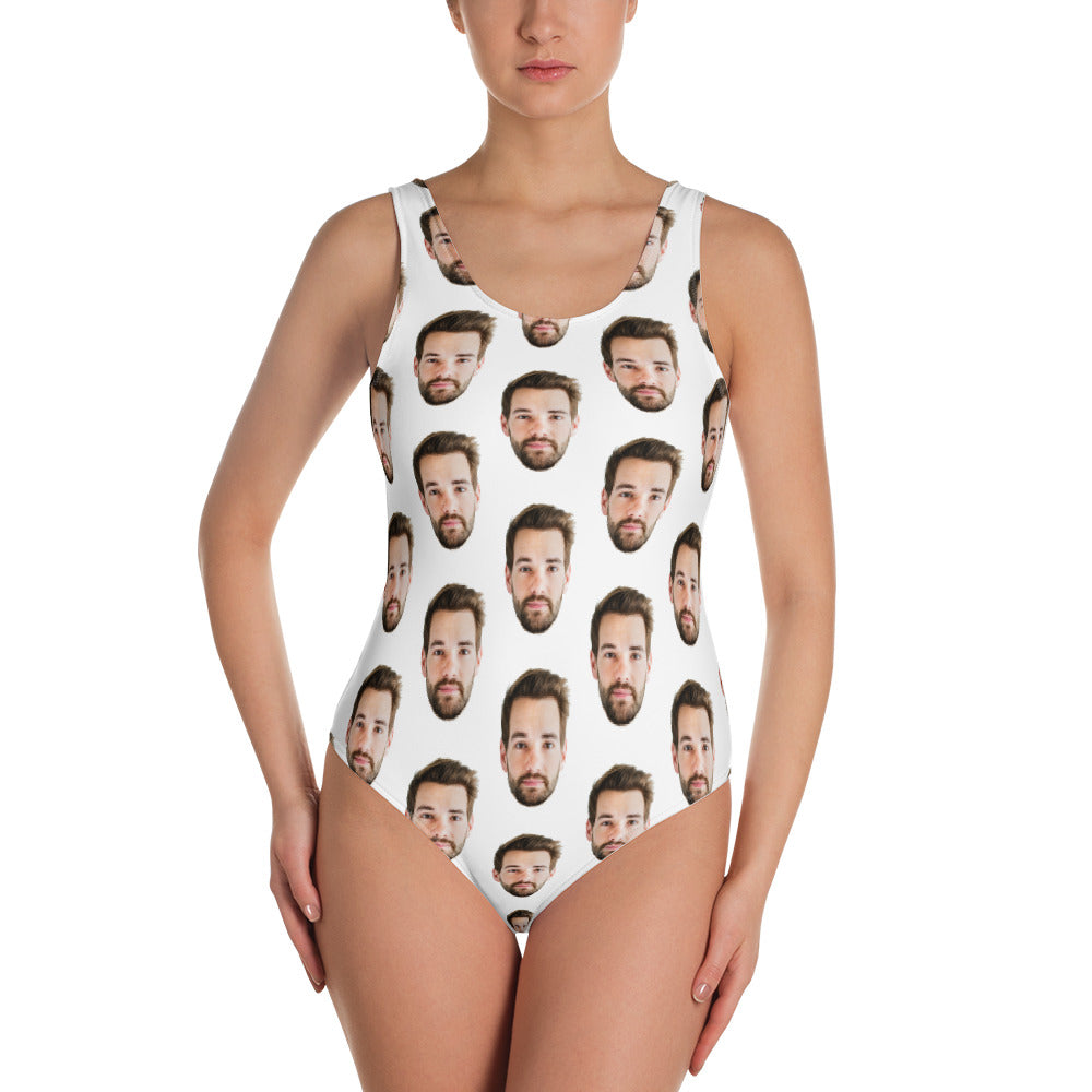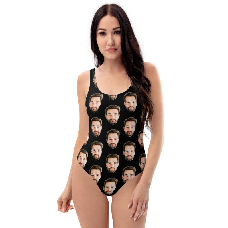 Custom Print Photo Faces Bathing Suit Women, Personalized One Piece Swimsuit Face, Customized Bride Bachelorette Party Funny Gift Swimwear