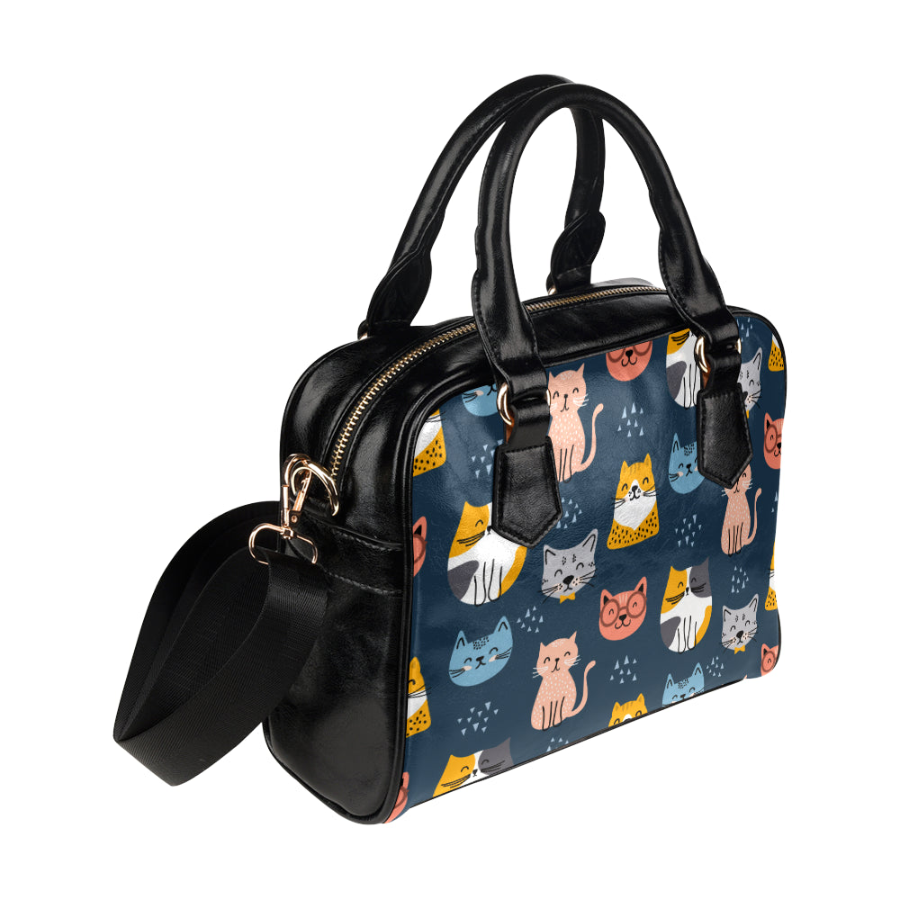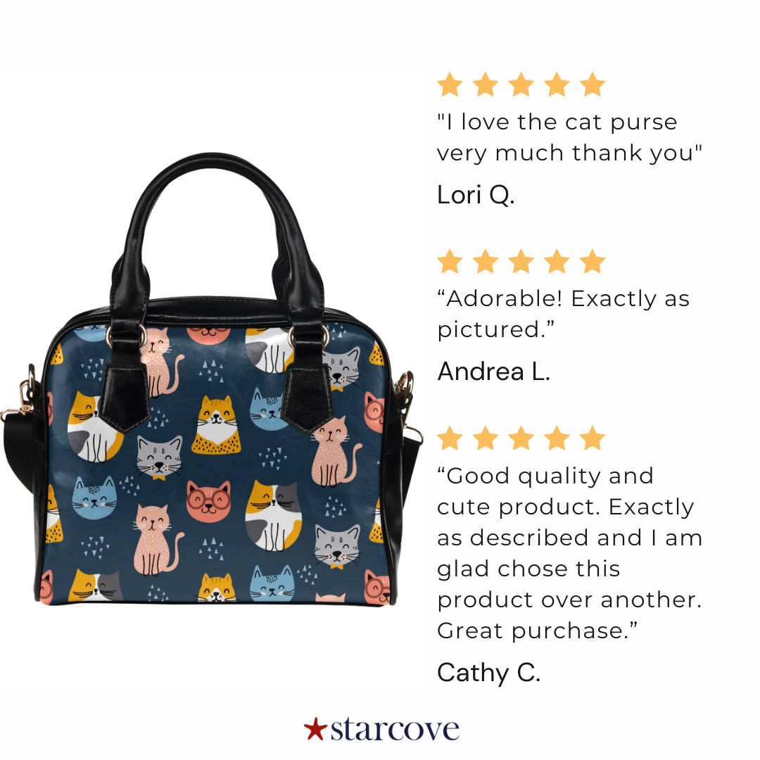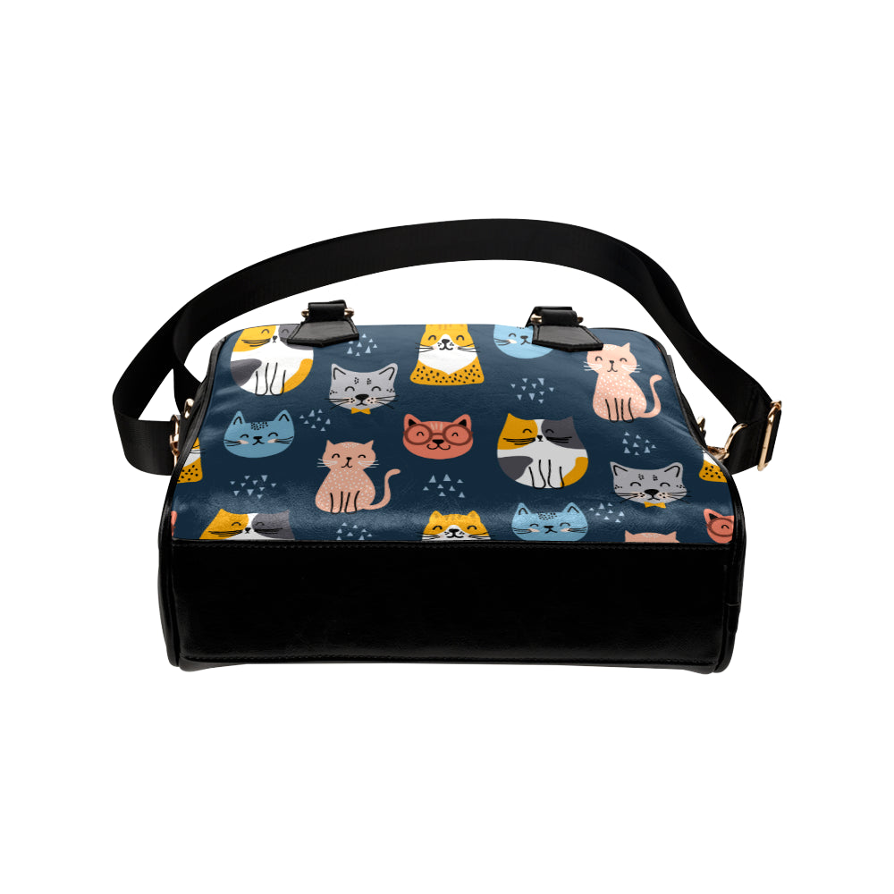Cute Cat Purse, Animal Kitten Black Blue Colorful Print Small Shoulder Bag High Grade PU Leather Women Designer Handbag