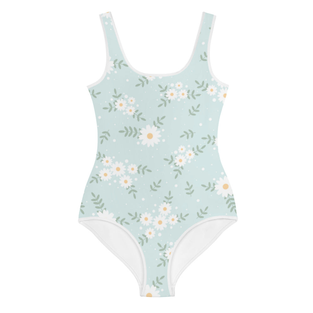 Daisy Girls Swimsuits (8 - 20), Cute Blue Flowers Kids Jr Junior Tween Pre Teen Teenage One Piece Bathing Suit Young Swimwear