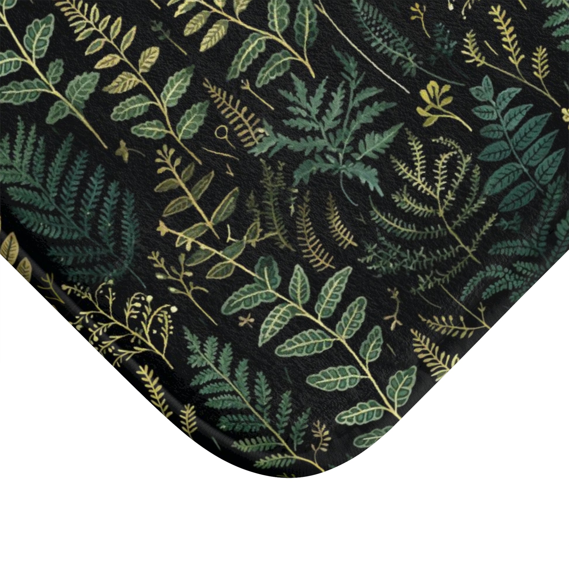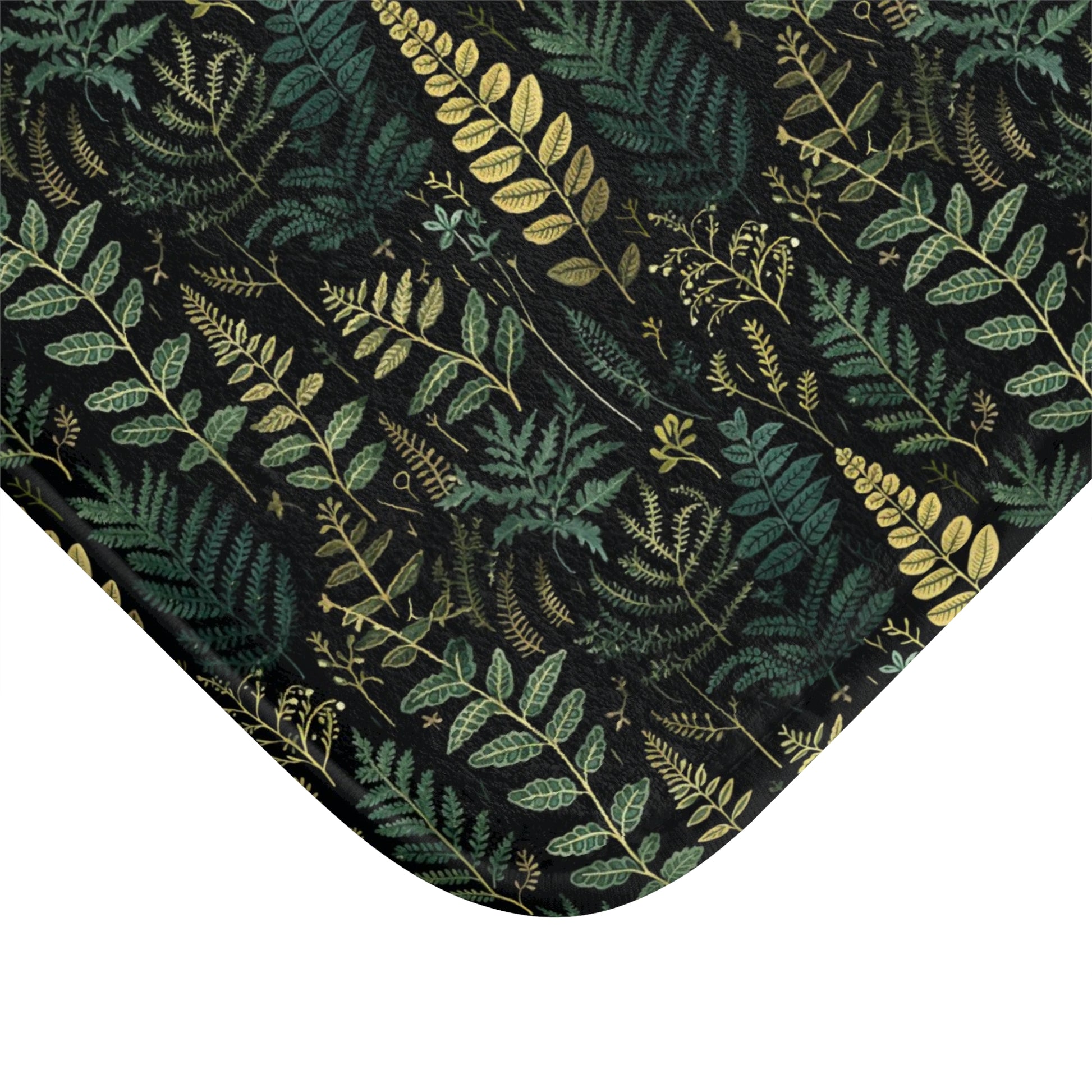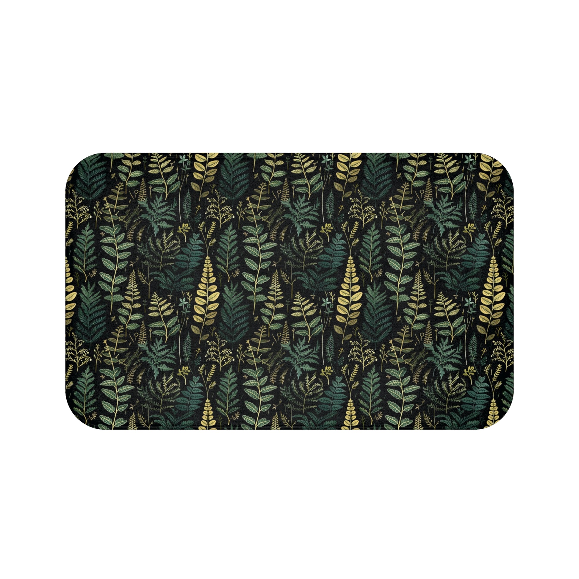 Fern Botanical Bath Mat, Green Forest Leaves Memory Foam Cute Shower Bathroom Decor Non Slip Floor Large Small Washable Rug