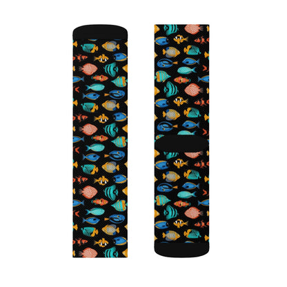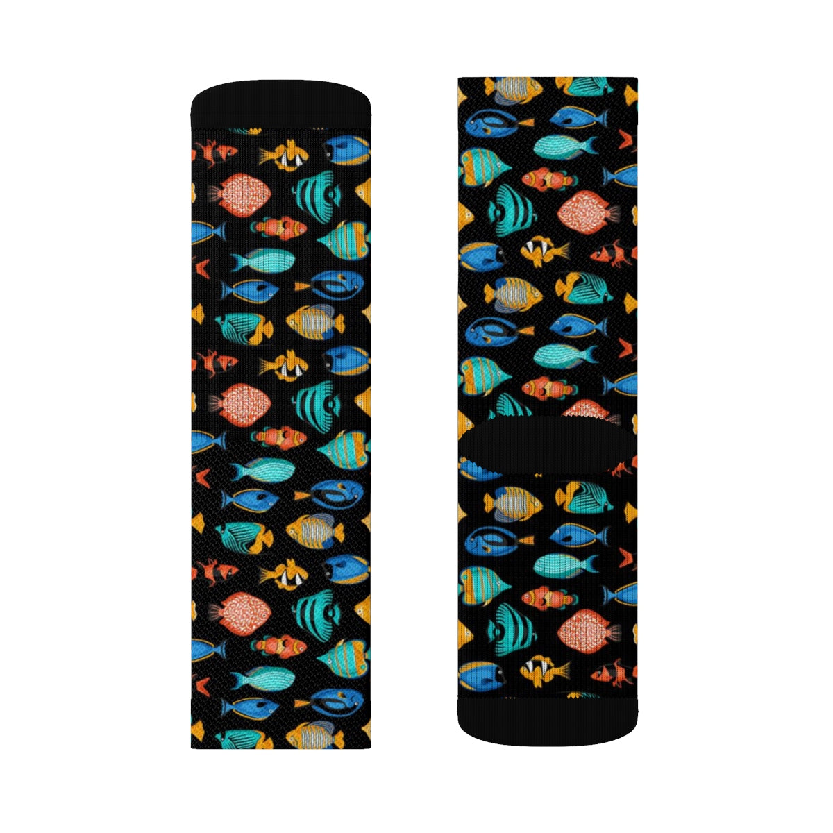 Fish Socks, 3D Sublimation Socks Black Tropical Angel Clown Fish Sea Ocean Men Women Crew Cotton Socks, Cool, Cute Crazy & Fun socks