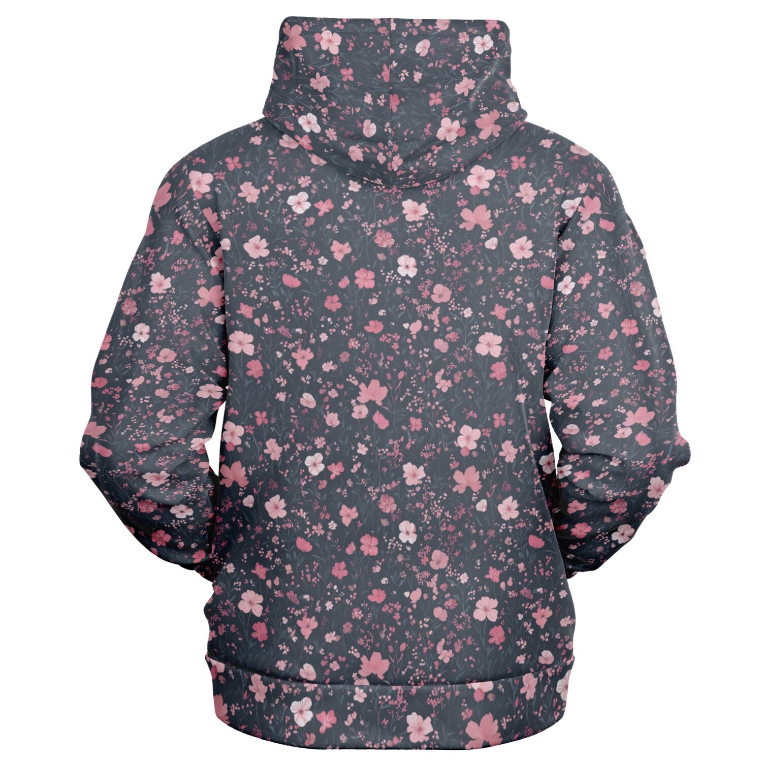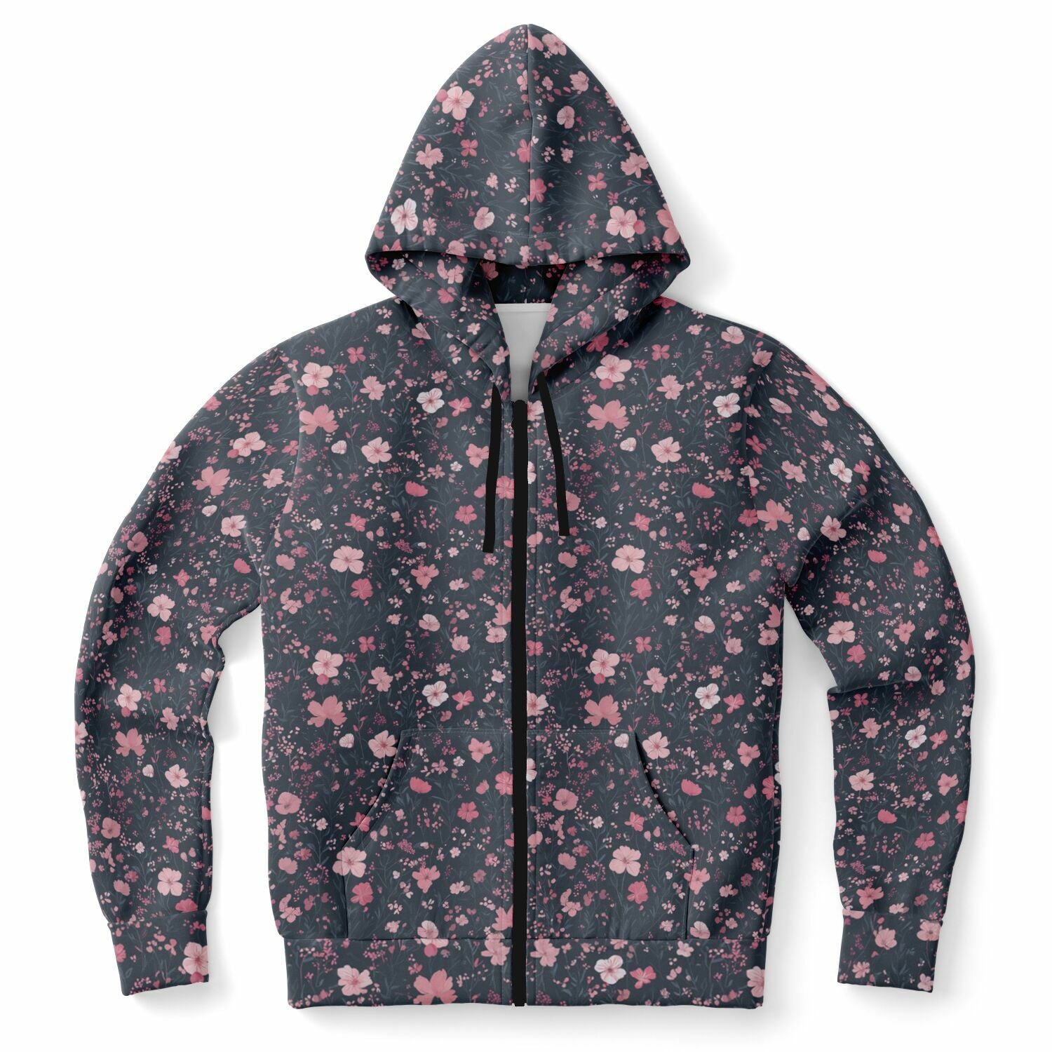 Floral Pink Zip Up Hoodie, Ditsy Flowers Full Zipper Pocket Men Women Unisex Adult Aesthetic Graphic Cotton Fleece Hooded Sweatshirt