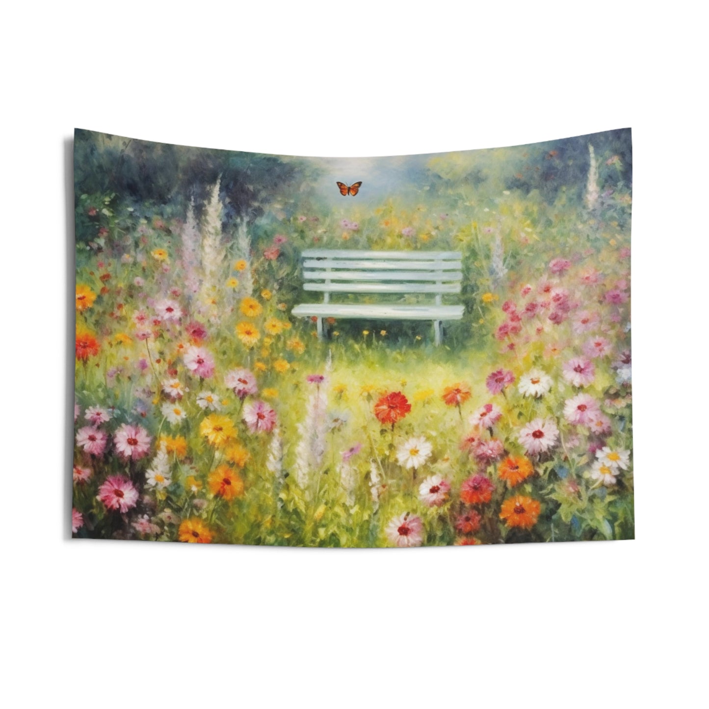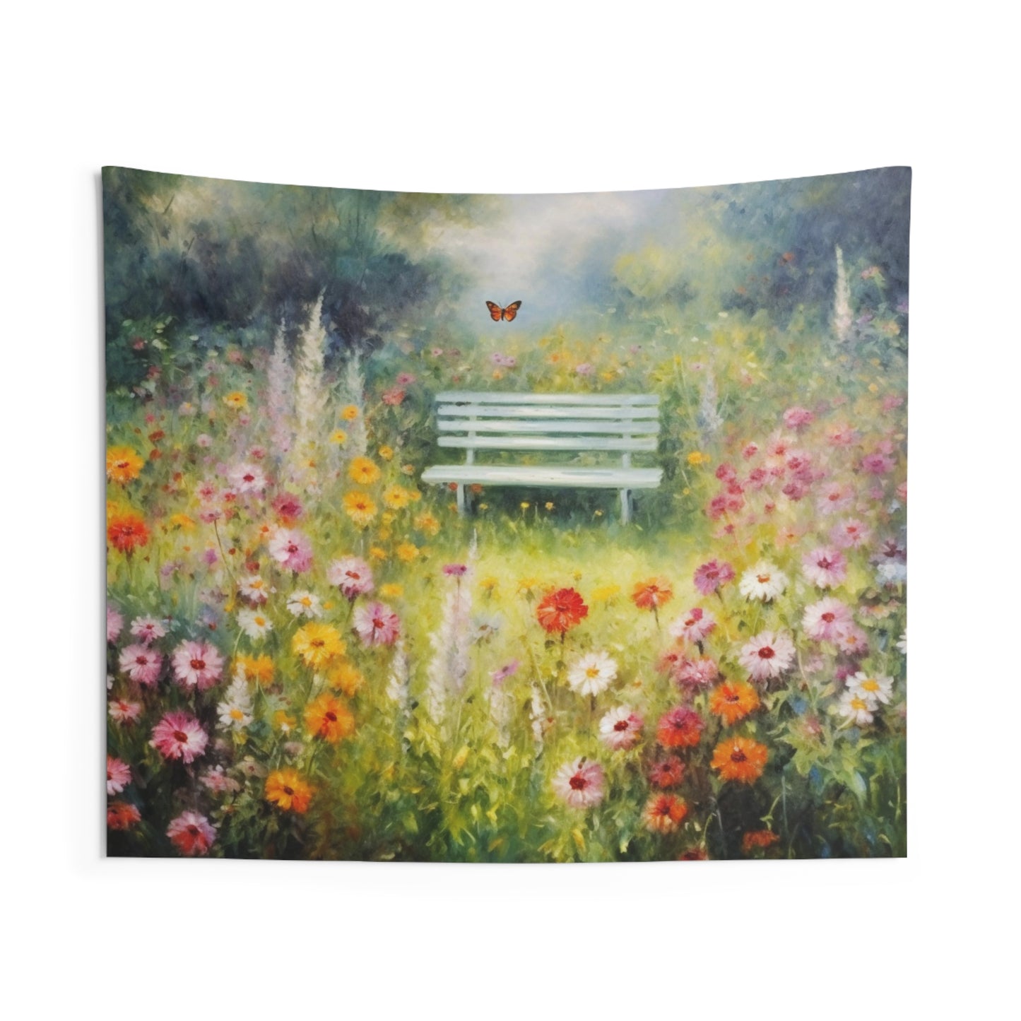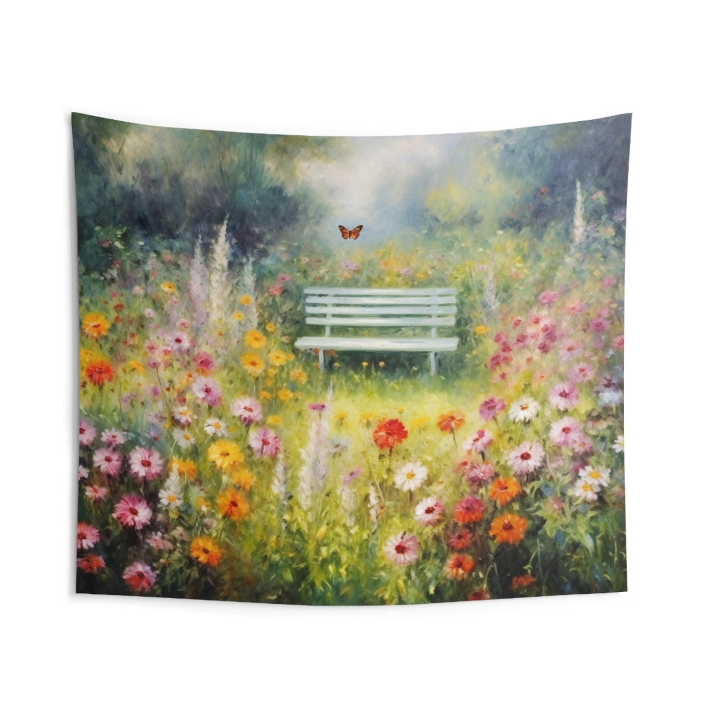 Flower Garden Tapestry, Impressionist Nature Wall Art Hanging Cool Unique Landscape Aesthetic Large Small Decor Bedroom Dorm Room