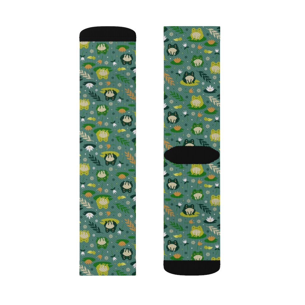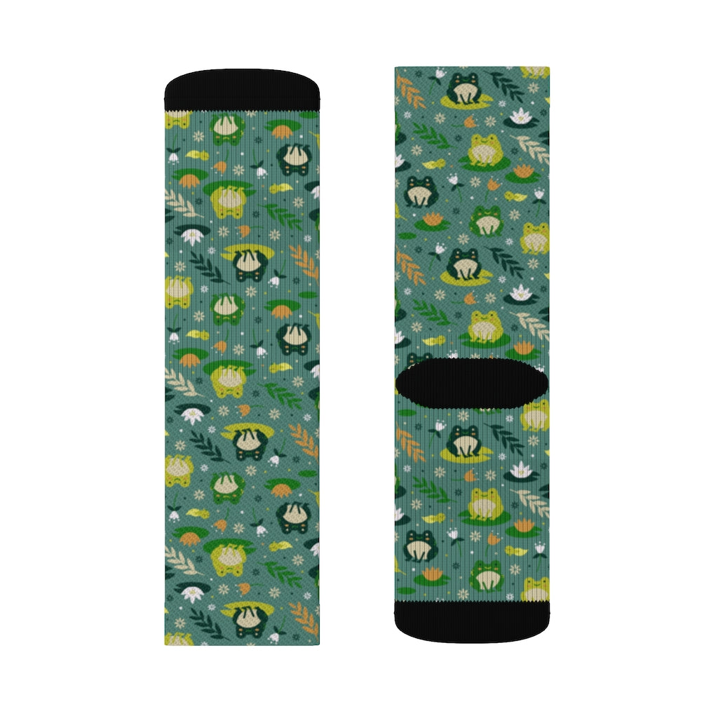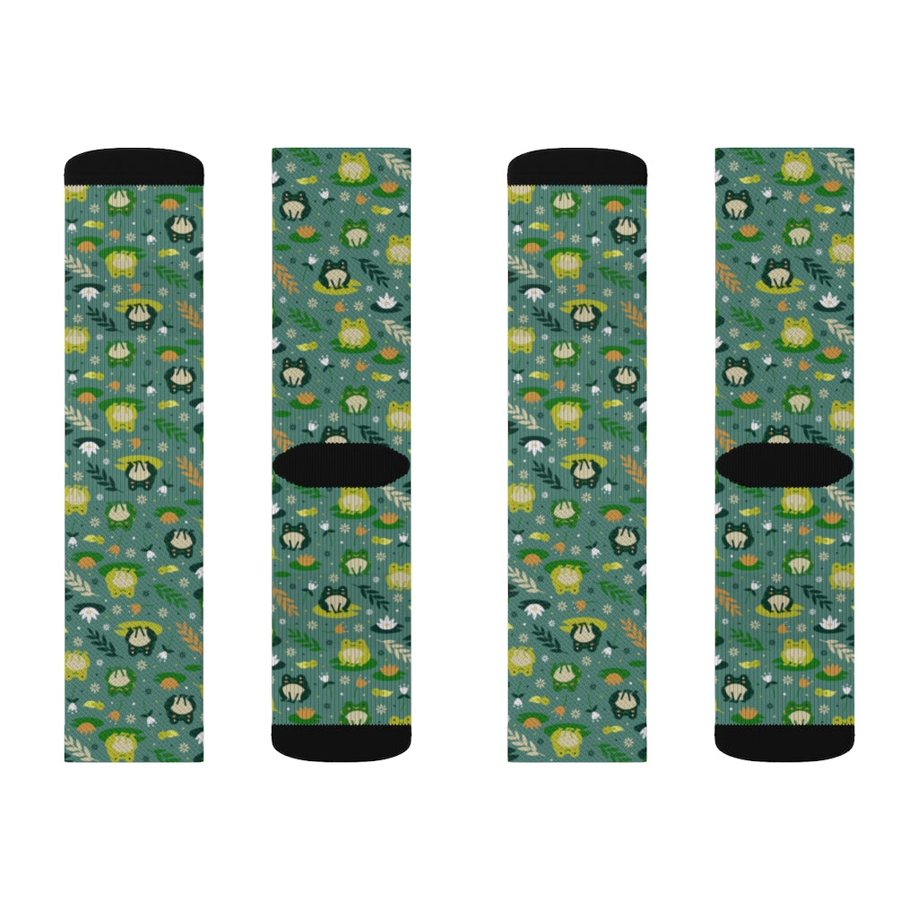 Frog Socks, Green 3D Printed Sublimation Women Men Funny Fun Novelty Cool Funky Crazy Casual Cute Crew Unique Gift