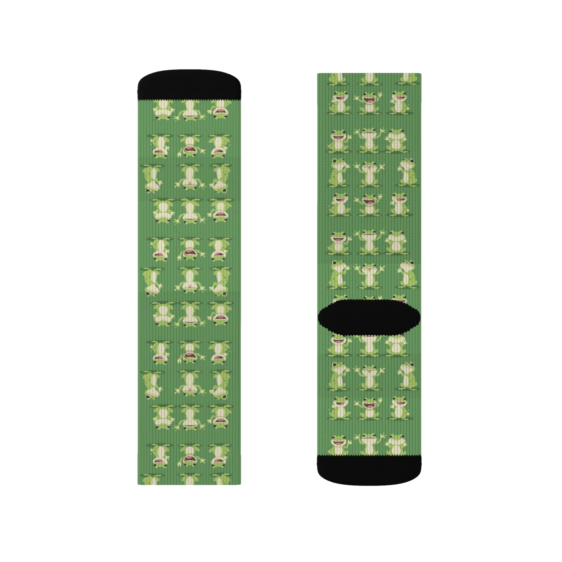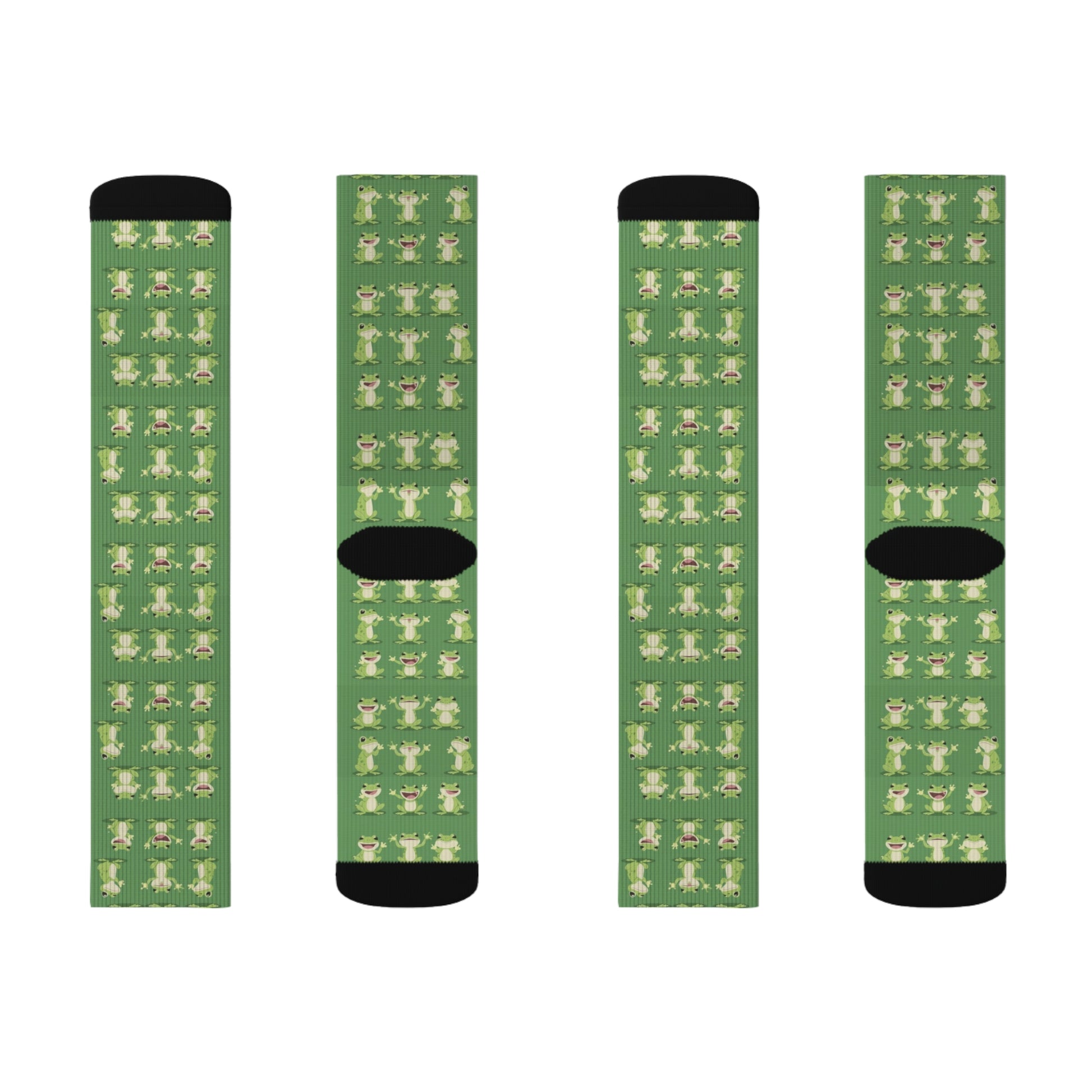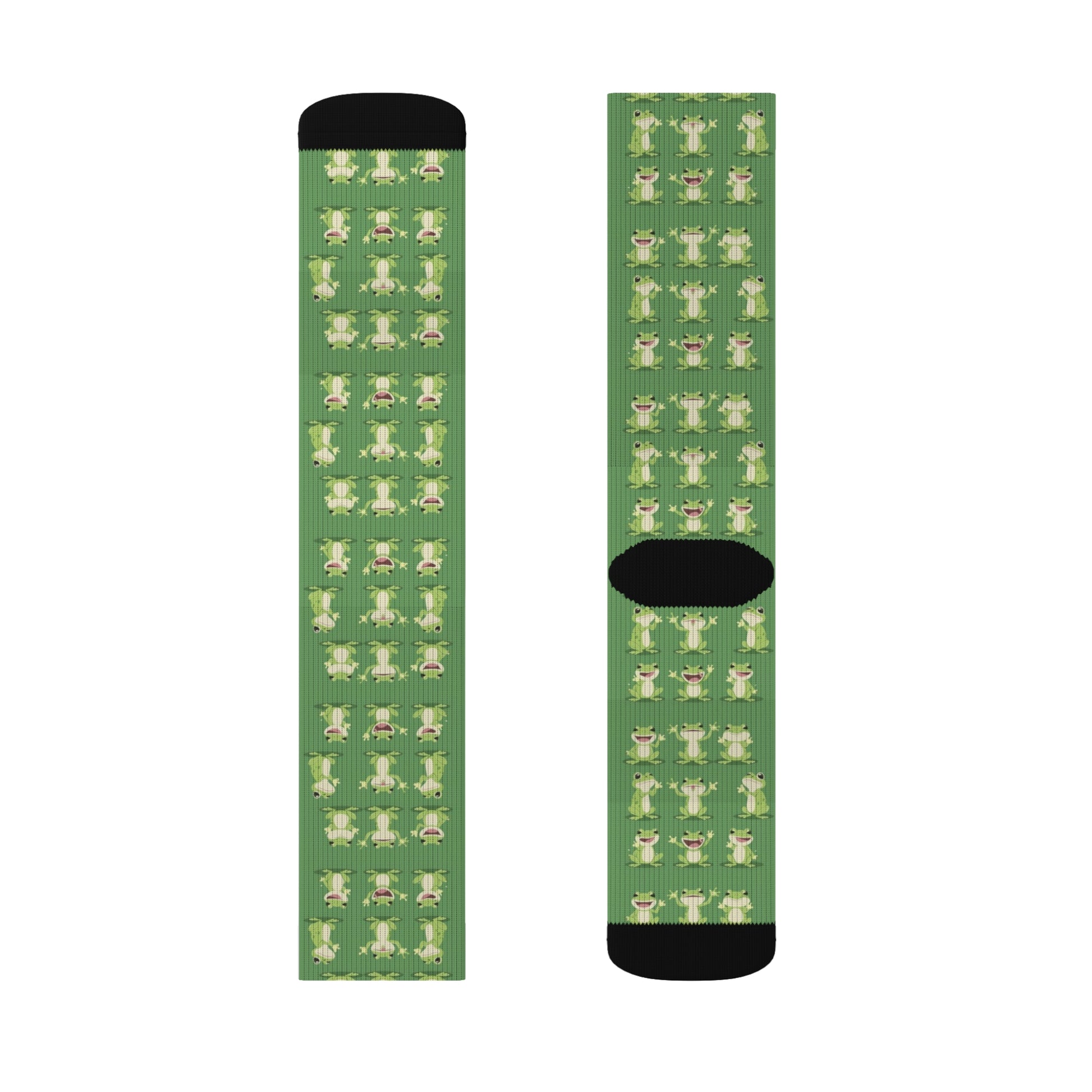 Frog Socks, Poses Green Funny Crew Sublimation Women Men Designer Fun Novelty Cool Funky Crazy Casual Cute Unique Dress