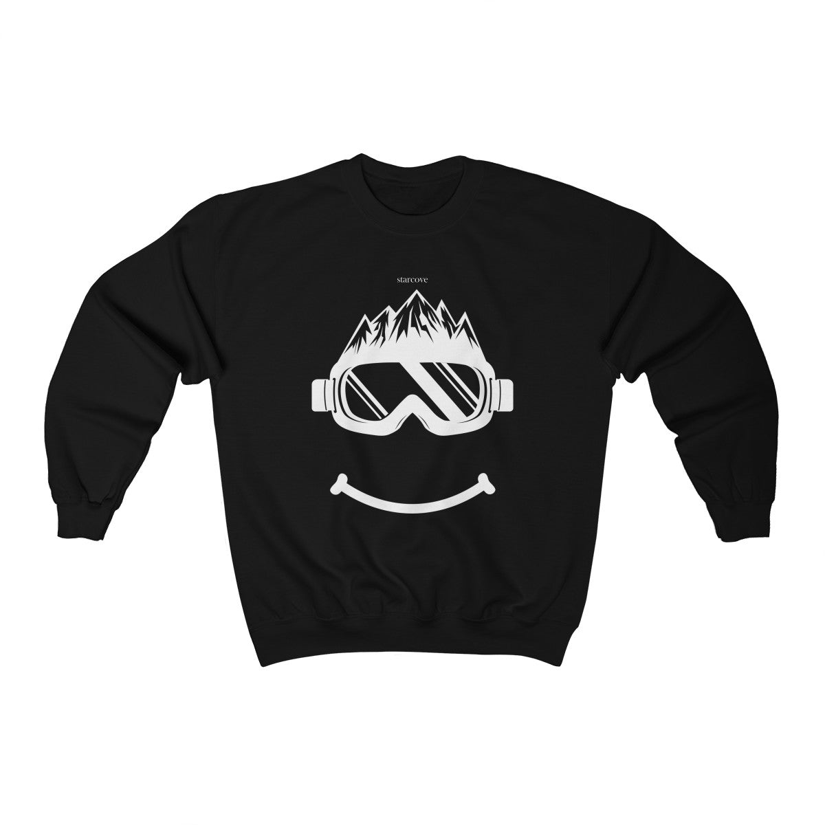 Funny Ski Face Sweatshirt Fun Smiling Goggles Mountain Skiing Snowboard Apres Party Gift Skier Men Women 80s 90s Winter Sports Sweater