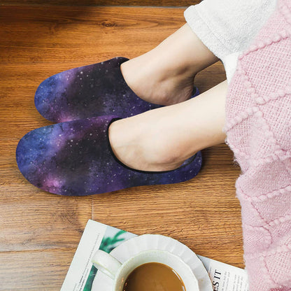 Galaxy Space Women's Slippers, Universe Purple Ladies House Slide Cute Handmade Bedroom Warm Winter Cozy Designer Slip On Cotton Shoes