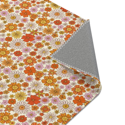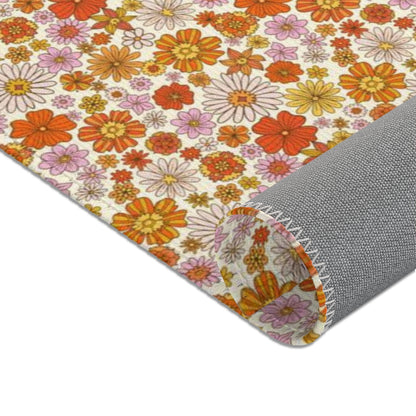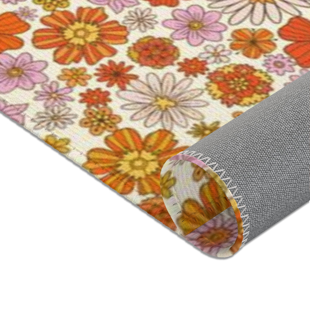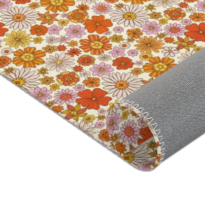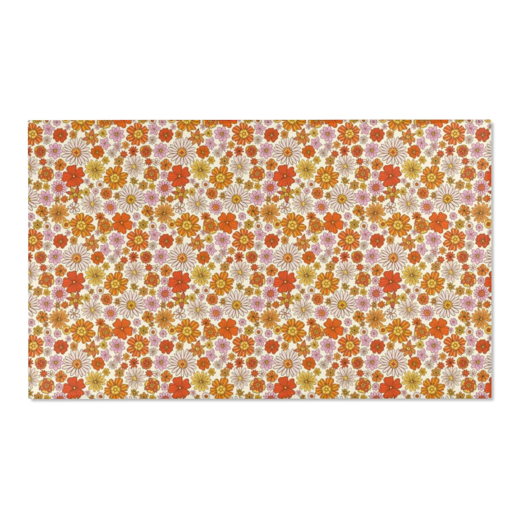 Groovy Flowers Area Rug Carpet, Floral 70s Home Floor Decor Chic 2x3 4x6 3x5 Designer Kids Nursery Decorative Patio Mat