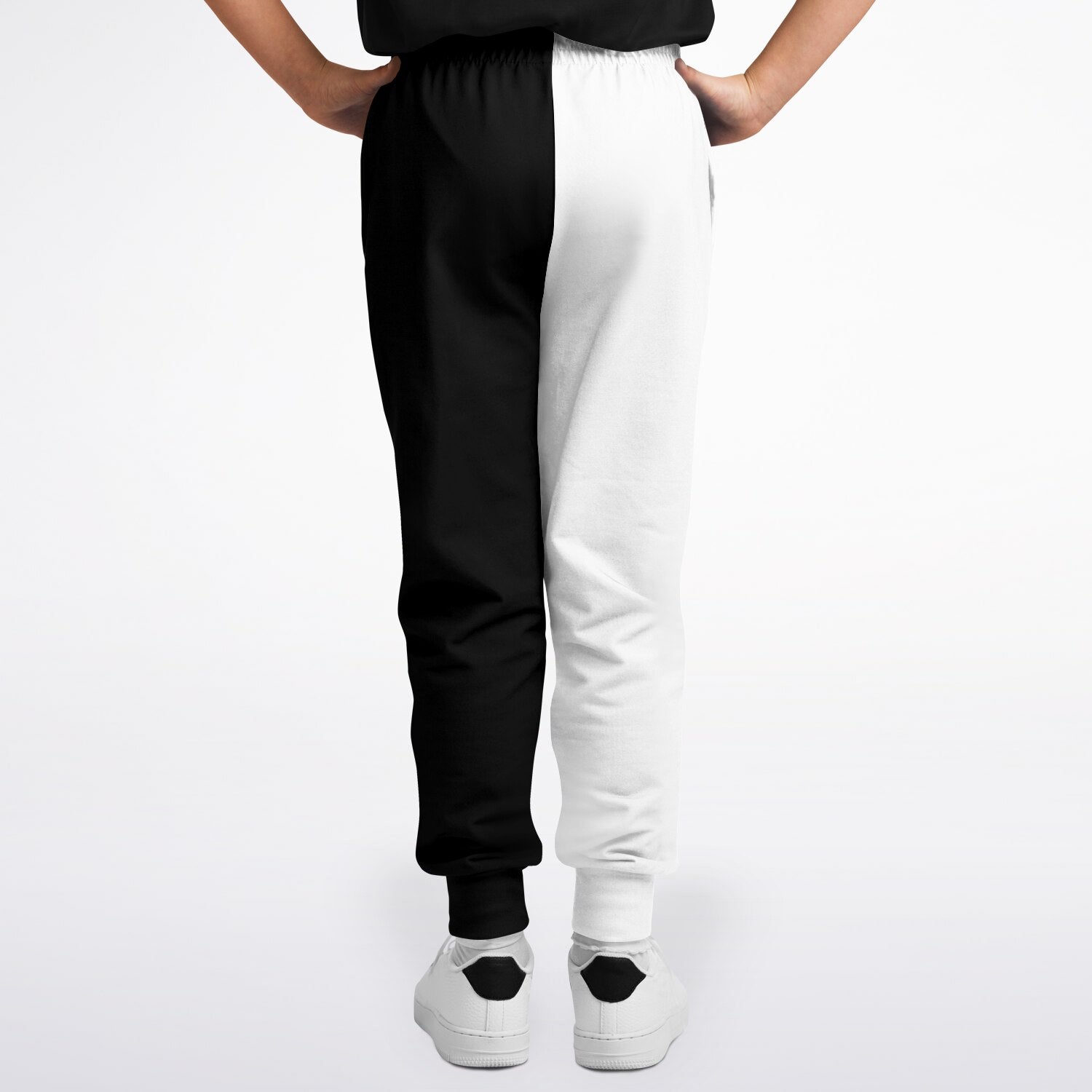 Half Black Half White Kids Joggers Sweatpants Pockets, Two Tone Split Color Block Youth Boys Fleece Fun Comfy Sweats Girls Pants Loungewear