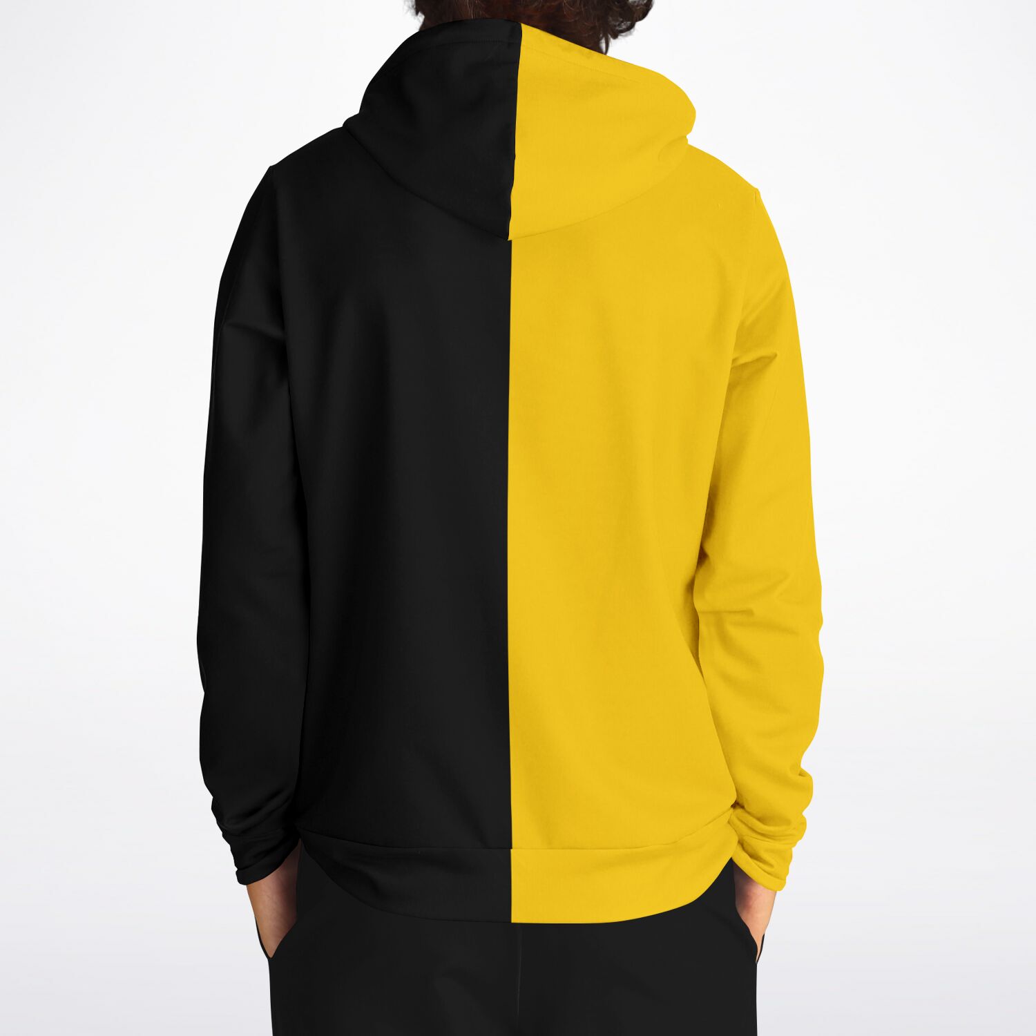 Half Black Half Yellow Hoodie, Two Tone Color Split Pullover Men Women Adult Cotton Hooded Sweatshirt with Pockets Designer Plus Size