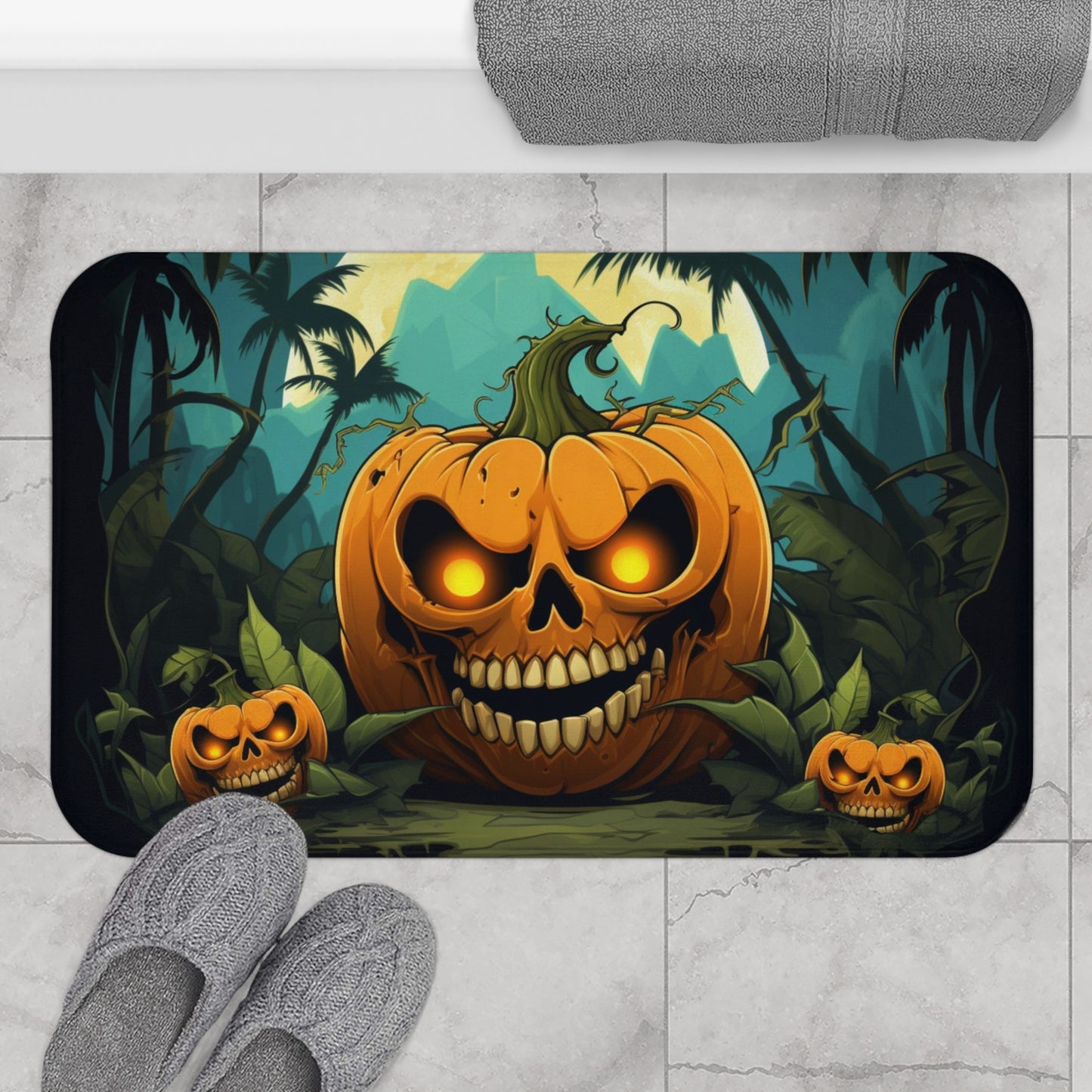 Halloween Bath Mat, Pumpkin Cute Shower Bathroom Decor Non Slip Floor Memory Foam Microfiber Large Small Washable Rug