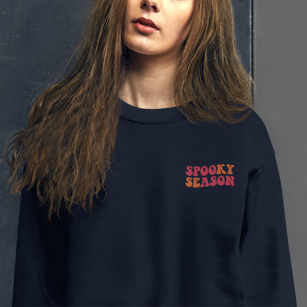 Halloween Sweatshirt Embroidered, Spooky Season Fall Graphic Crewneck Fleece Cotton Embroidery Pullover Men Women Aesthetic Top