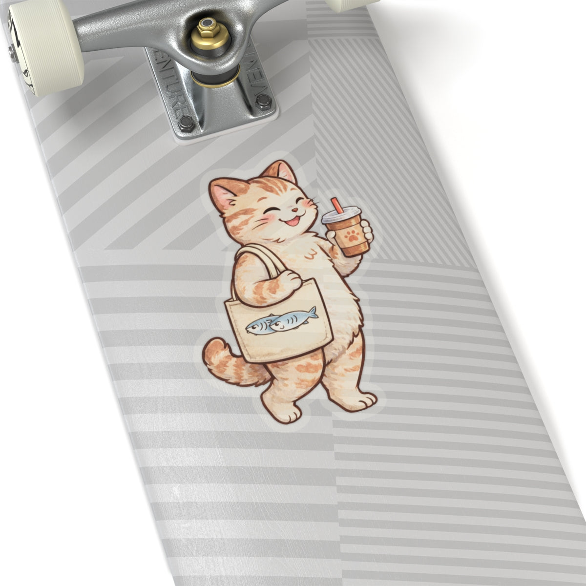 Happy Cat Sticker Decal, Coffee Kawaii Tote Bag Funny Art Vinyl Laptop Cute Waterbottle Tumbler Car Waterproof Bumper Clear Aesthetic Wall