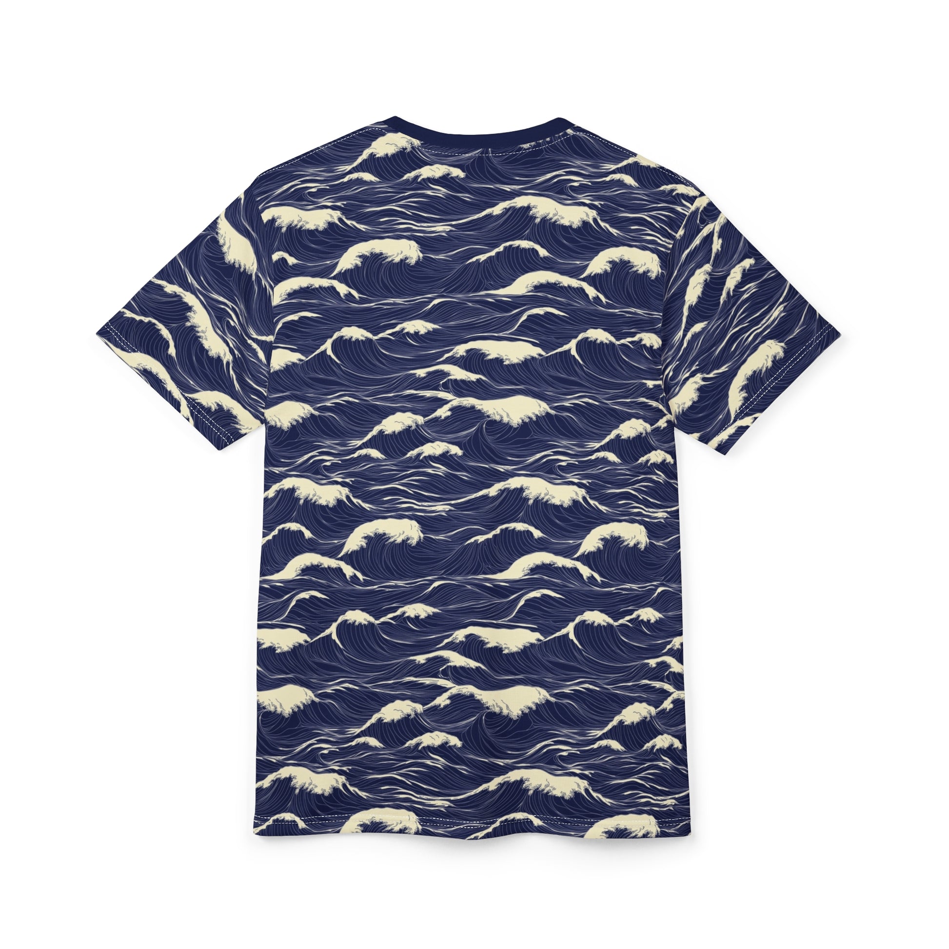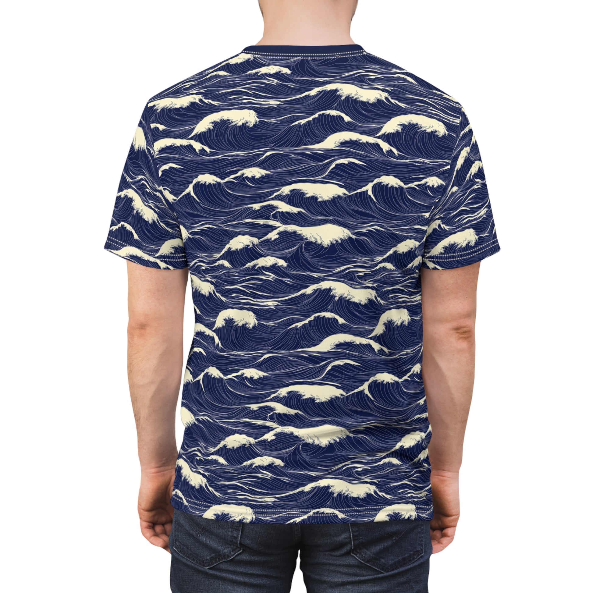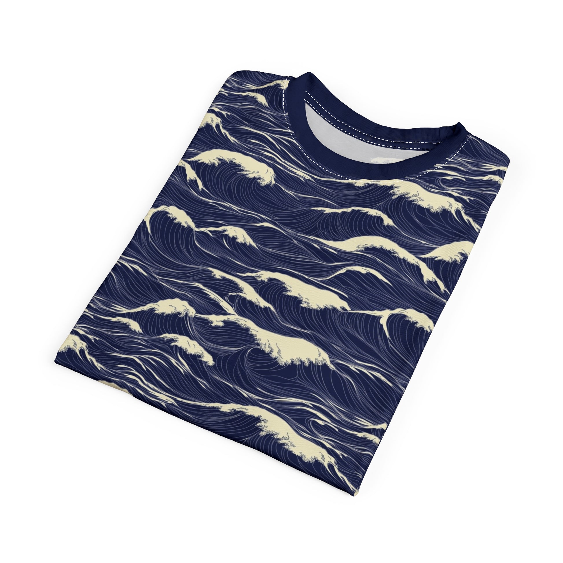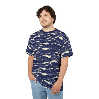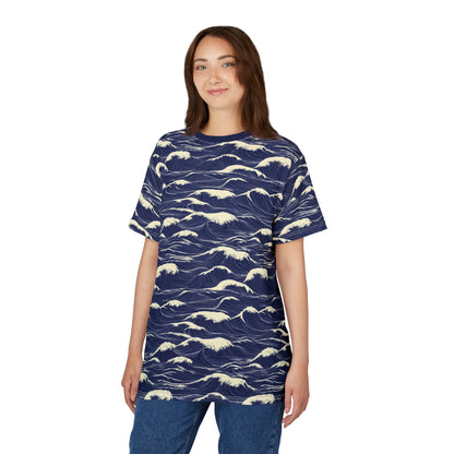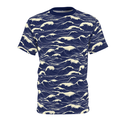 Japanese Sea Waves Tshirt, Navy Blue Ocean Beach Designer Graphic Lightweight Heavyweight Crewneck Men Women Tee Top Short Sleeve Shirt