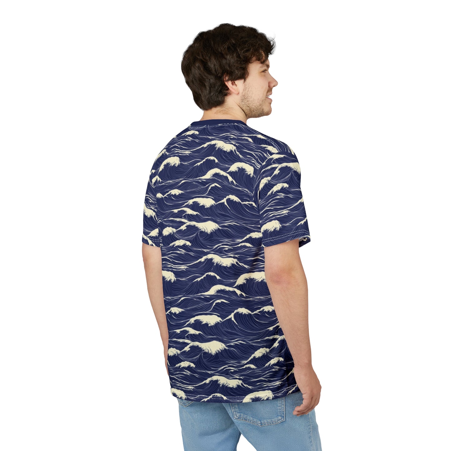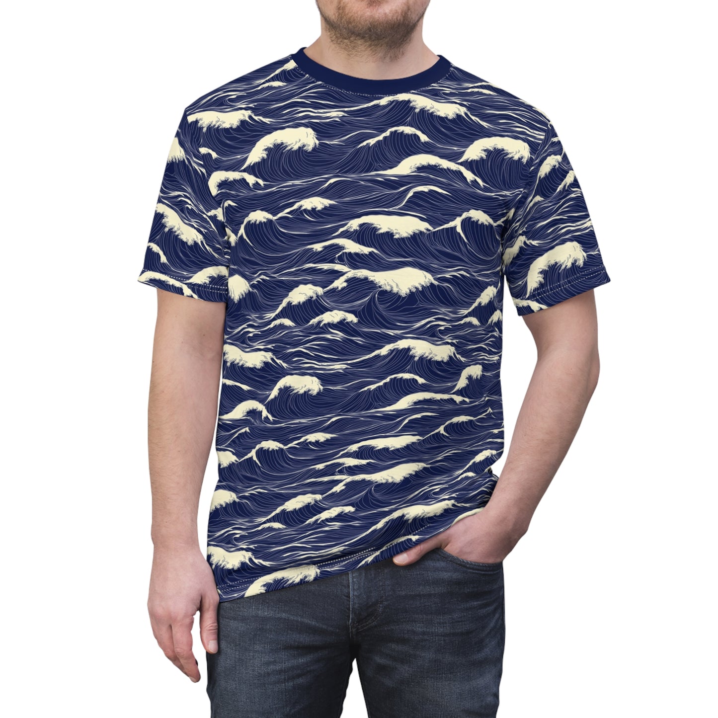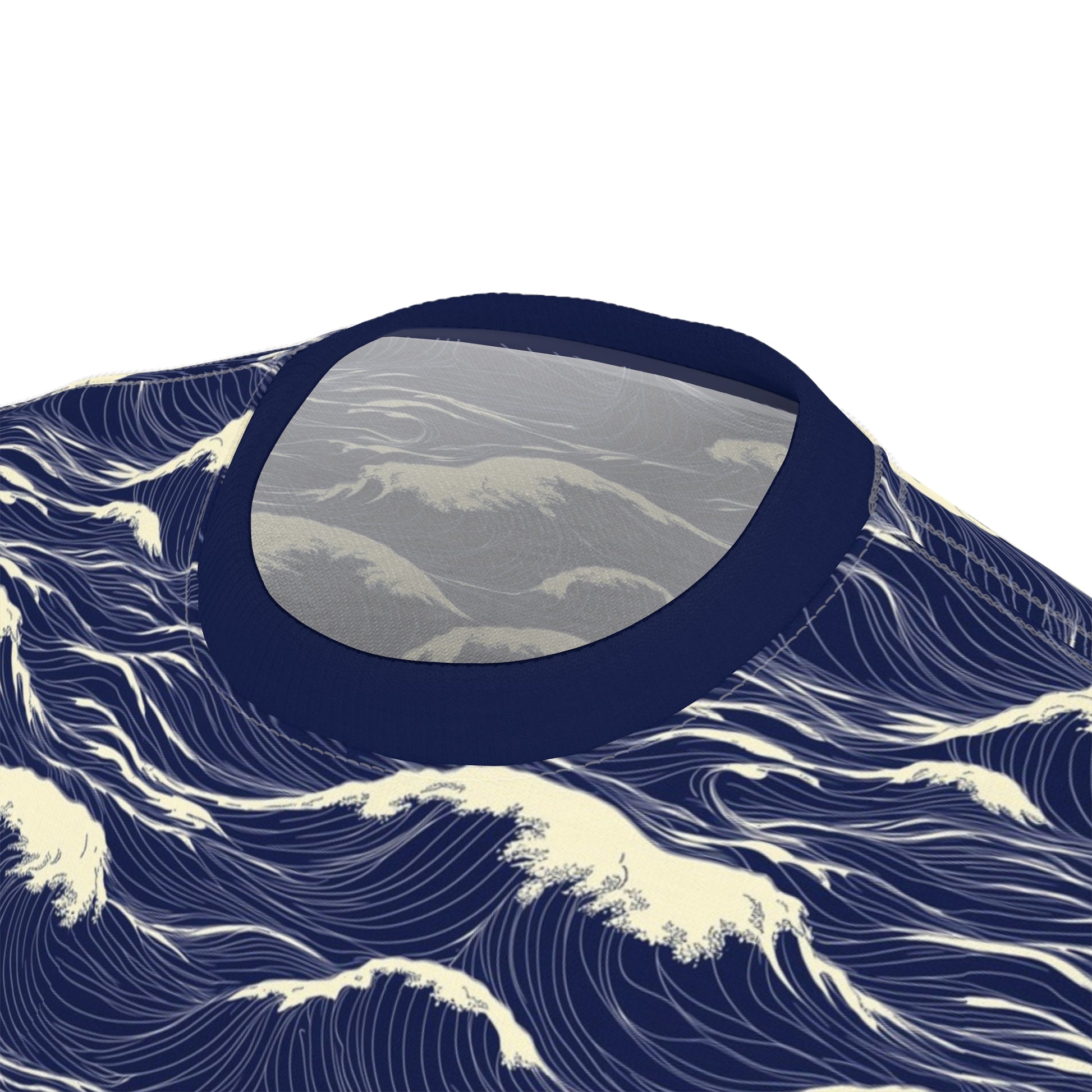 Japanese Sea Waves Tshirt, Navy Blue Ocean Beach Designer Graphic Lightweight Heavyweight Crewneck Men Women Tee Top Short Sleeve Shirt