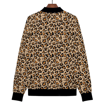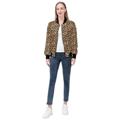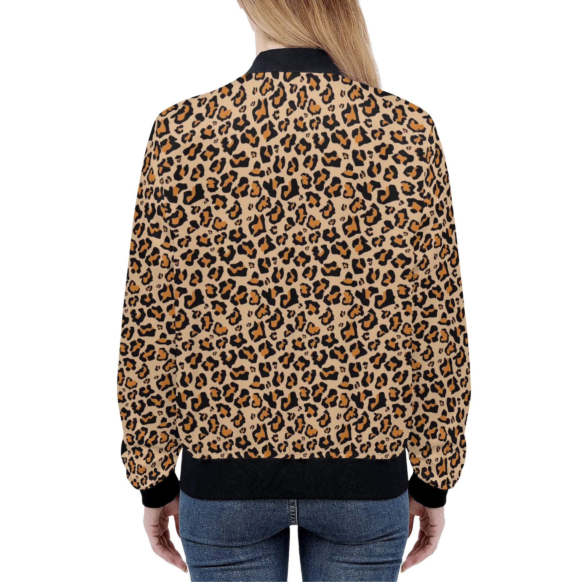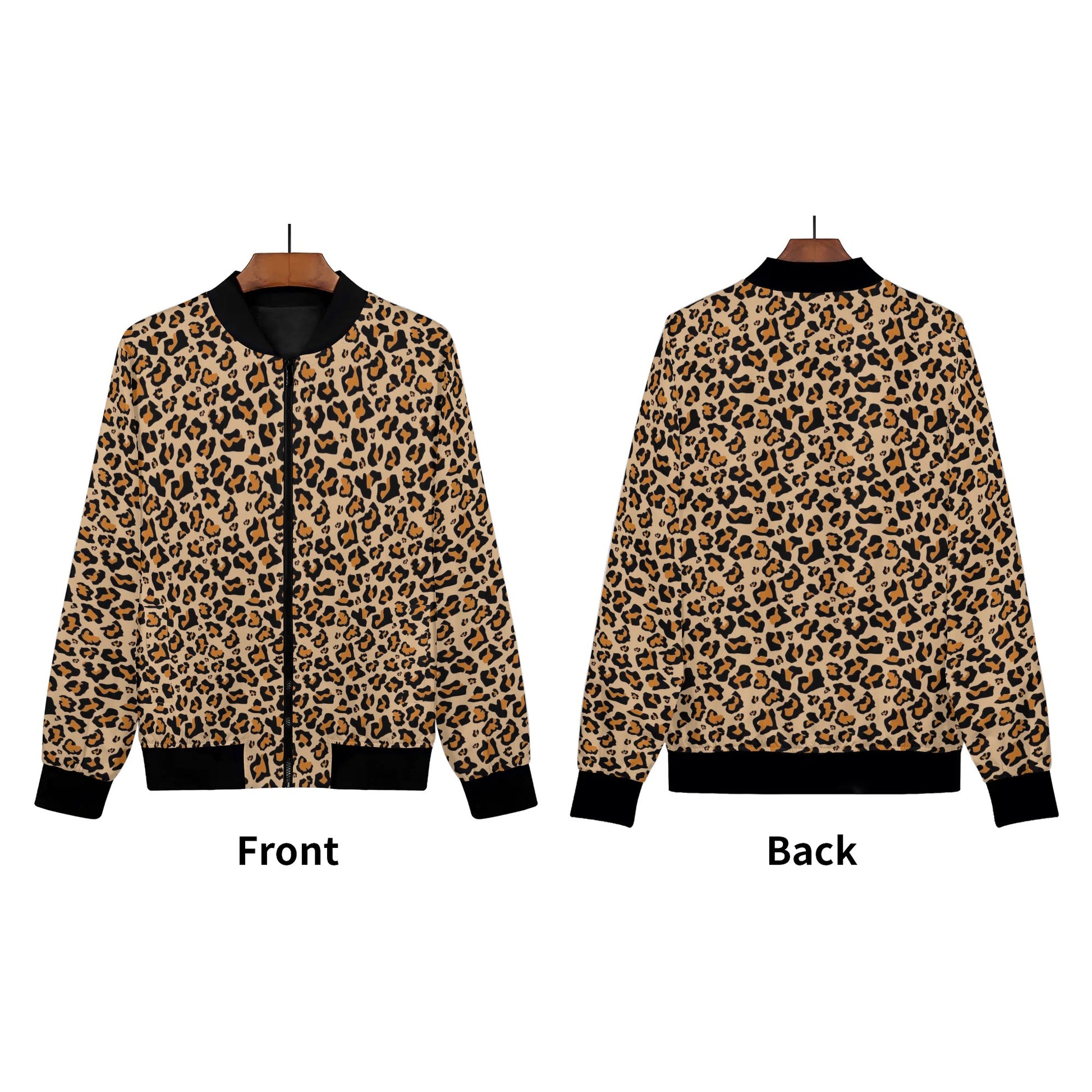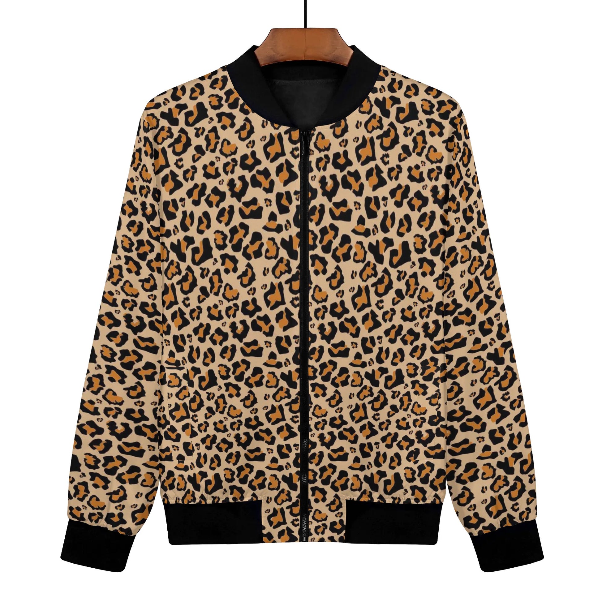 Leopard Women Bomber Jacket, Animal Print Cheetah Ladies Female Zip Up Pilot Streetwear Winter Vintage Varsity Warm Designer Coat Plus Size