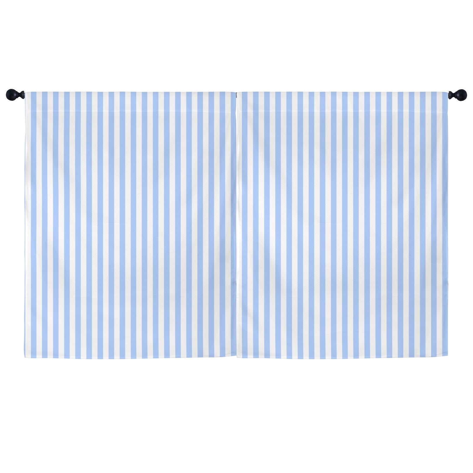 Light Blue Striped Window Curtain, Vertical Stripe White Kitchen Living Room Bedroom Bathroom Fabric Patterned Unique Rod Pocket Decor Home