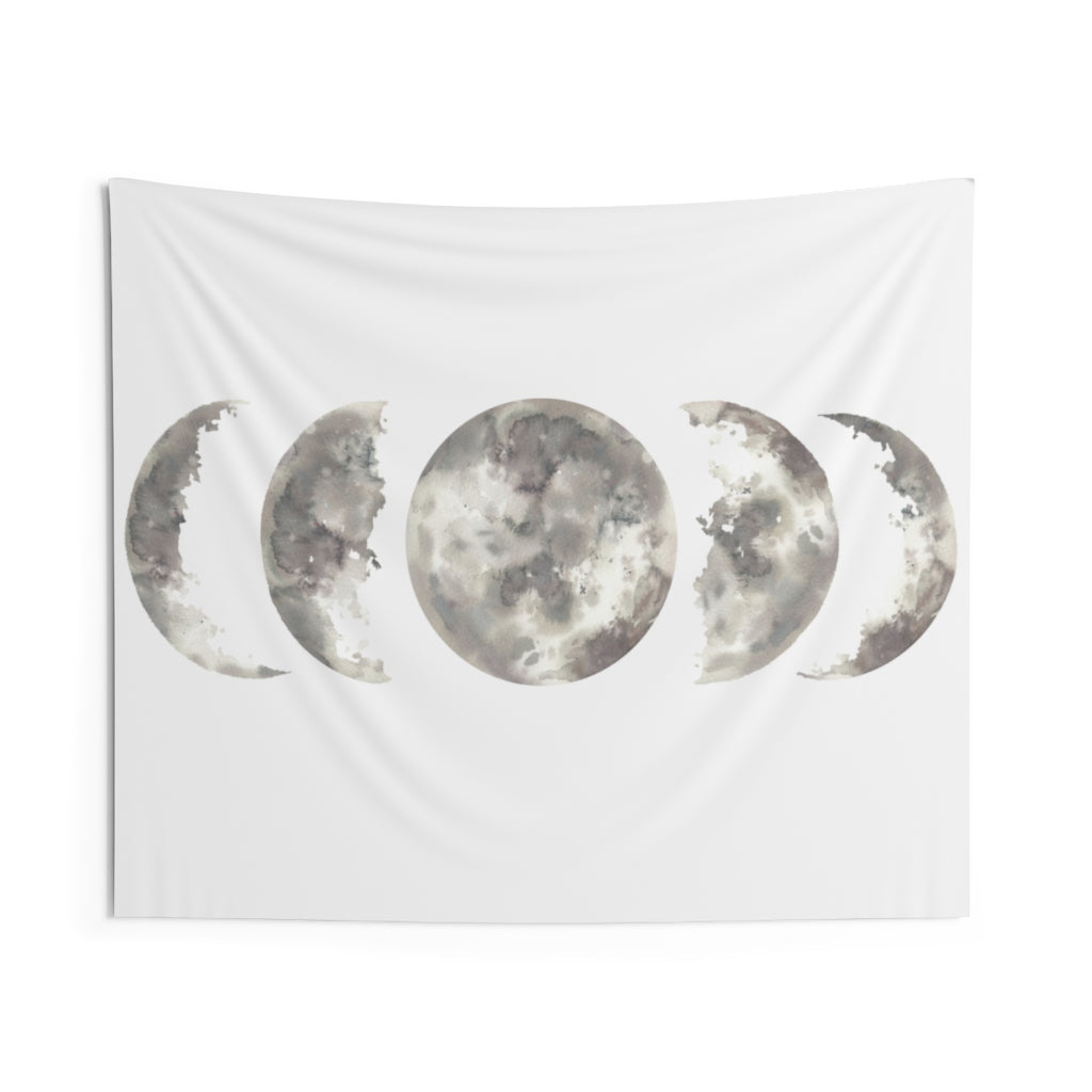 Moon Phases Tapestry, Full Halve Moon White Landscape Indoor Wall Art Hanging Tapestries Large Small Decor Home Dorm Room Gift