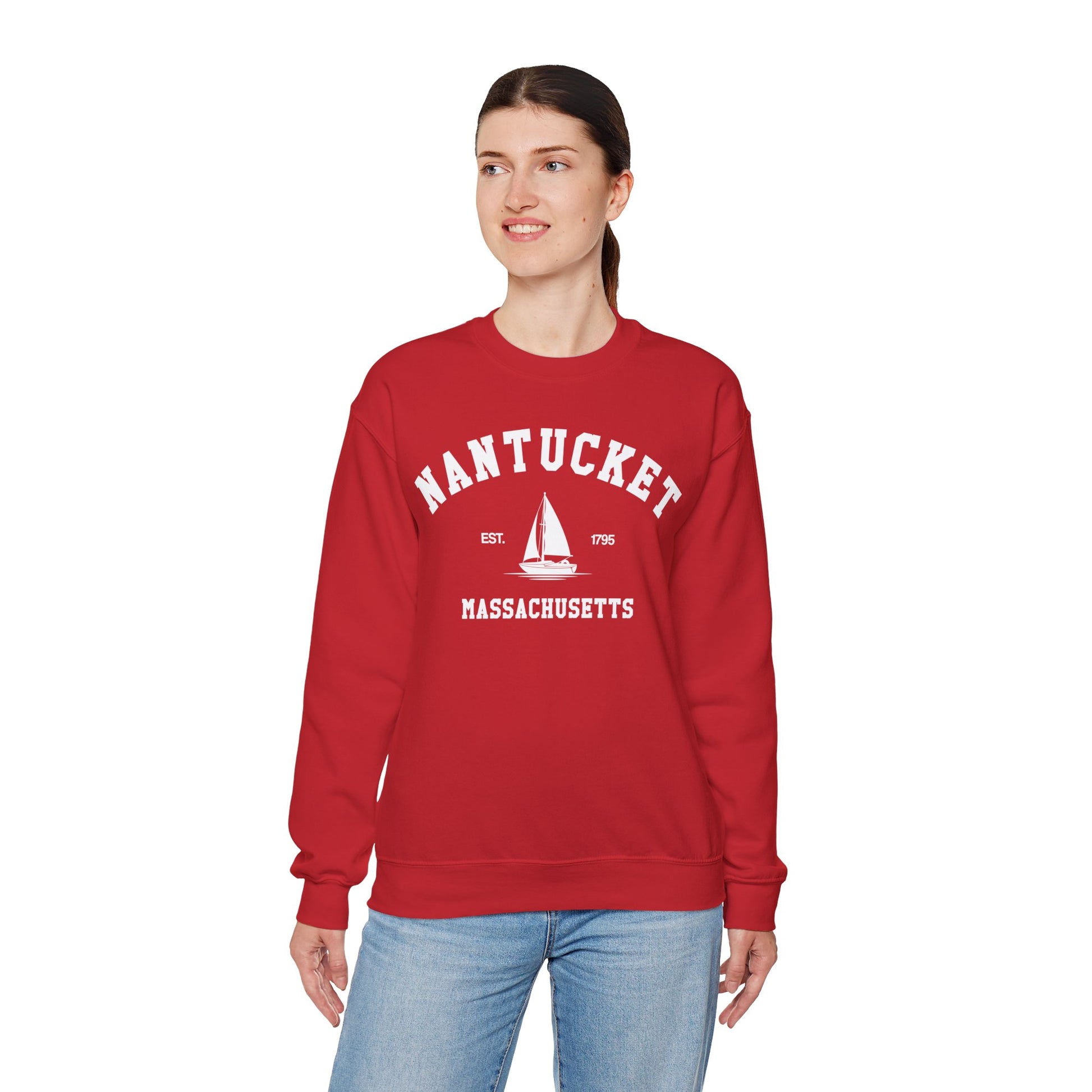 Nantucket Sweatshirt, Vintage Massachusetts MA Sailing Boating Sailboat Beach Town Graphic Crewneck Sweater Jumper Pullover Men Women