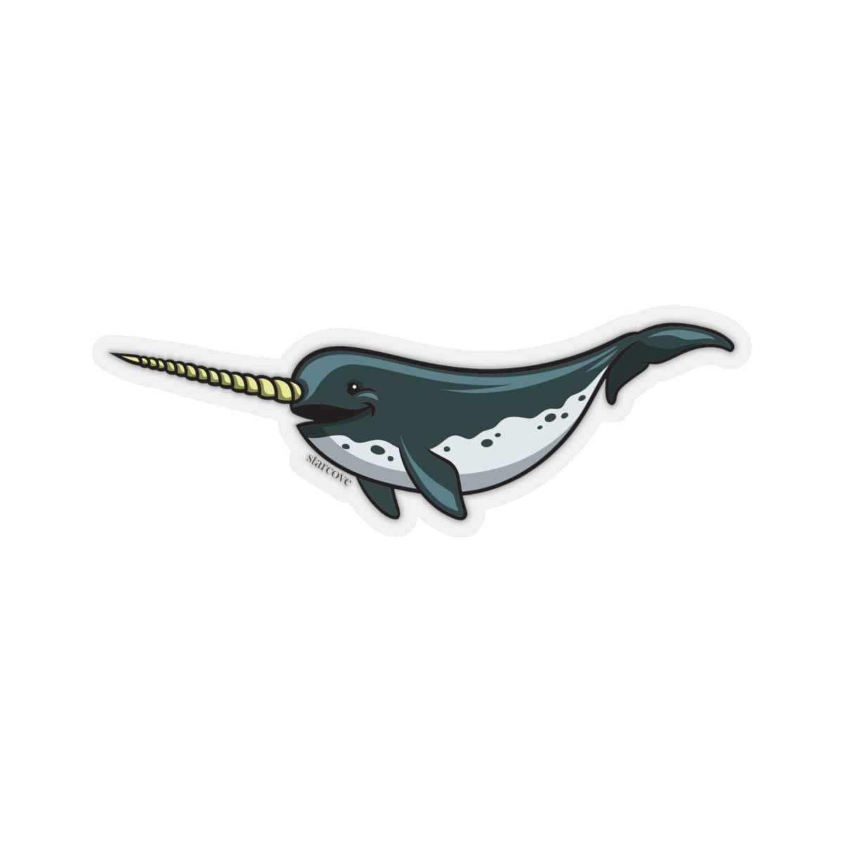 Narwhal Whale Sticker, Unicorn of the Sea Tusks Laptop Vinyl Cute Waterproof Waterbottle Tumbler Car Bumper Aesthetic Label Wall Phone Mural Decal