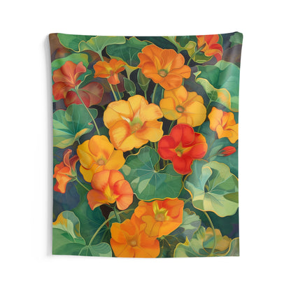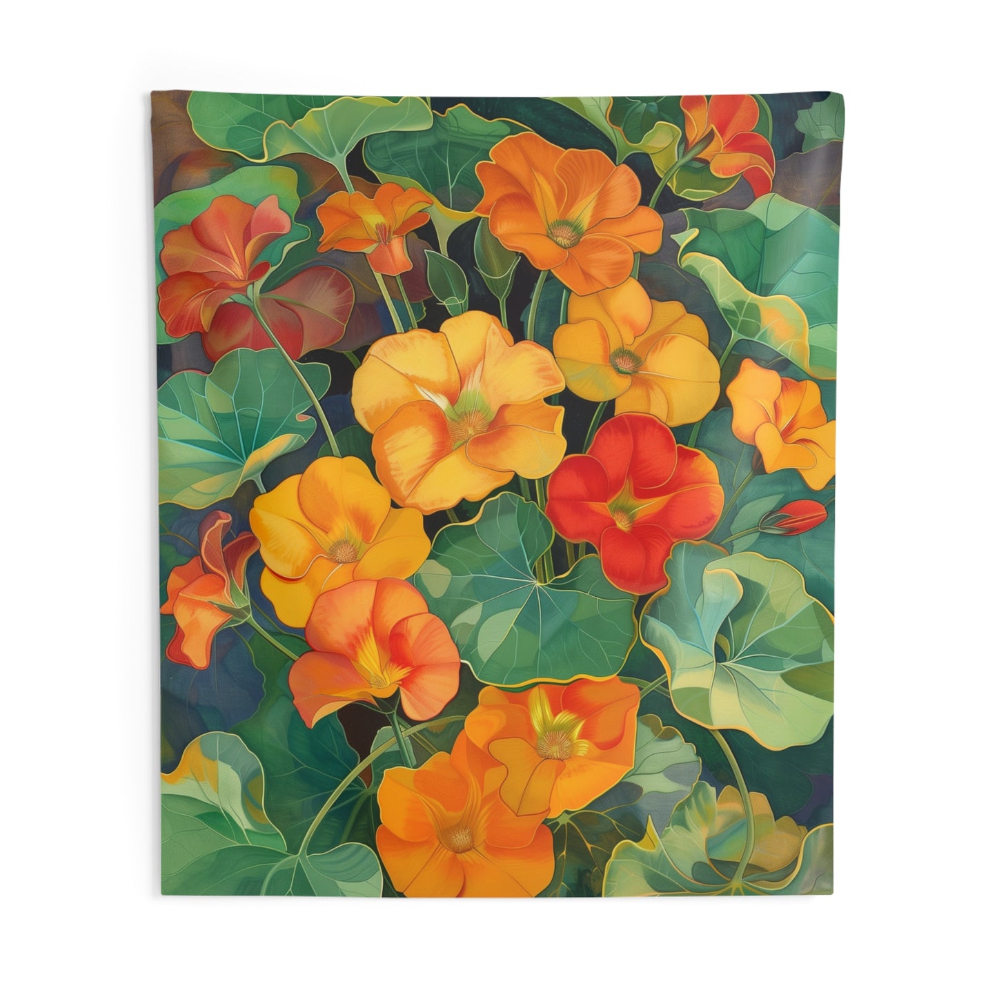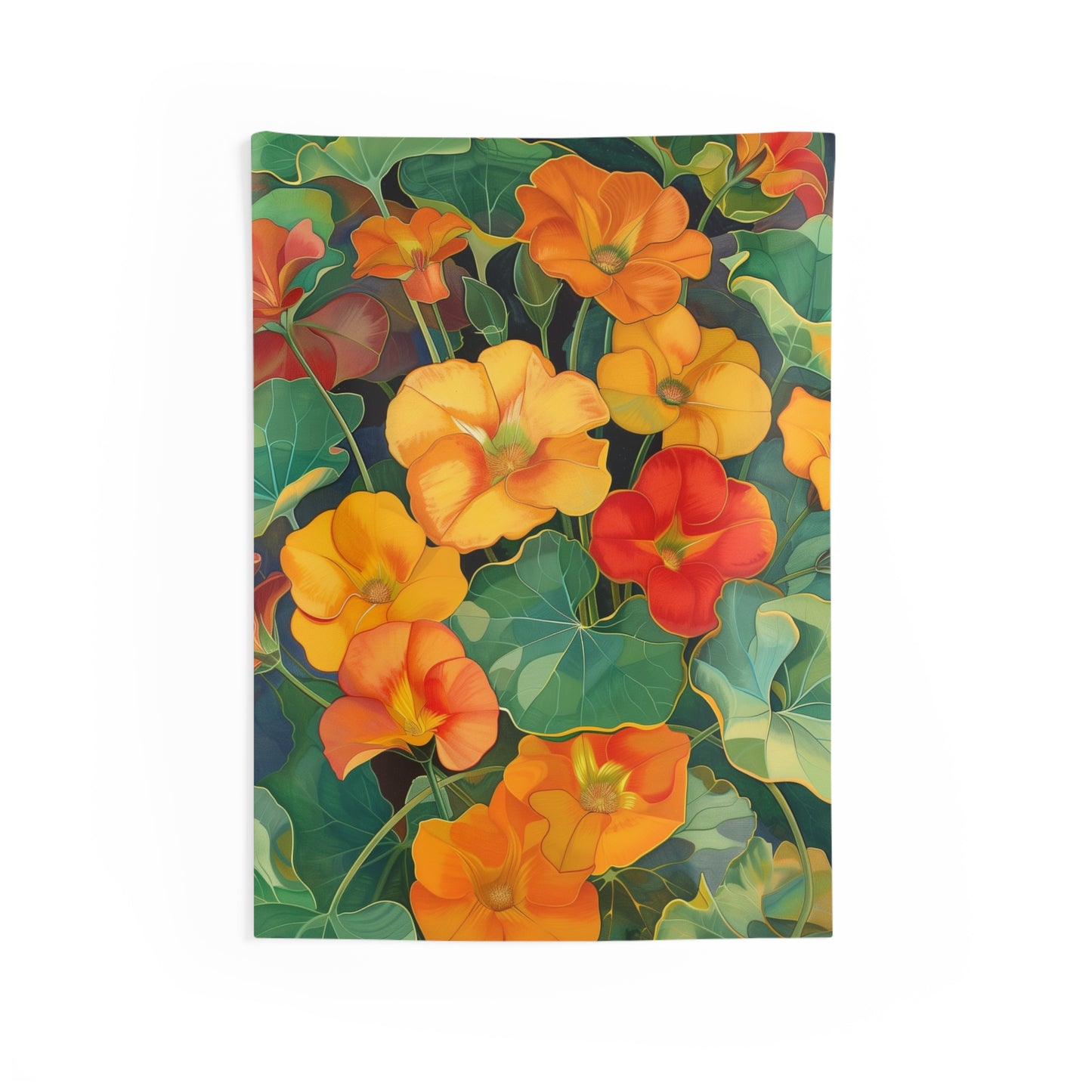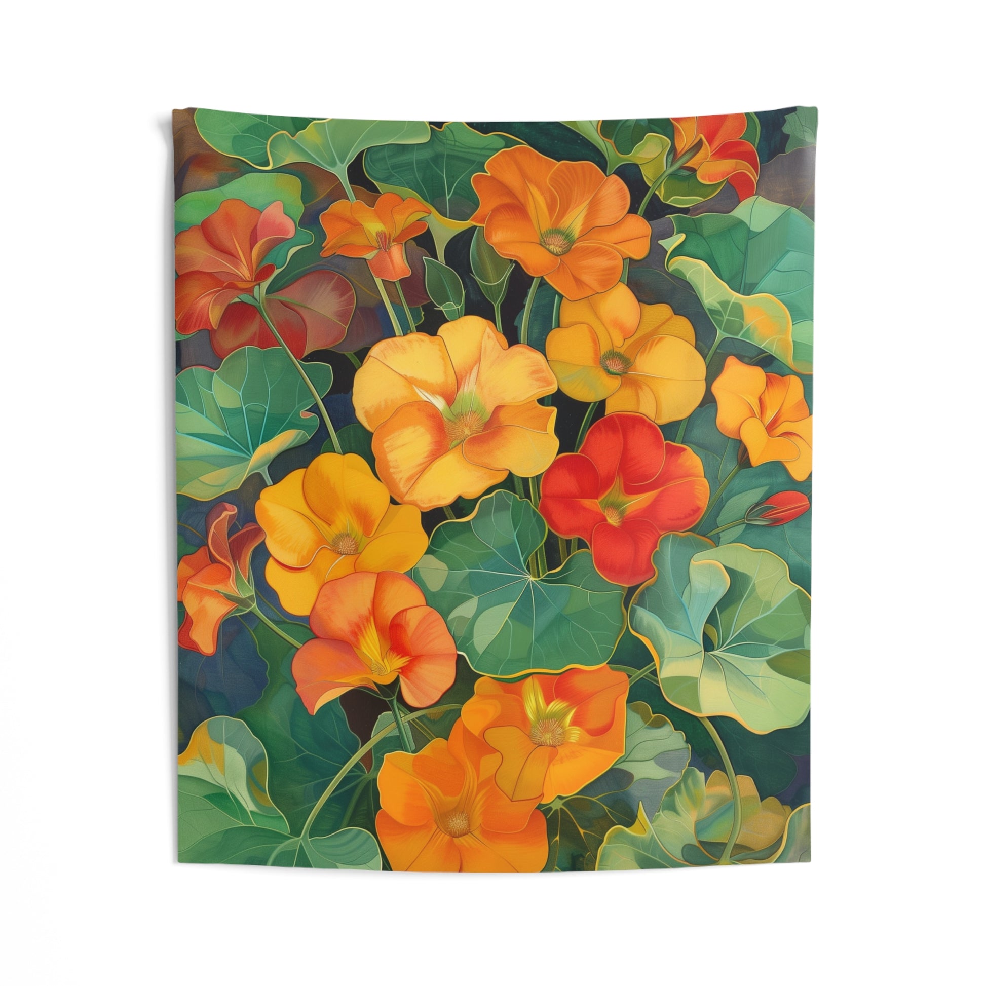 Nasturtium Flowers Tapestry, Floral Wall Plants Art Hanging Cool Unique Vertical Aesthetic Large Small Decor Bedroom College Dorm Room