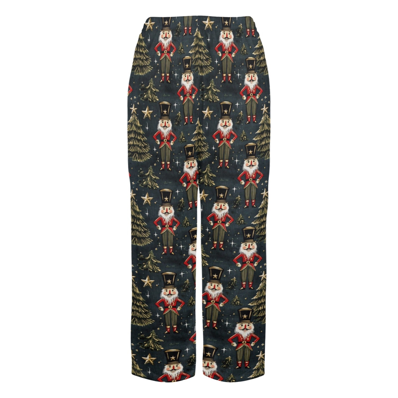 Nutcracker Christmas Trees Women Pajamas Pants, Green Xmas PJ Funny Pockets Trousers Couples Matching Ladies Female Trousers Bottoms