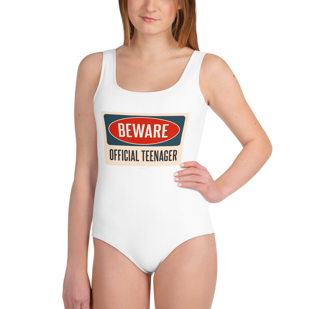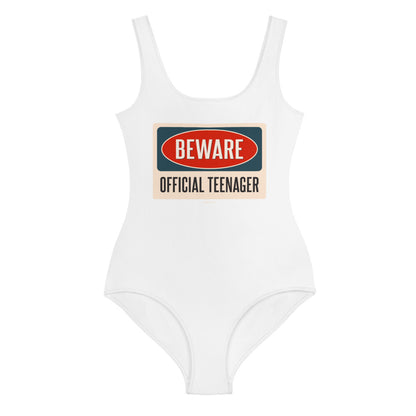 Official Teenager Youth Birthday Swimsuit, Beware 13 Years Old Teen Birthday Party One Piece Kids Bathing Suit Party Swimwear Gift