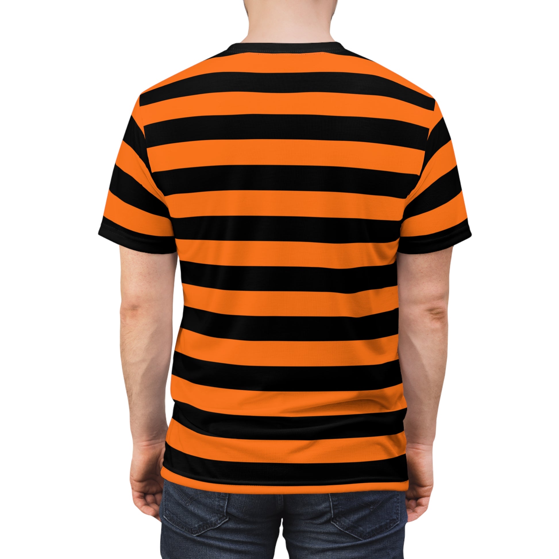 Orange Black Striped Tshirt, Stripe Designer Graphic Aesthetic Lightweight Heavyweight Crewneck Men Women Tee Top Short Sleeve Shirt