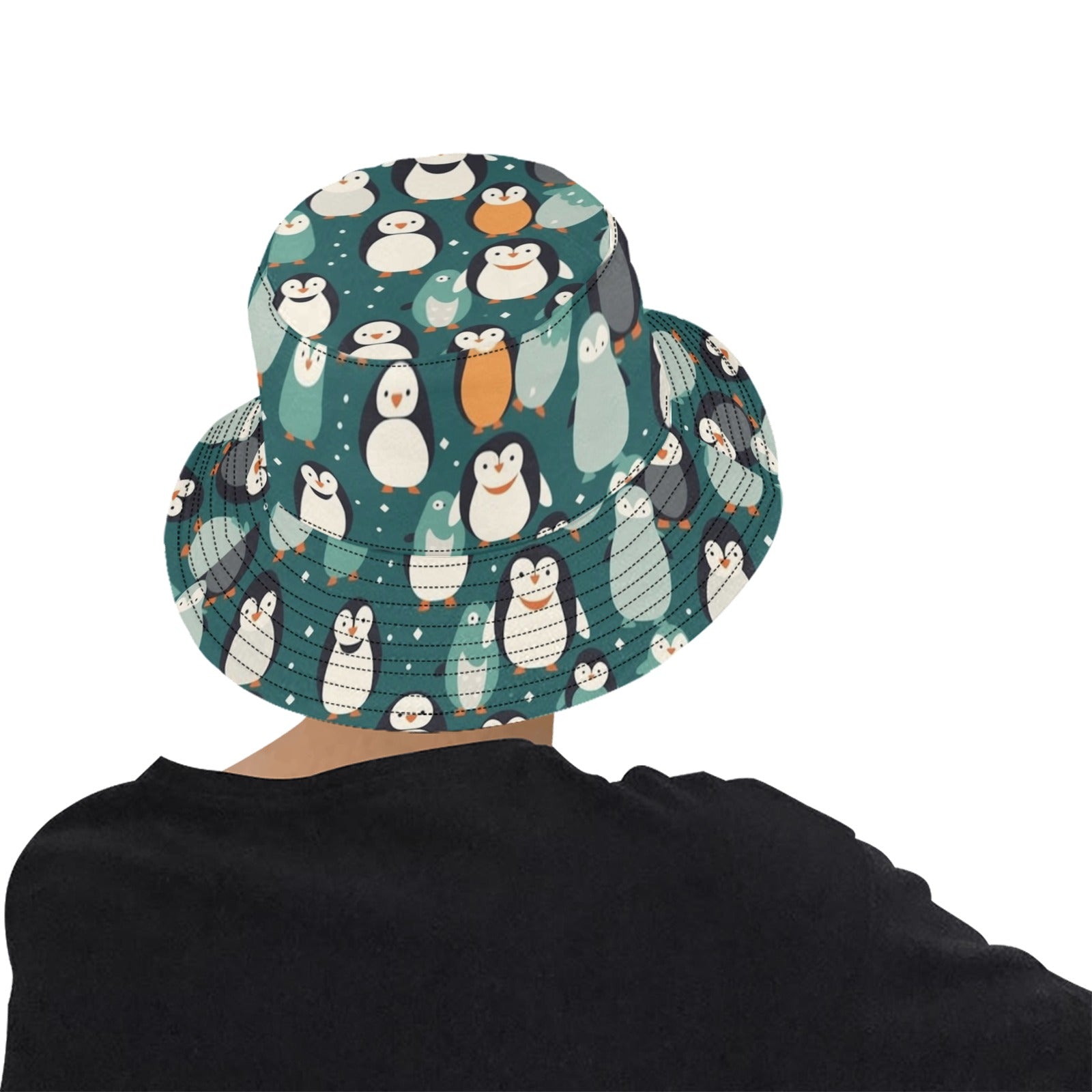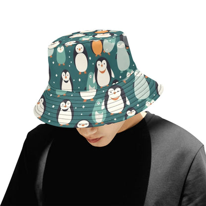 Penguin Bucket Hat, Retro Vintage Animal Summer Festival Cute Women Men Designer Beach Sun Shade Y2K Twill