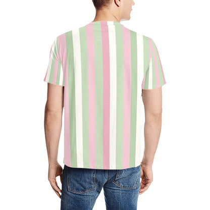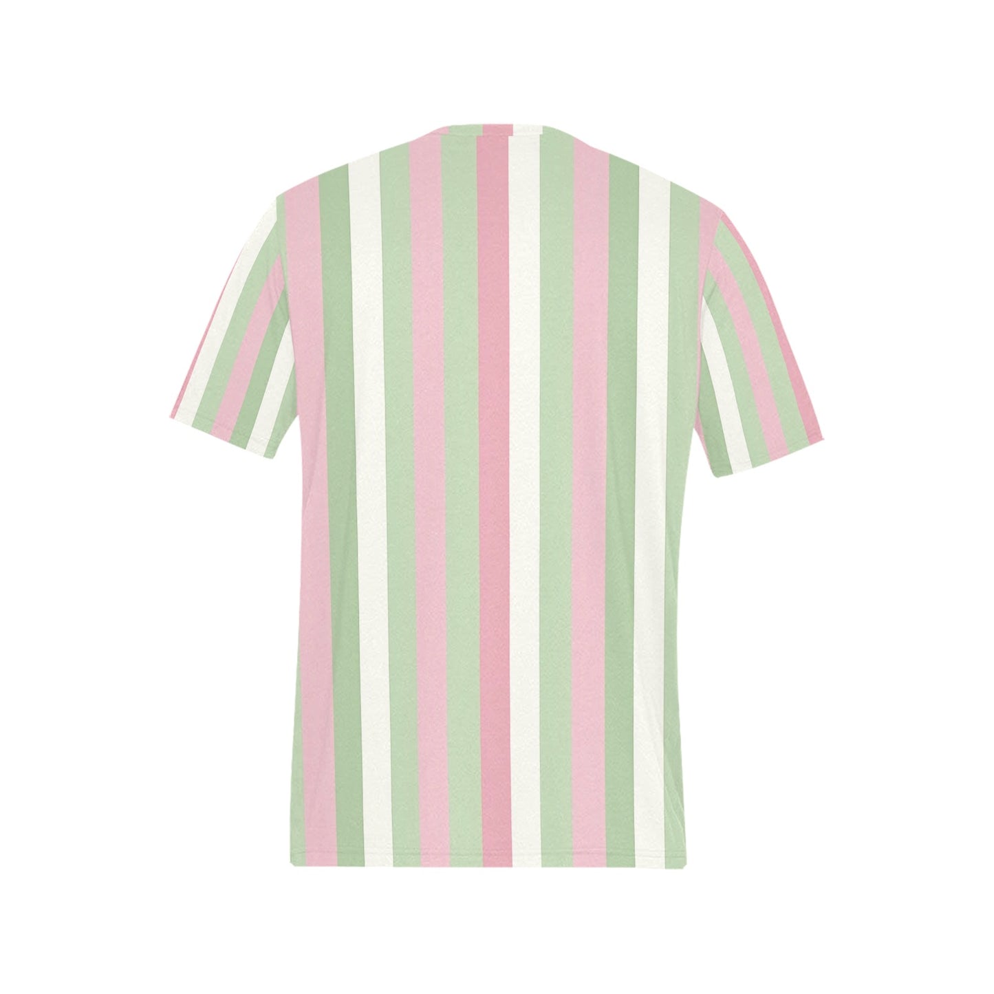 Pink Green Striped Tshirt, Pastel Vertical Designer Graphic Aesthetic Lightweight Crewneck Men Women Tee Top Short Sleeve Shirt
