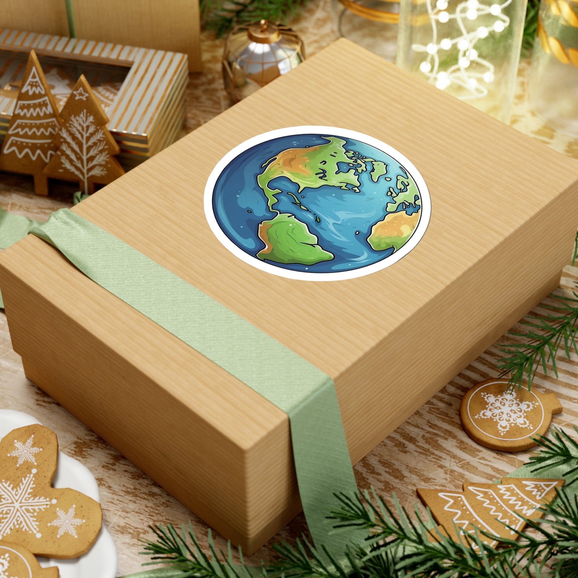 Planet Earth Sticker Decal, Blue Art Vinyl Laptop Cute Waterbottle Tumbler Car Waterproof Bumper Clear Aesthetic Die Cut Wall