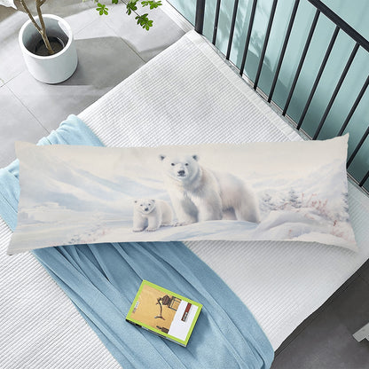 Polar Bear Body Pillow Case, Cute Animal Winter Snow Long Full Large Bed Accent Print Throw Decor Decorative Cover 20x54 Satin