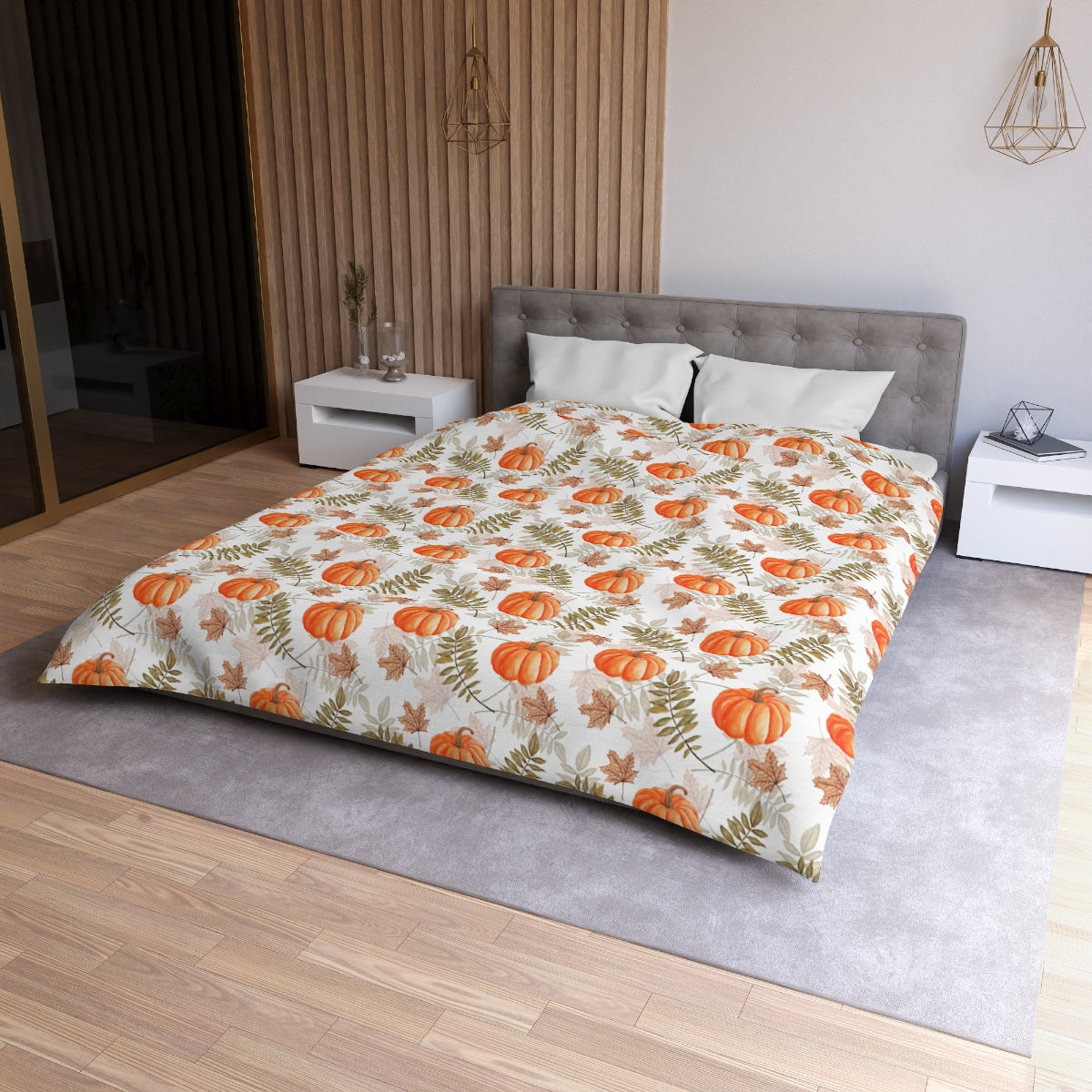 Pumpkin Duvet Cover, Fall Autumn Leaves Orange Bedding Queen King Full Twin XL Microfiber Designer Bed Quilt Bedroom Decor