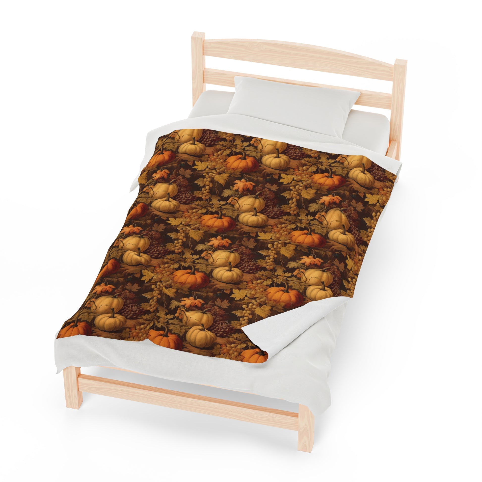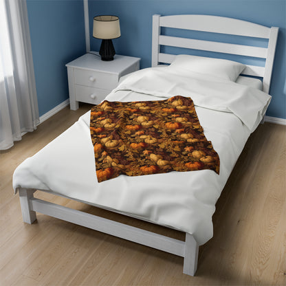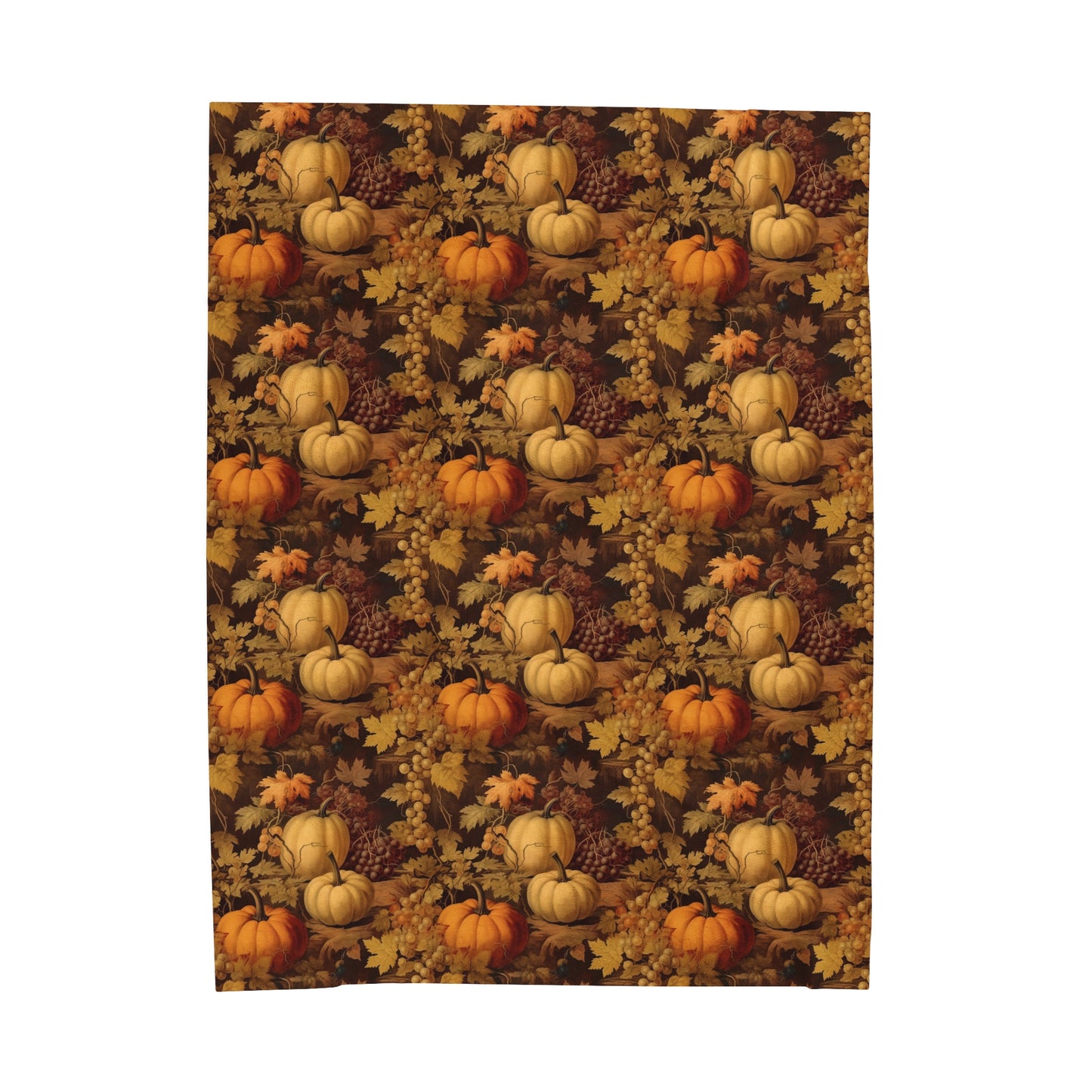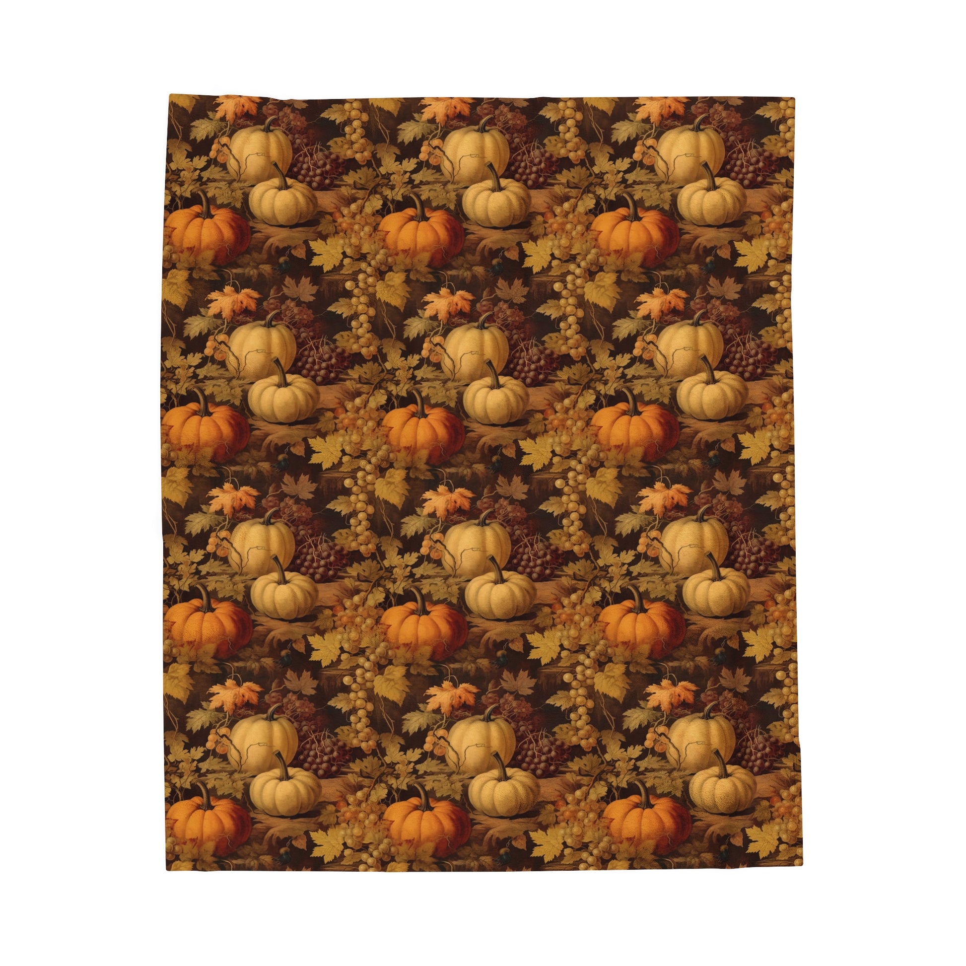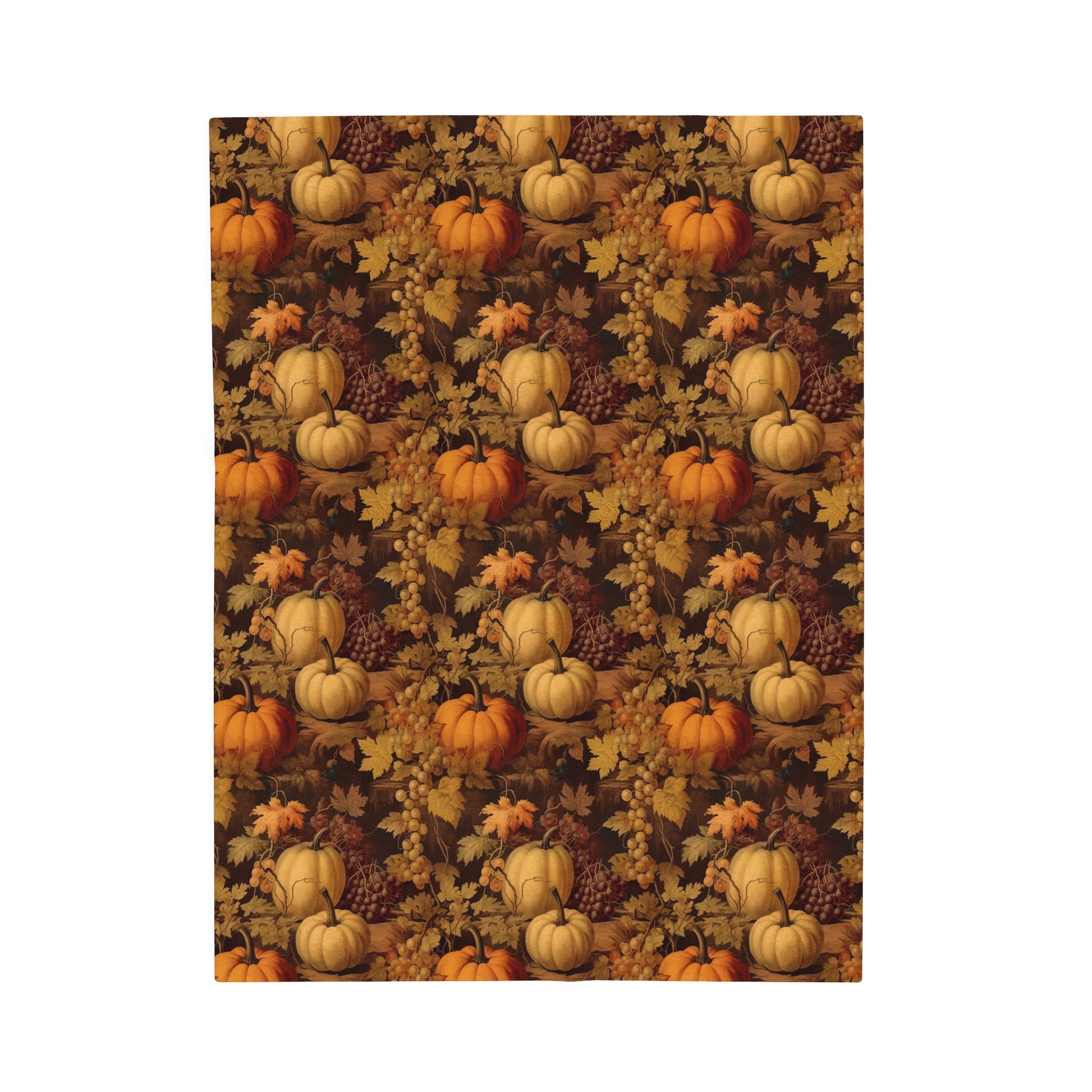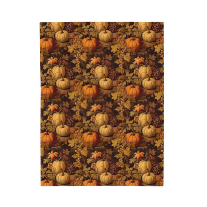 Pumpkins Fall Fleece Throw Blanket, Autumn Grapes Thanksgiving Velveteen Soft Plush Fluffy Cozy Warm Adult Kids Small Large Sofa Bed Décor