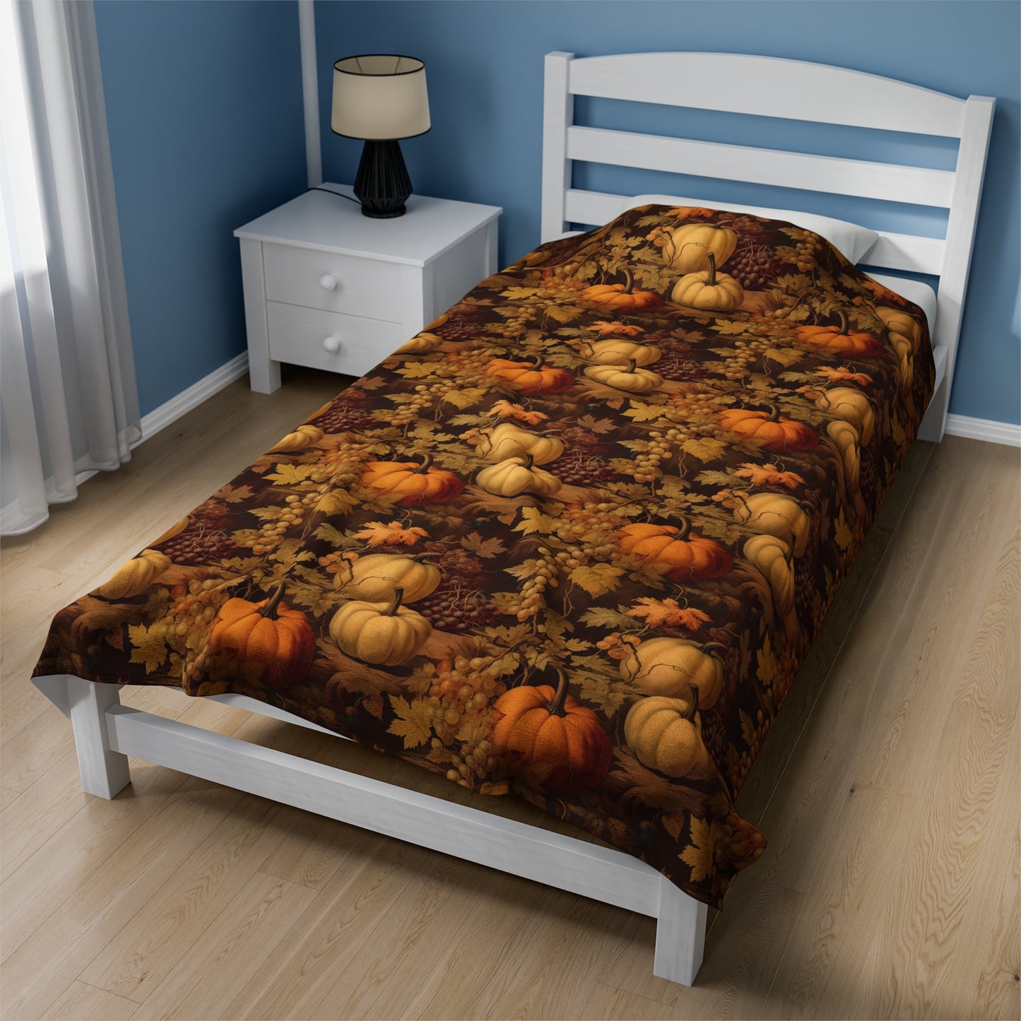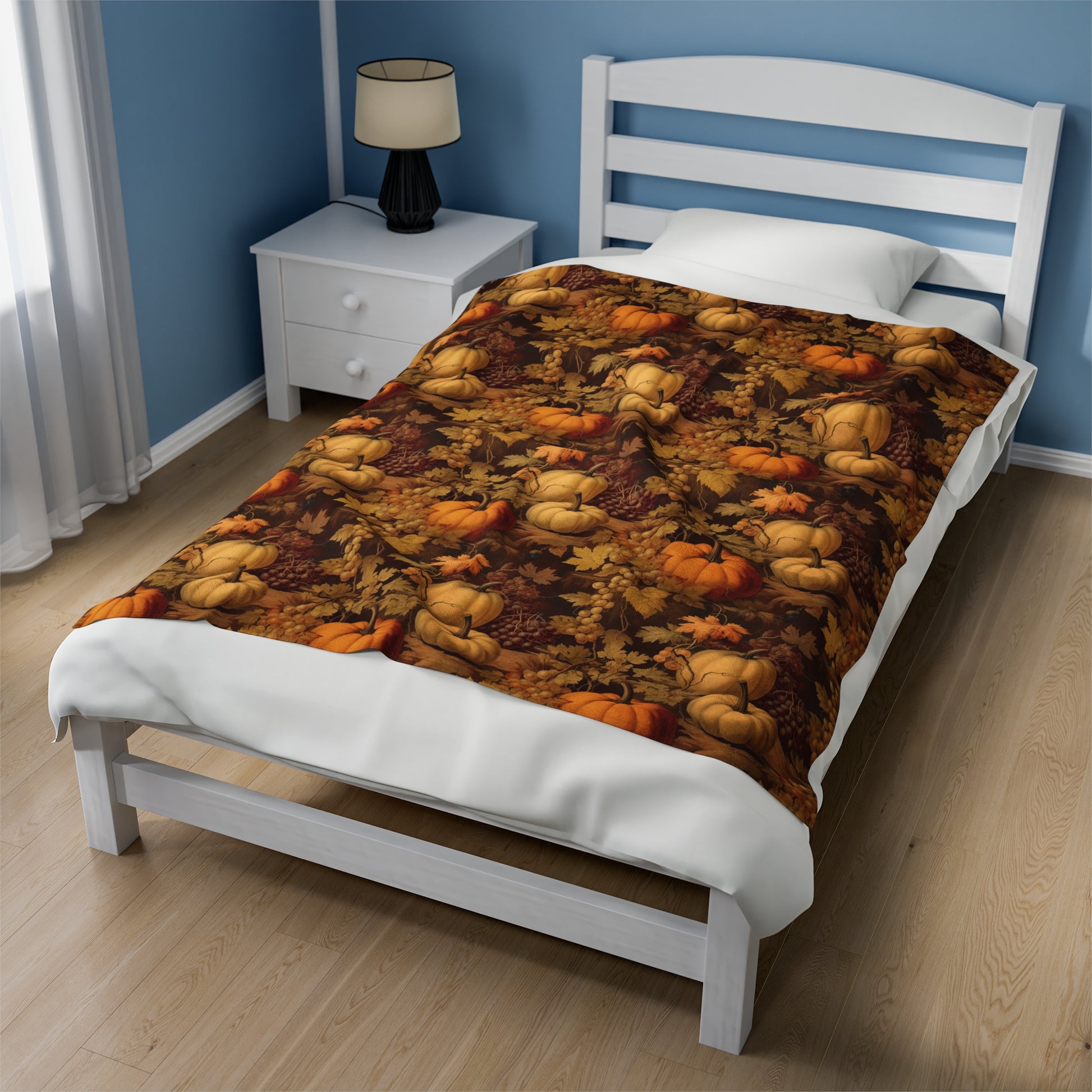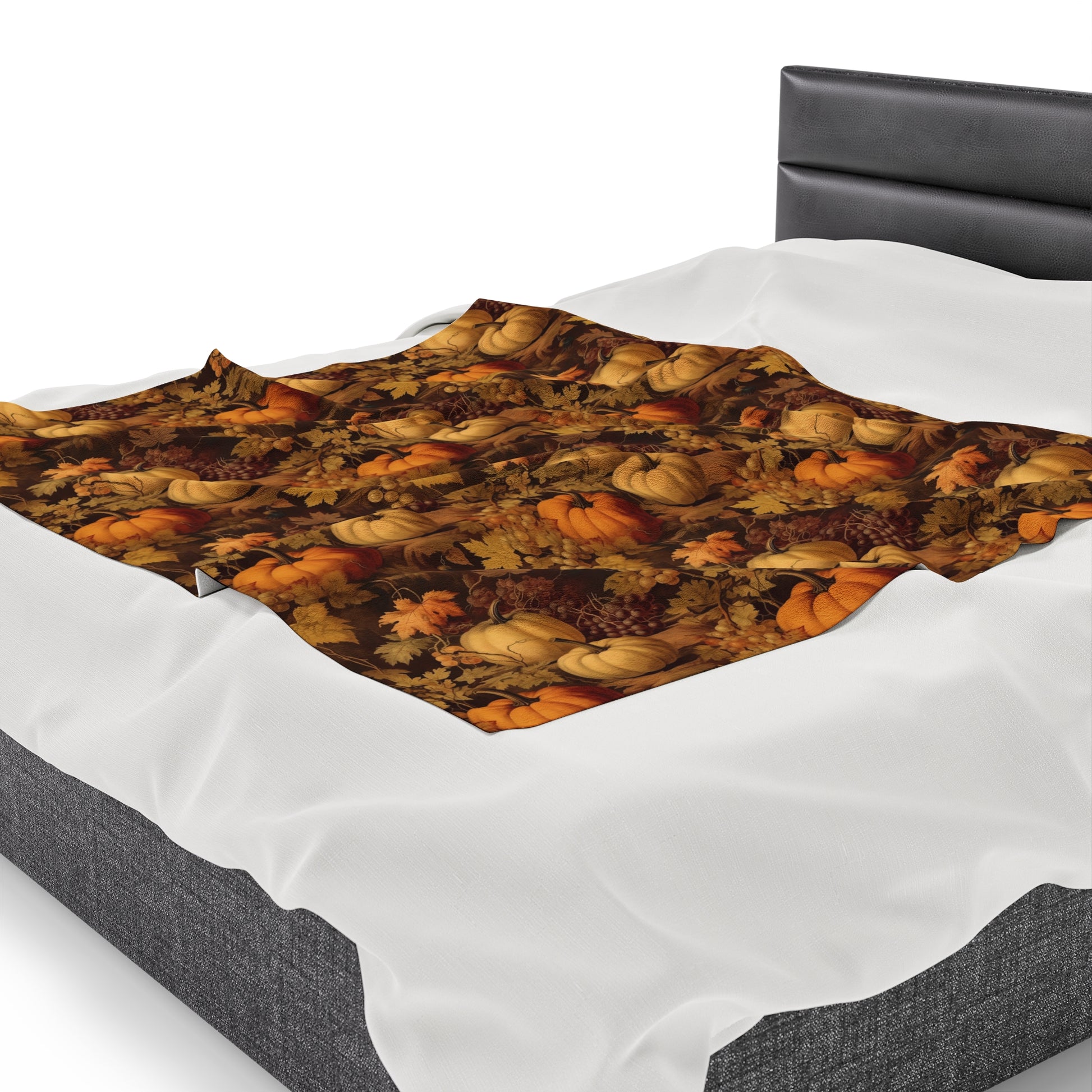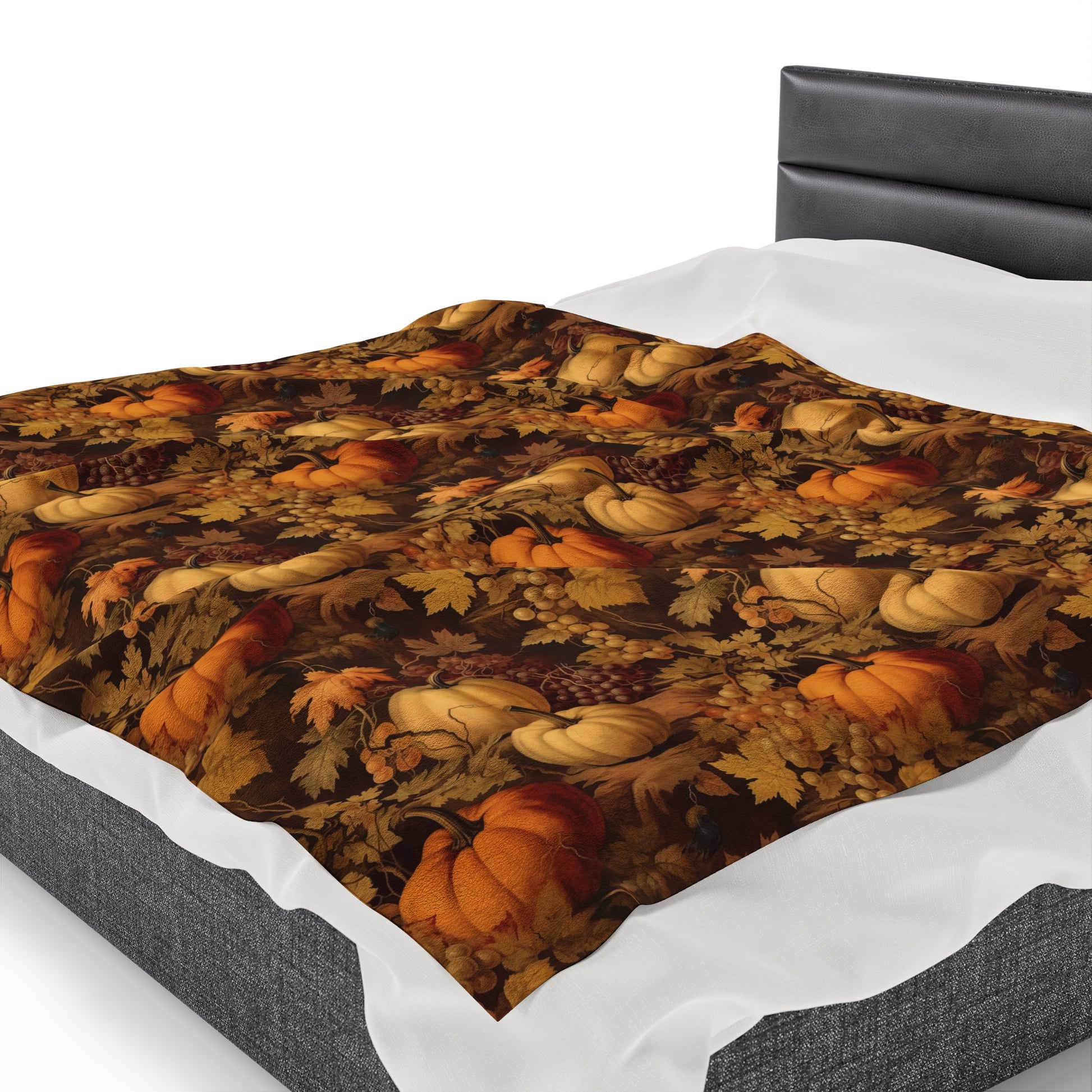 Pumpkins Fall Fleece Throw Blanket, Autumn Grapes Thanksgiving Velveteen Soft Plush Fluffy Cozy Warm Adult Kids Small Large Sofa Bed Décor