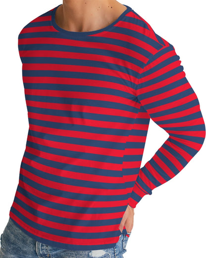 Red and Blue Stripes Men Long Sleeve Tshirt, Striped Unisex Women Designer Graphic Aesthetic Crew Neck Tee