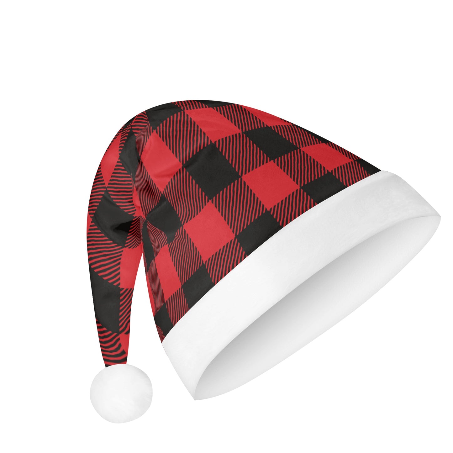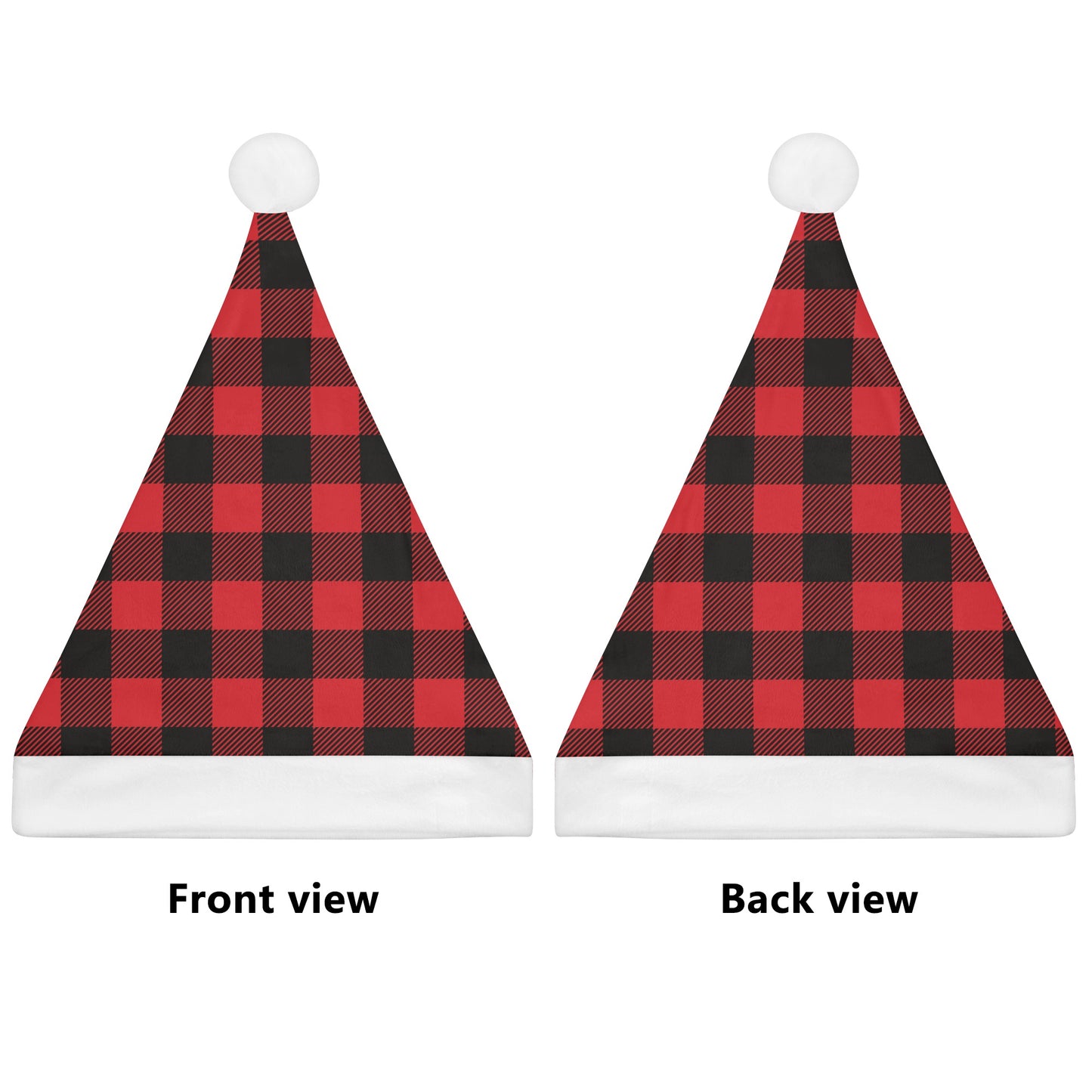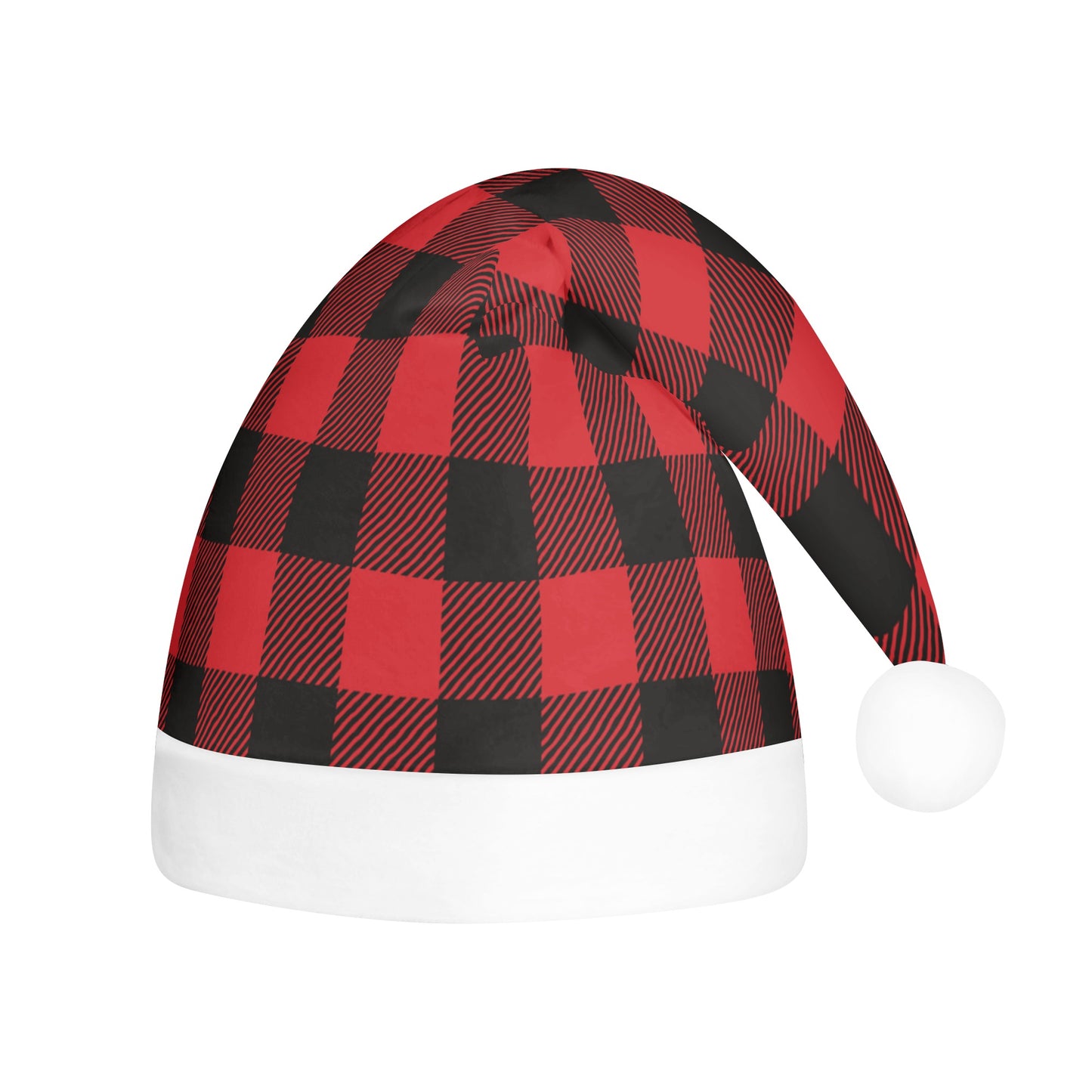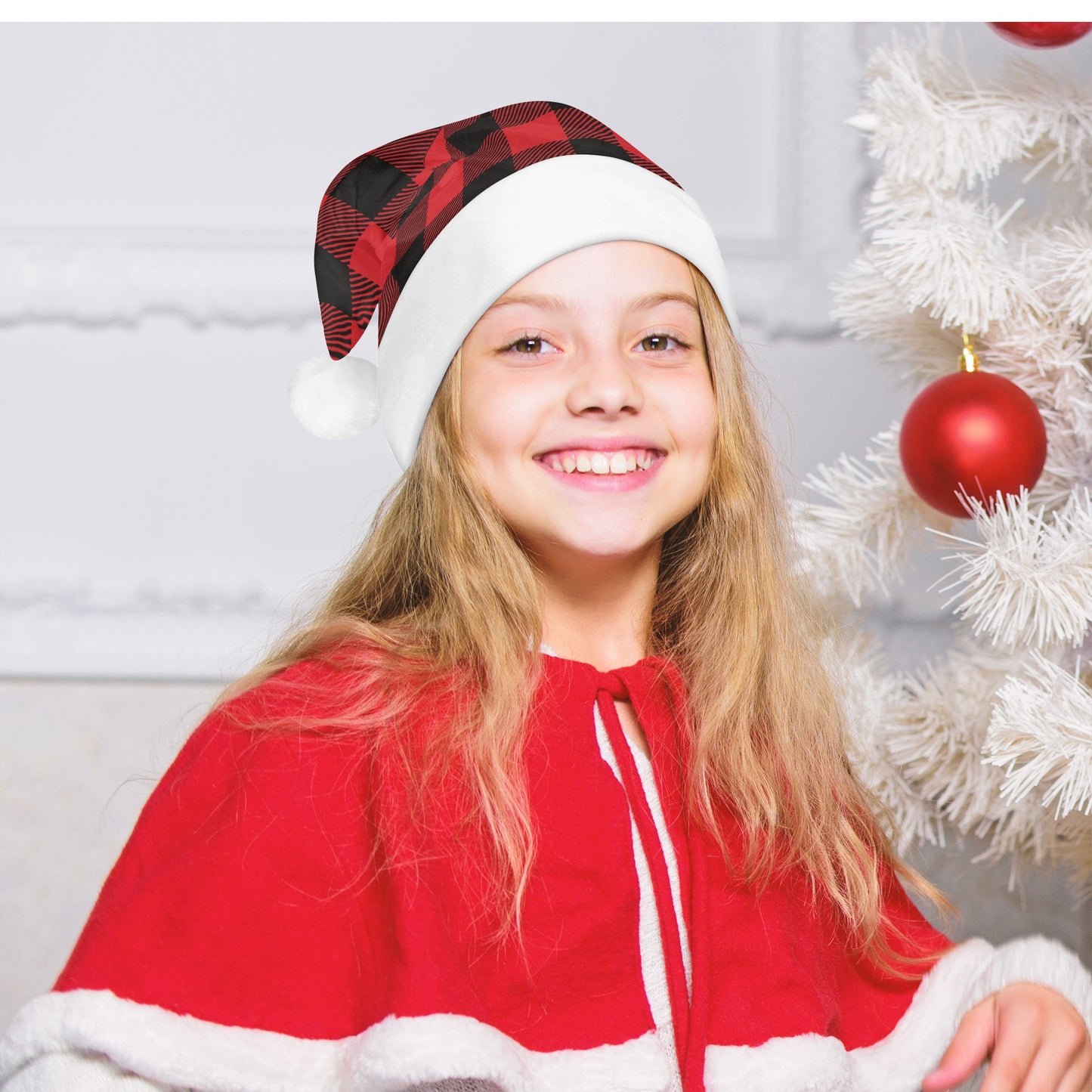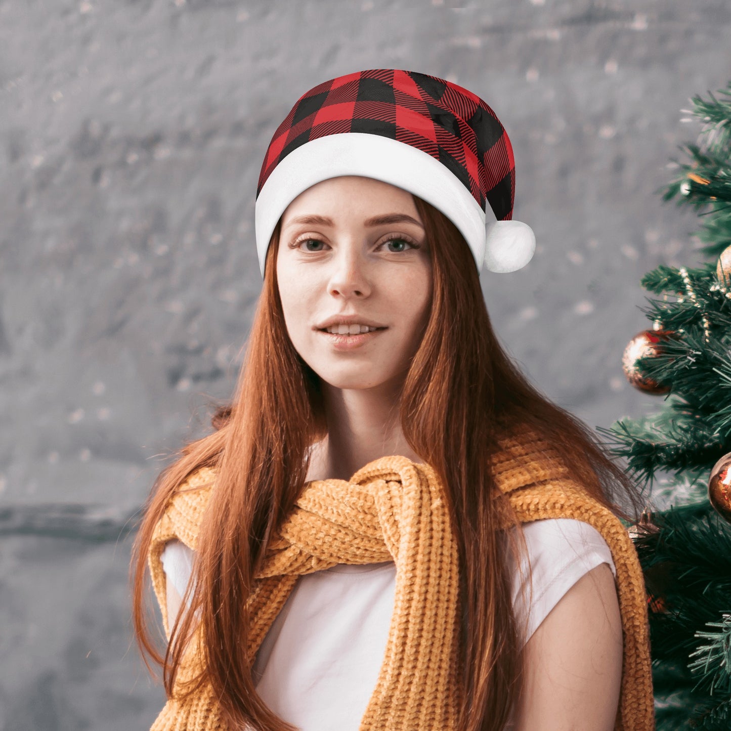 Red Black Buffalo Plaid Santa Claus Hat, Christmas Xmas Adults Kids Children Holiday Festive Cap Men Guys Women Ladies Small Large
