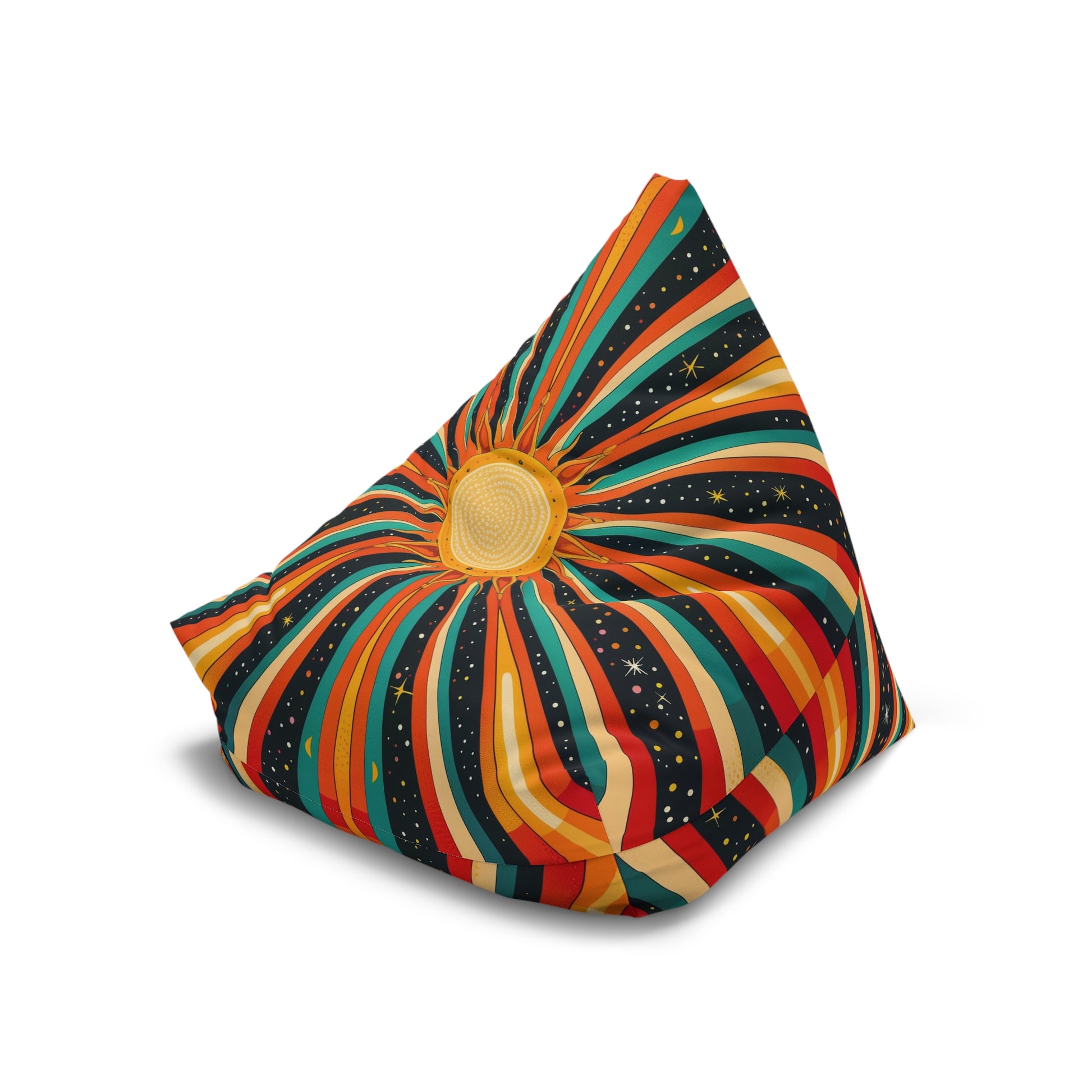Retro Sunburst Bean Bag Chair Cover, Stars Groovy 70s Sun Rays Boho Washable Furniture Small Large Adult Kids Sofa Apartment Dorm Unfilled