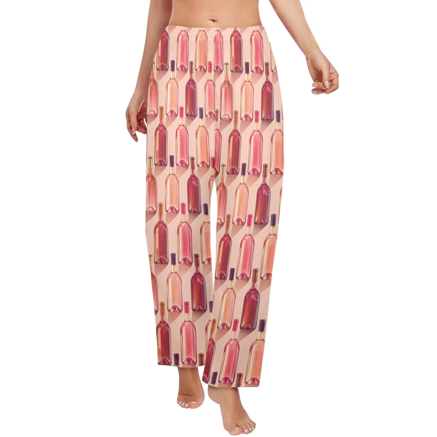 Rosé Red Wine Bottles Women Pajamas Pants, Rose Pink Bachelorette Party PJs Spa Pockets Trousers Matching Friend Ladies Bottoms Bridesmaid