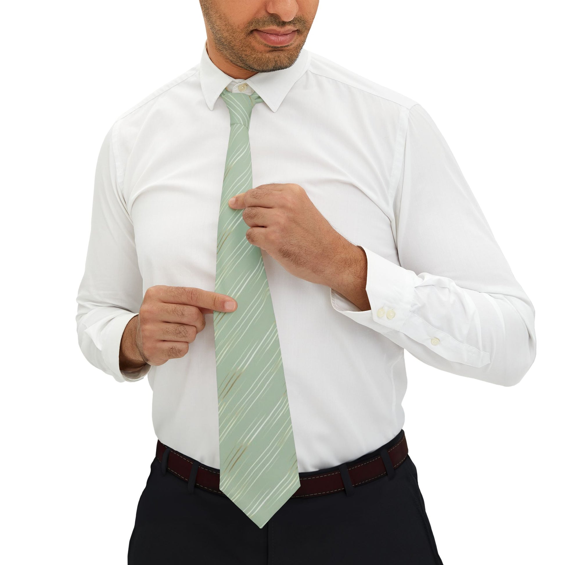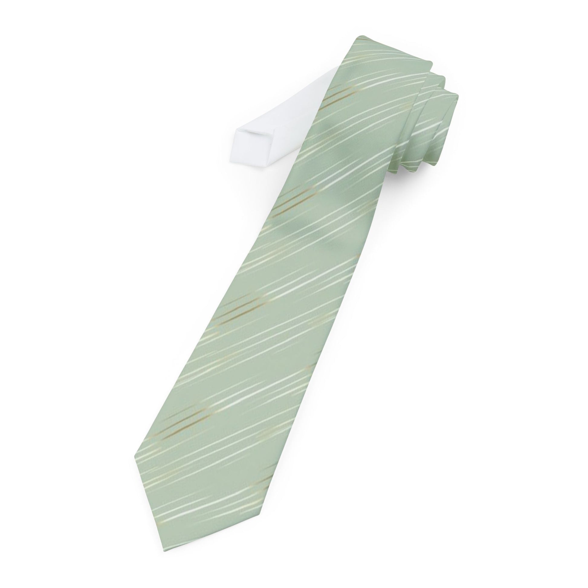 Sage Green Necktie, Olive Minimalistic Pinstripes Pattern Neck Tie Fancy Classic Chic Gift Men Tuxedo Groomsmen Groom Wedding Suit Cravat