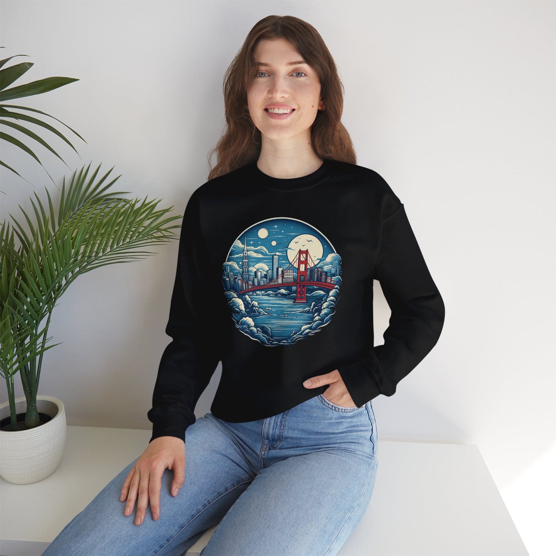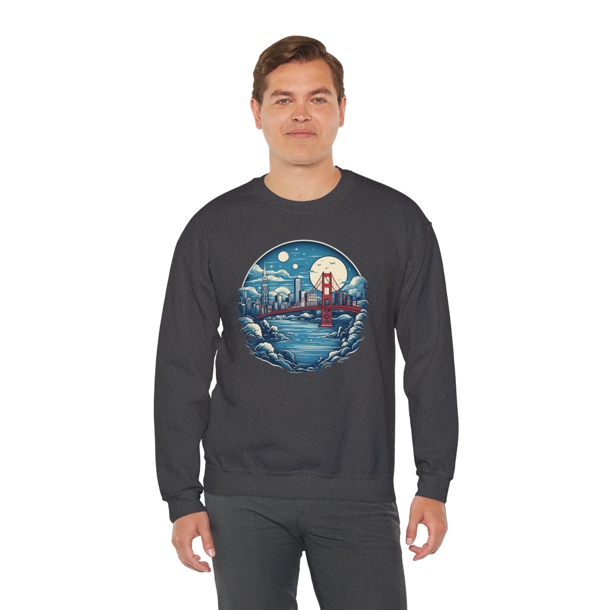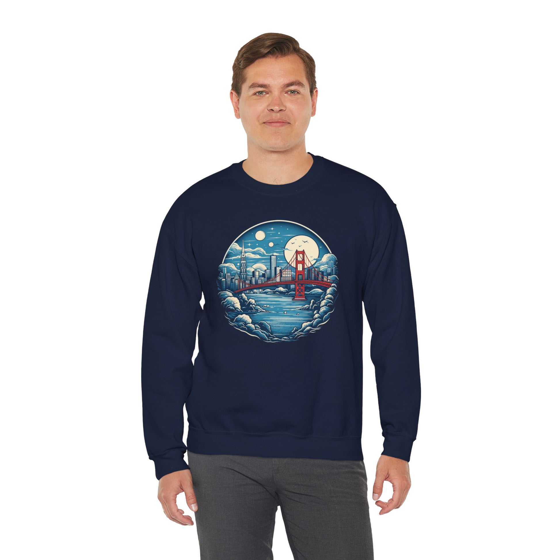 San Francisco Sweatshirt, Red Golden Gate Bridge California Graphic Crewneck Fleece Cotton Sweater Jumper Pullover Men Women Top