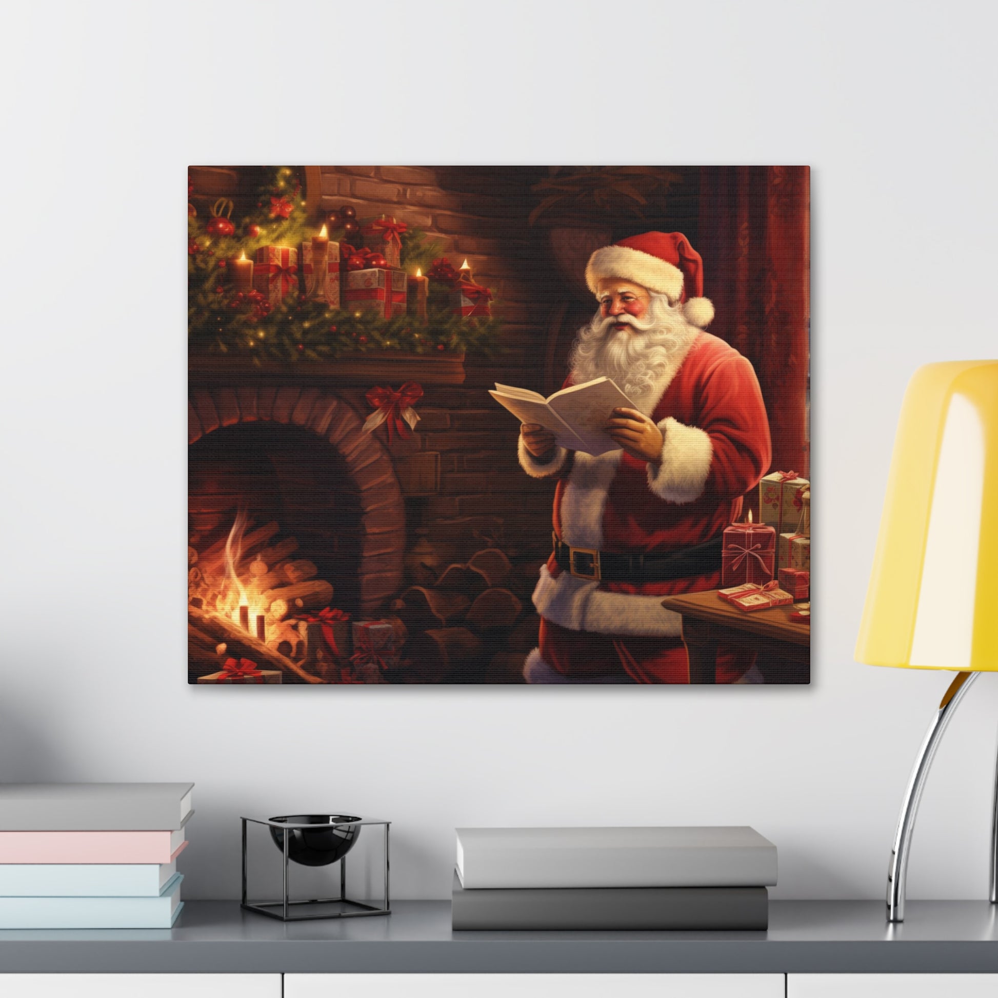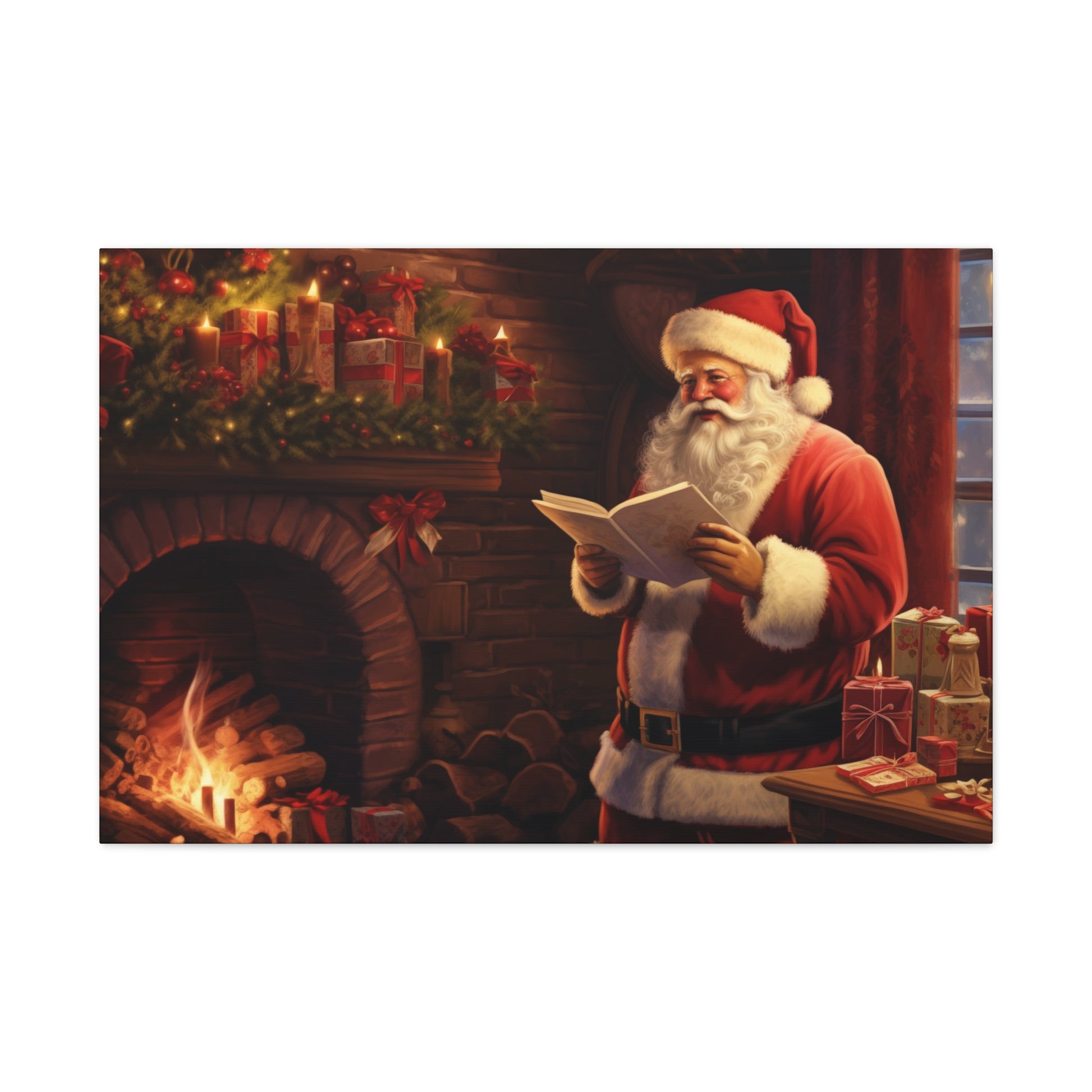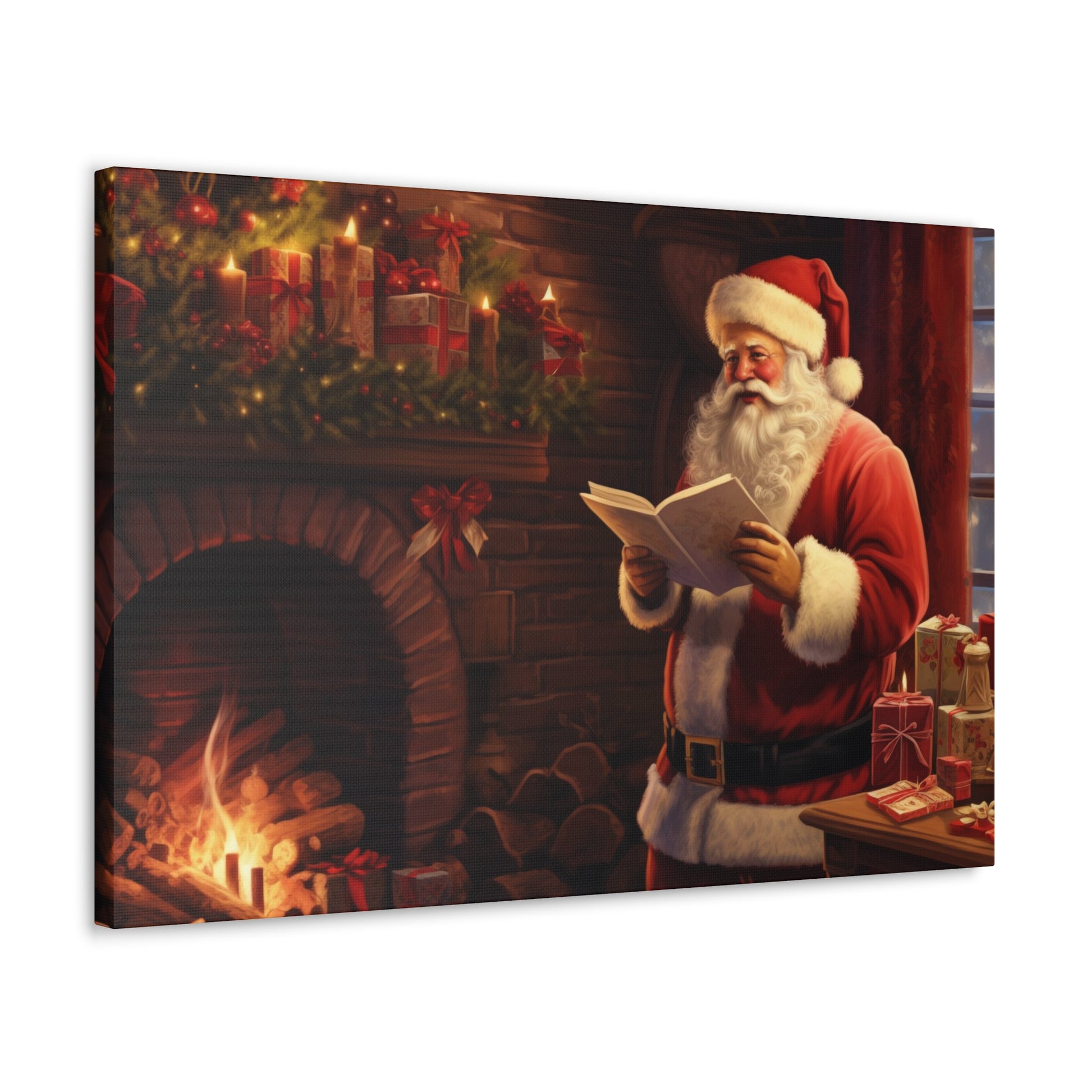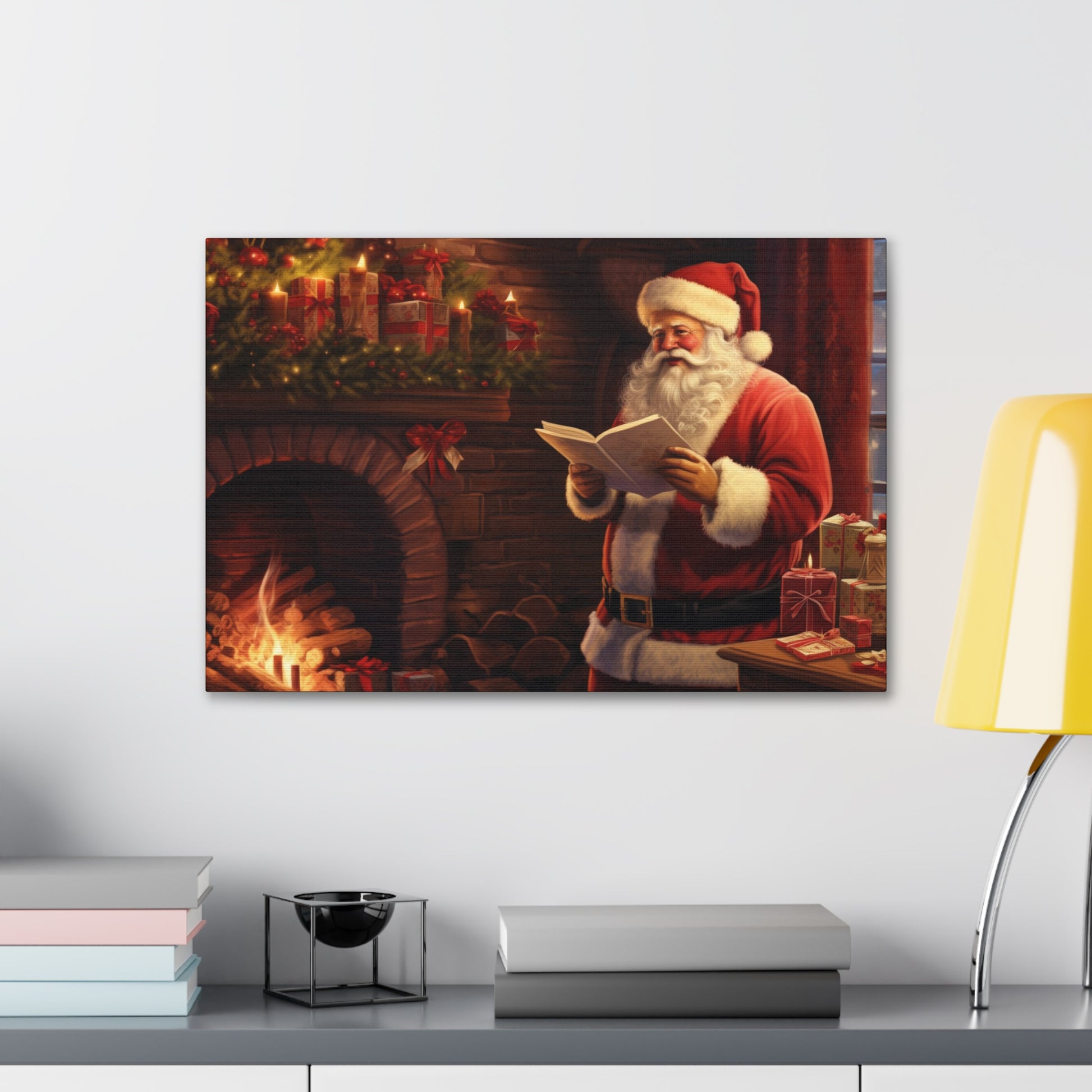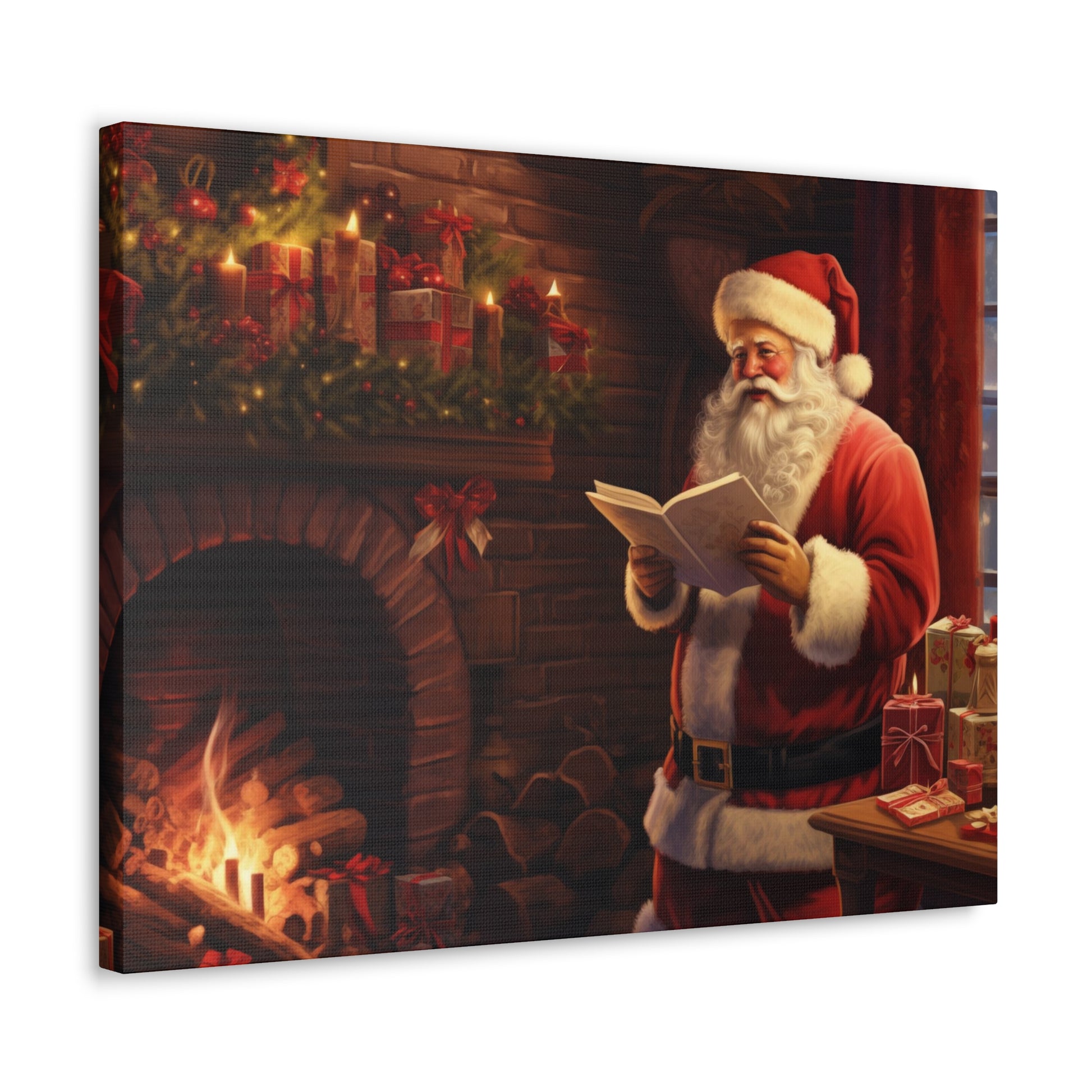 Santa Claus Canvas Gallery Wrap, Christmas Xmas Fireplace Holidays Wall Art Print Decor Small Large Hanging Landscape Living Room