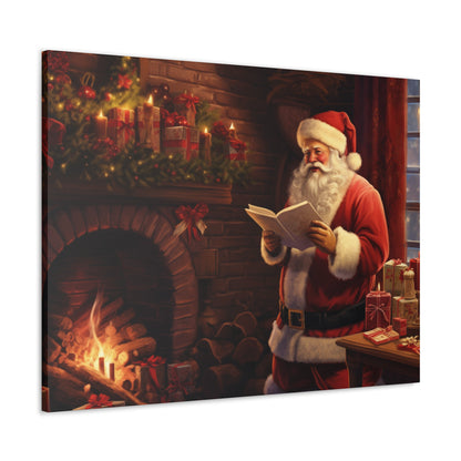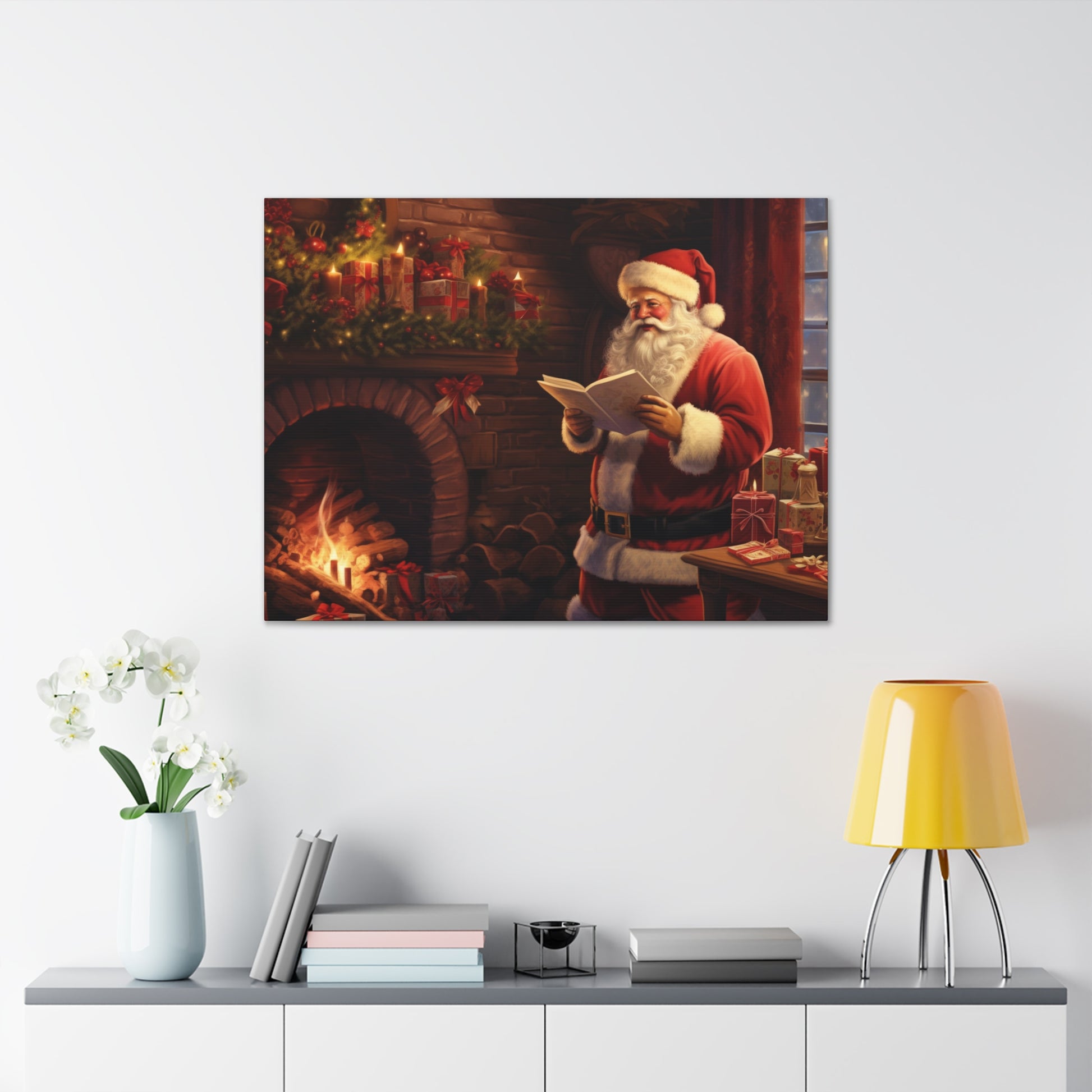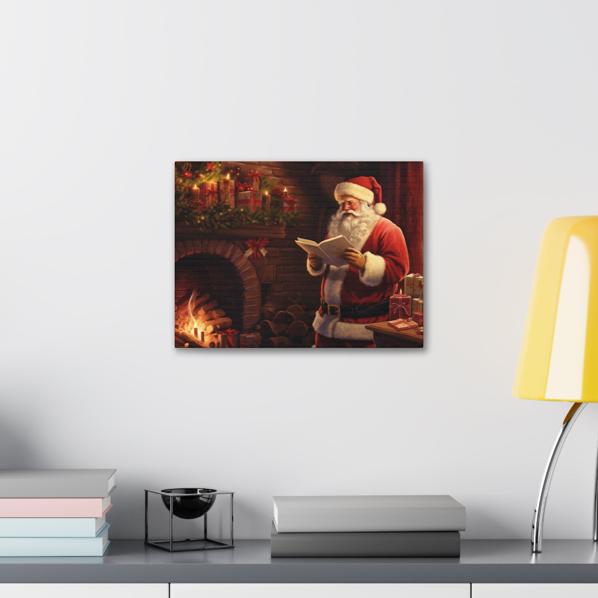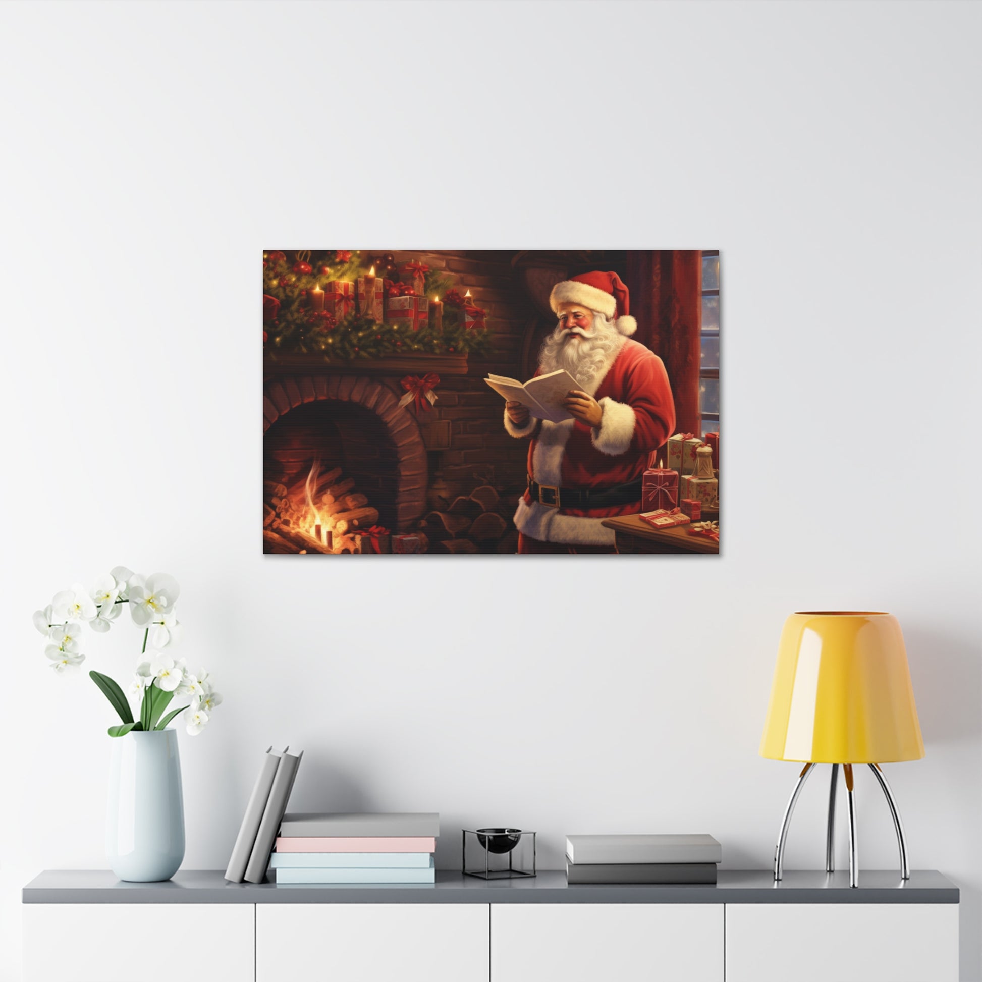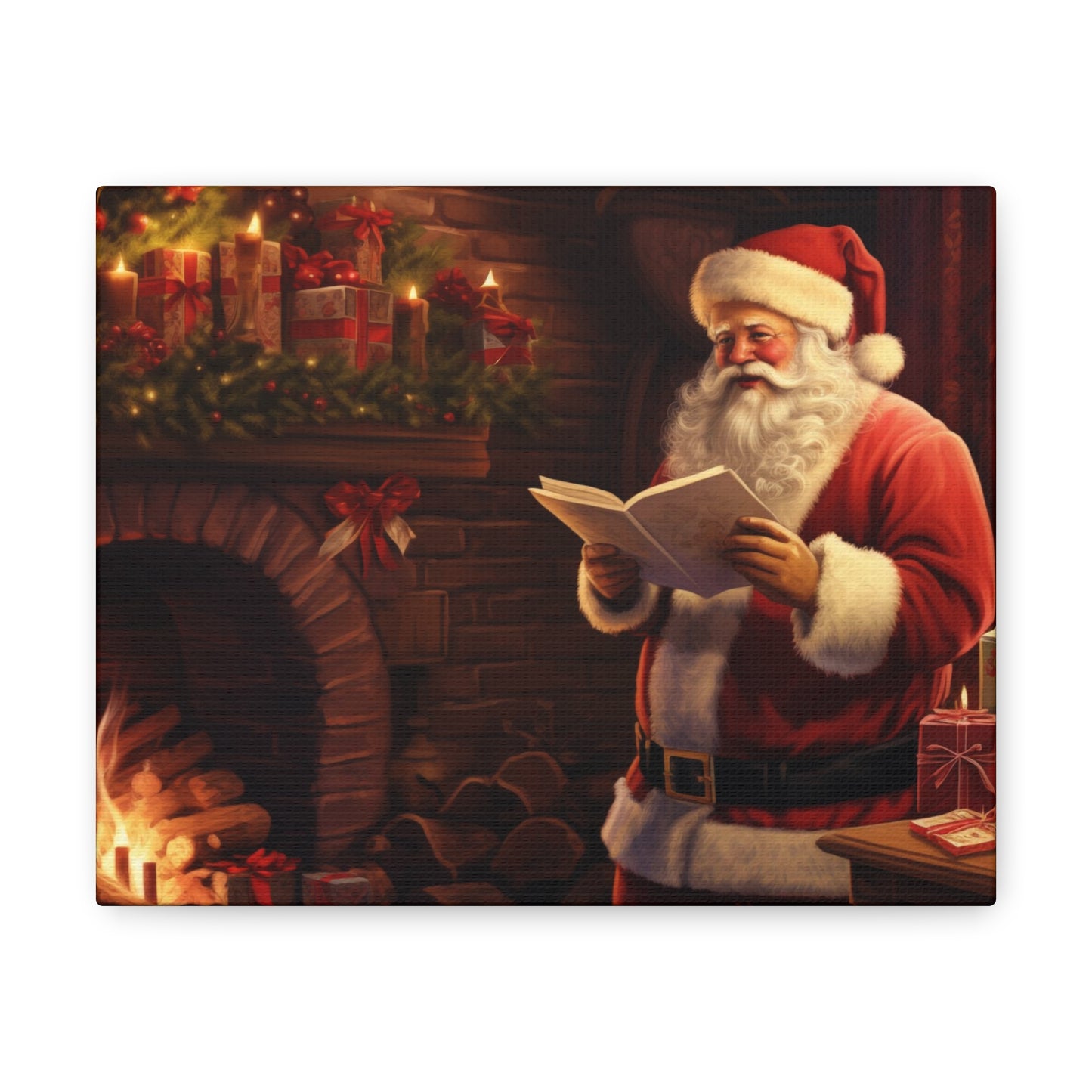 Santa Claus Canvas Gallery Wrap, Christmas Xmas Fireplace Holidays Wall Art Print Decor Small Large Hanging Landscape Living Room