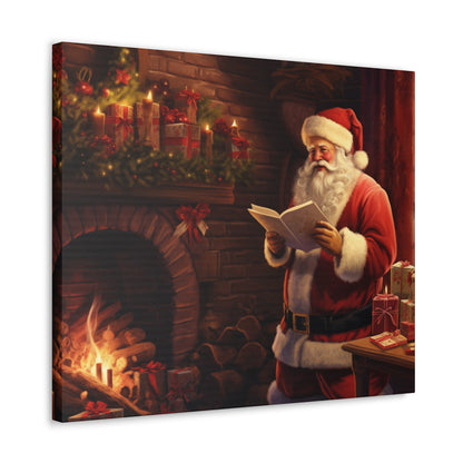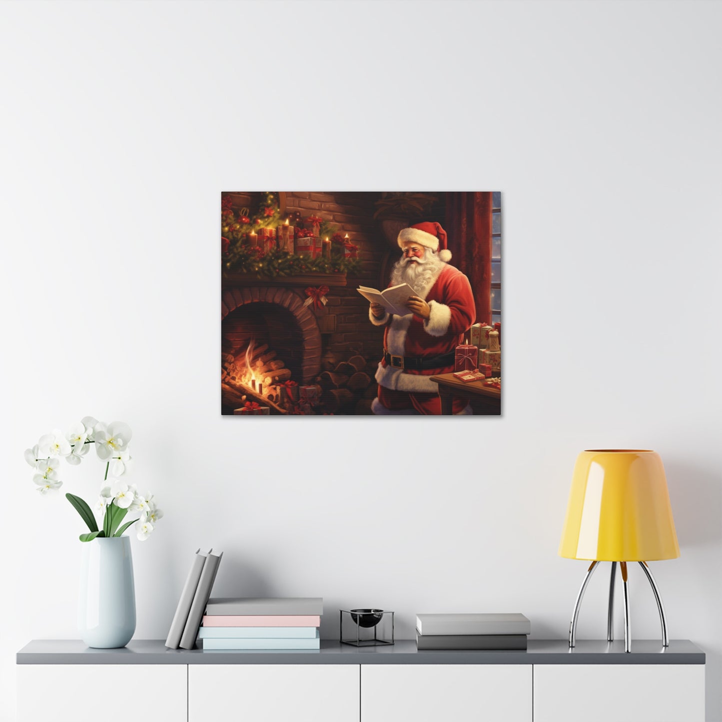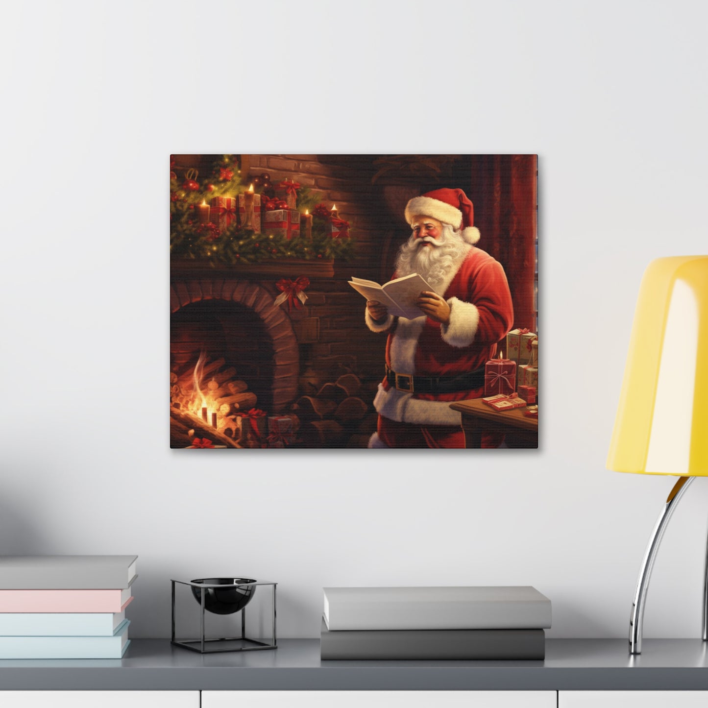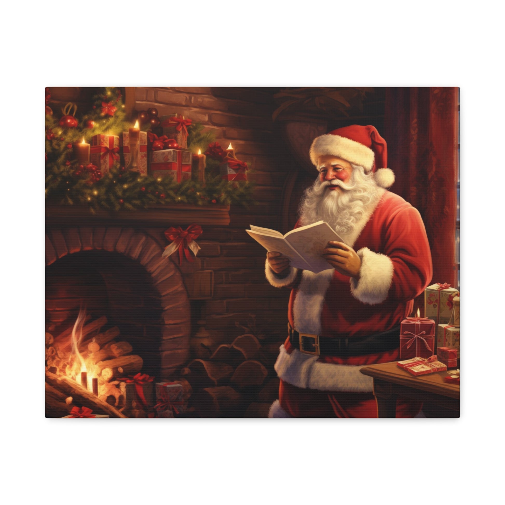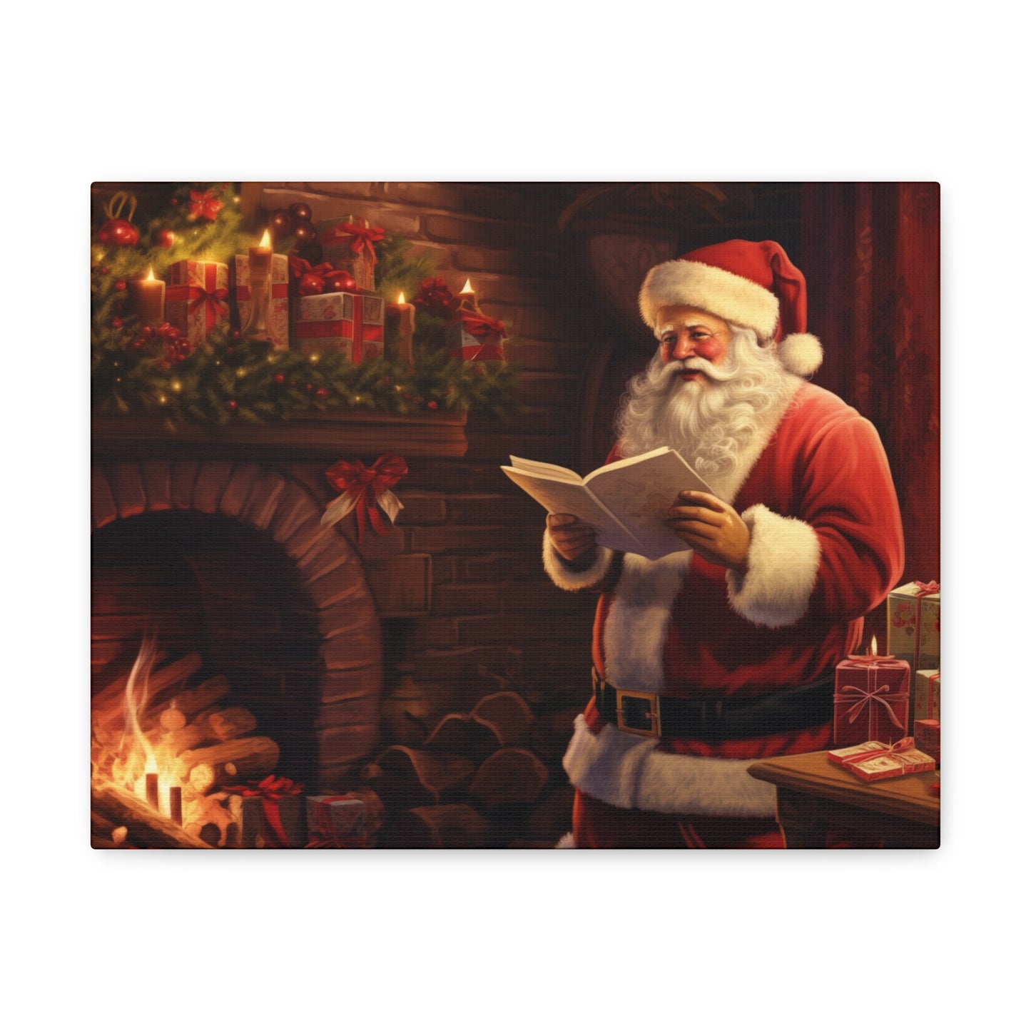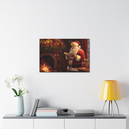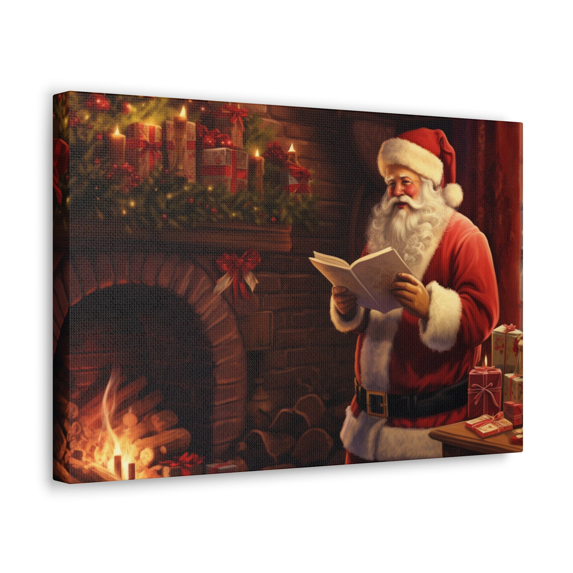Santa Claus Canvas Gallery Wrap, Christmas Xmas Fireplace Holidays Wall Art Print Decor Small Large Hanging Landscape Living Room