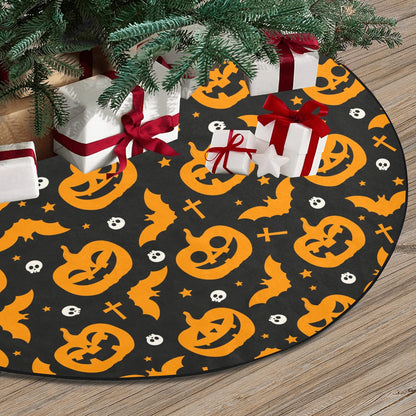 Scary Pumpkins Halloween Tree Skirt, Orange Bats Skulls Christmas Small Large Cover Decor Decoration All Hallows Eve Creepy Spooky Party