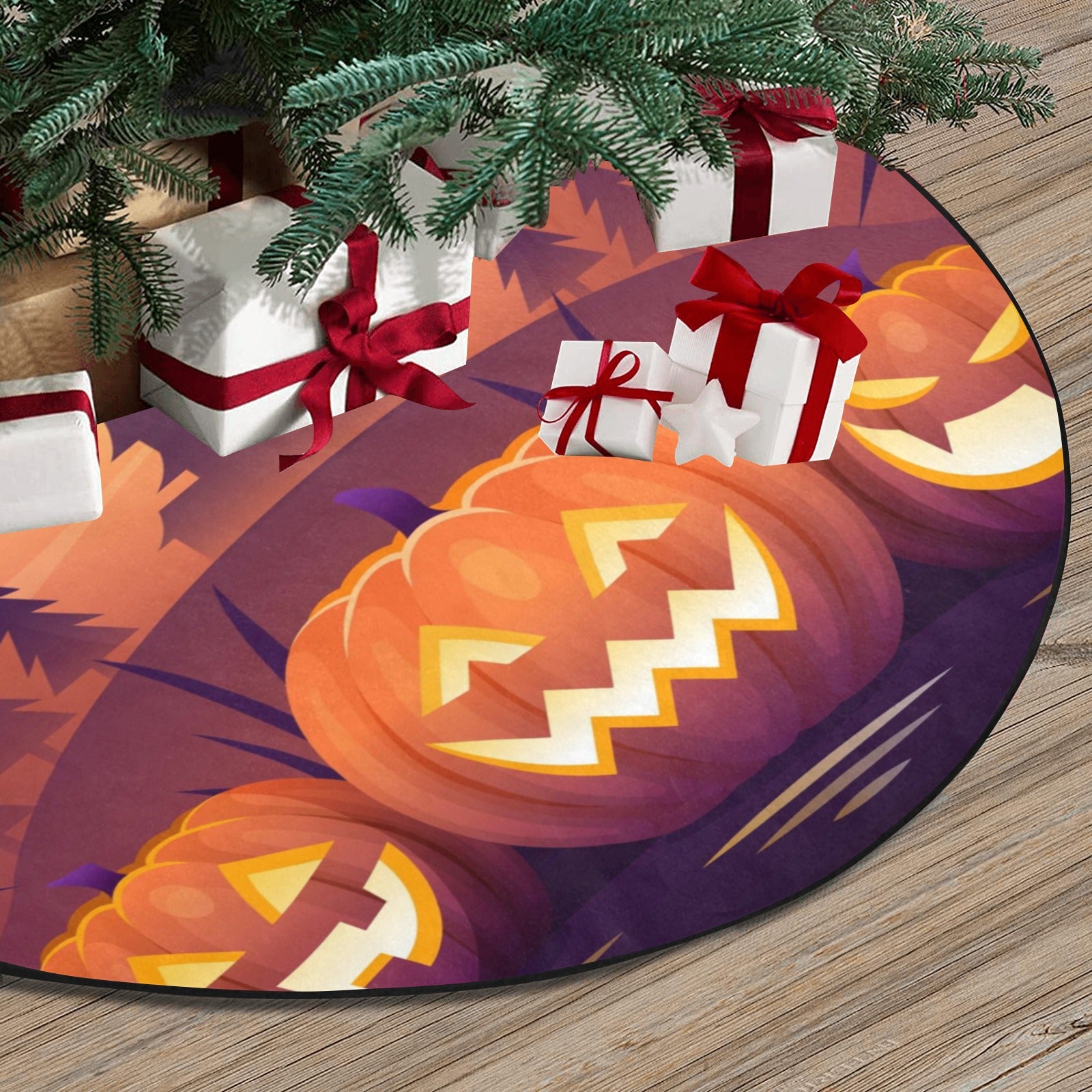 Scary Pumpkins Halloween Tree Skirt, Orange Christmas Small Large Cover Home Decor Decoration All Hallows Eve Creepy Spooky Party